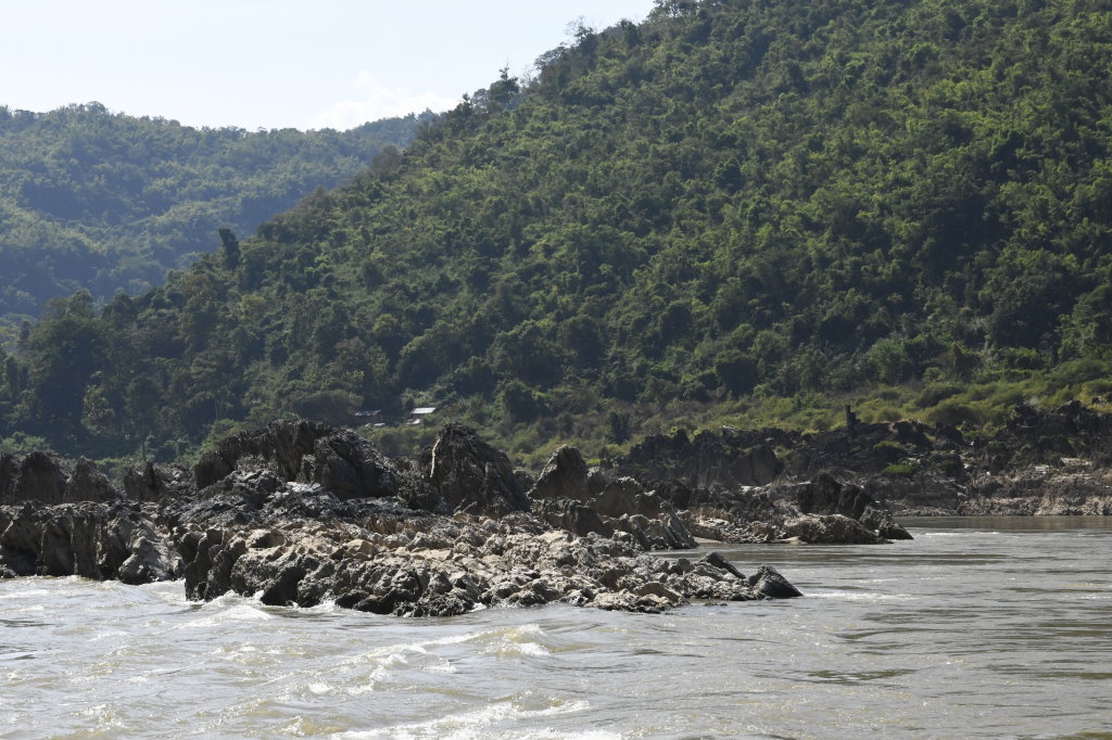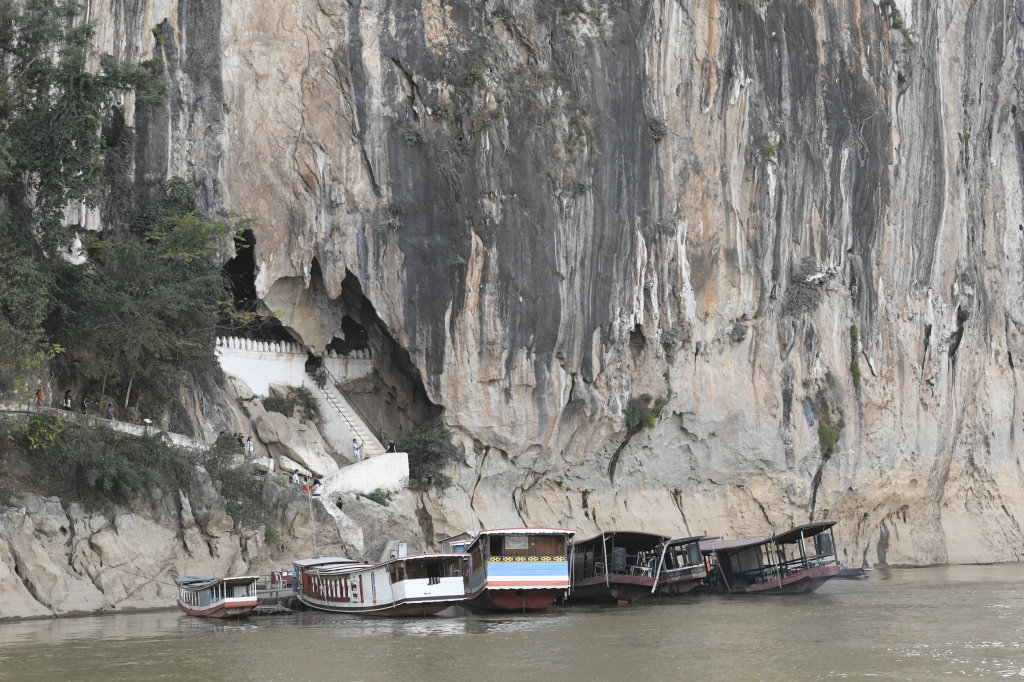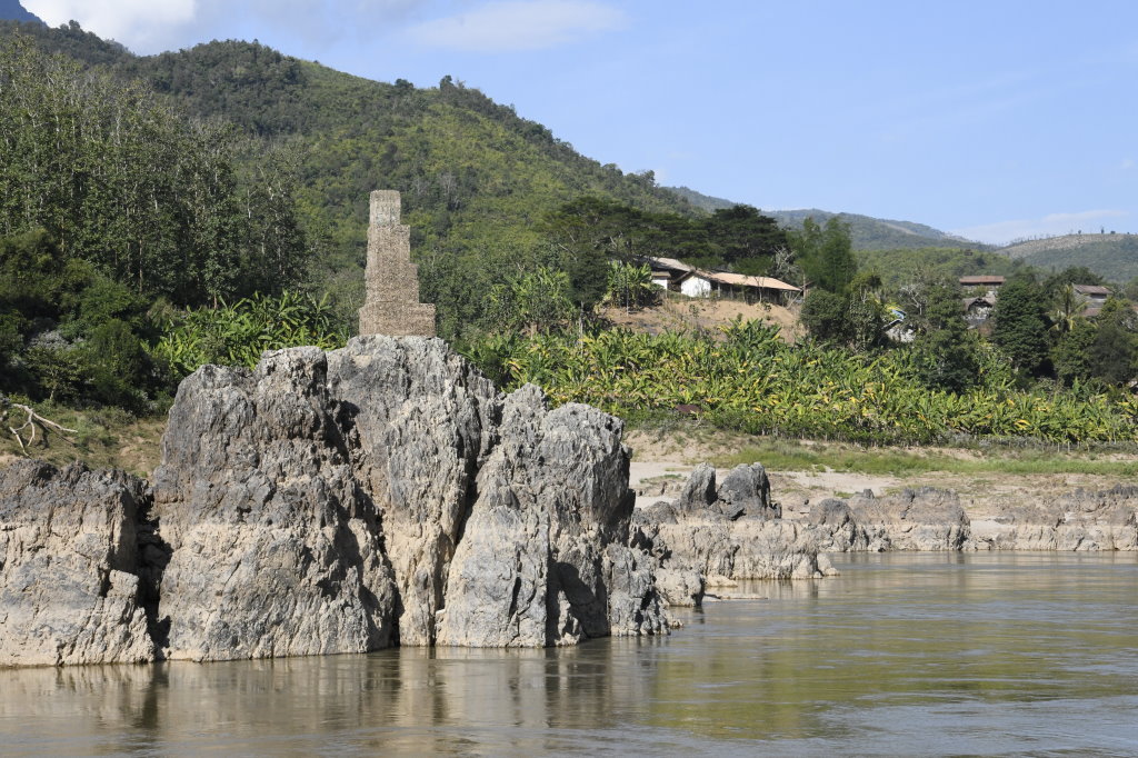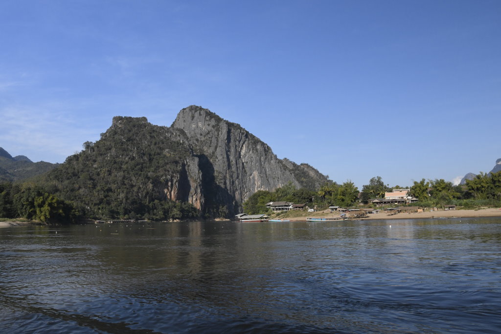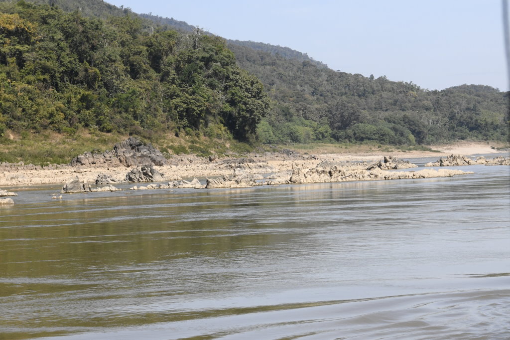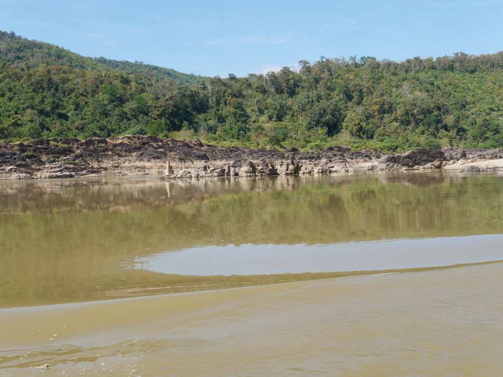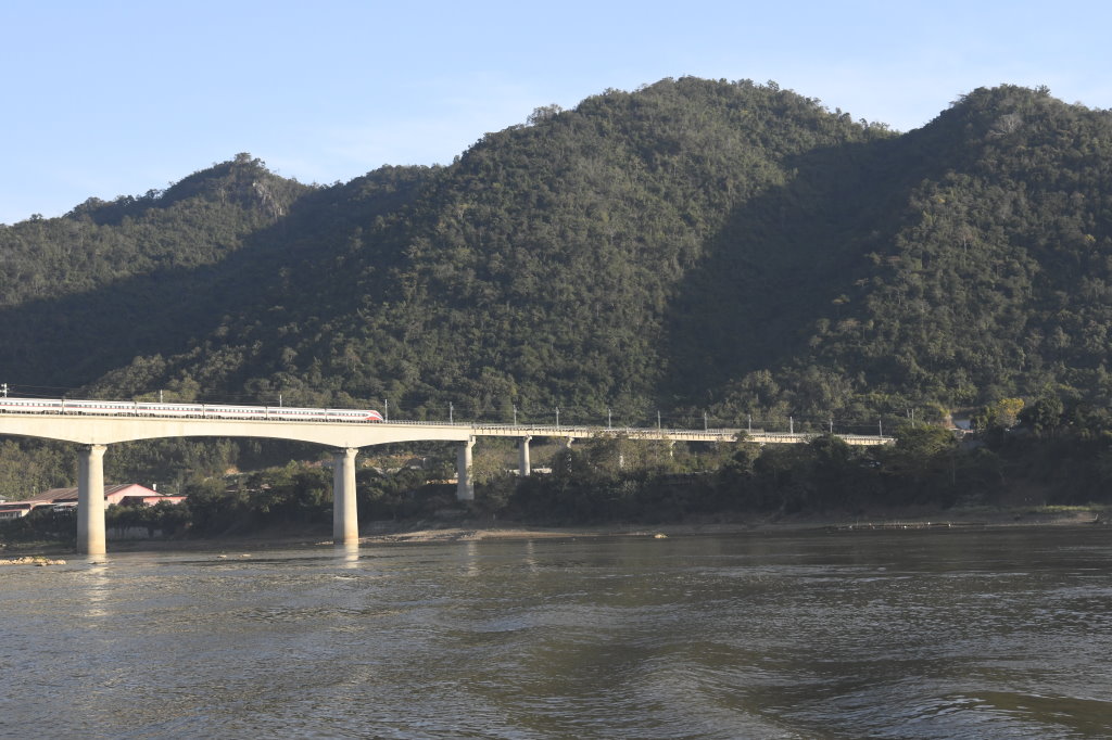 Der Mekong macht eine letzte große Schleife und wir nähern uns allmählich Luang Prabung. Zurück in die Gegenwart: Für den Laos-China Hochgeschwindigkeitszug wurden zwei neue Brücken gebaut. Damit scheint die chinesische Bautätigkeit jedoch noch nicht am Ende, wie eine weitere Großbaustelle am Ufer, mutmaßlich für einen Staudamm zeigt. Für zukünftige Slowboat-Fahrten sind das nicht unbedingt gute Aussichten, wie wir 2016 auf unserer Fahrt auf dem Nam Ou erleben durfte. Dort ist aufgrund der sieben von China gebauten Dämme eine solche Bootstour heute nicht mehr möglich..