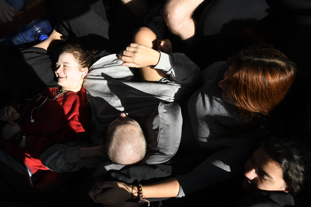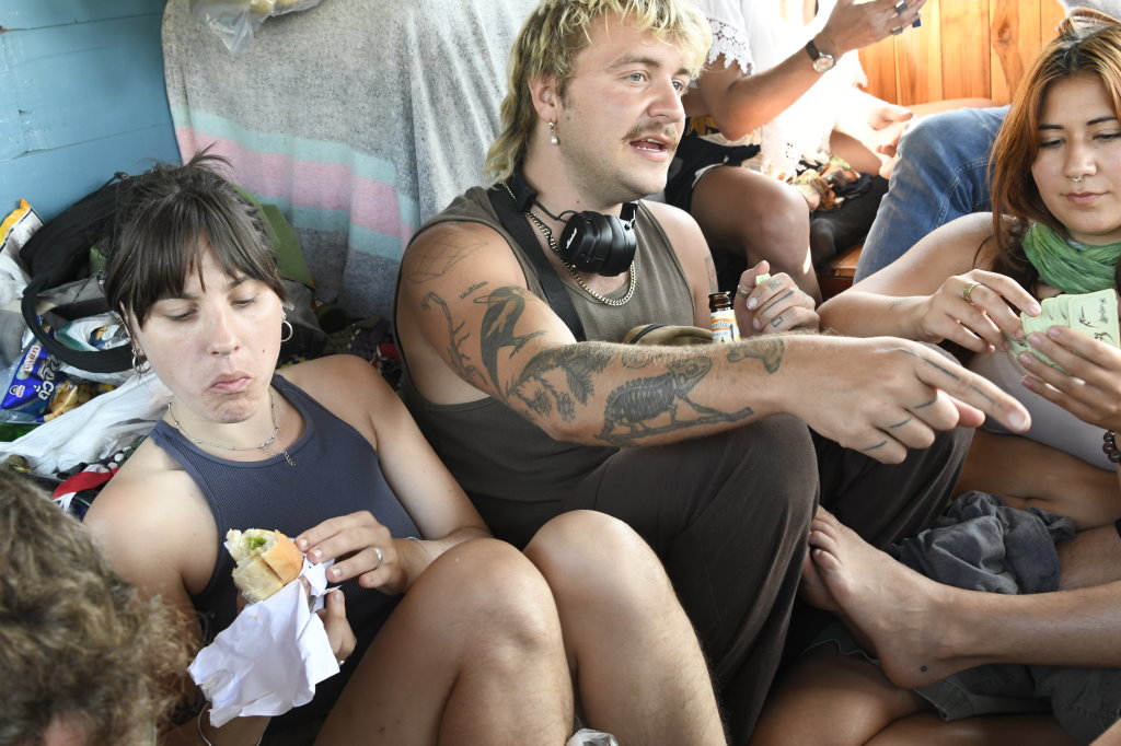 „Ich habe kaum geschlafen. Wenn ich deine Decke gehabt hätte, wäre es auf dem Boden gegangen.“ … „Hast du jemals gesehen, wie Affen lächeln, wenn sie Sex hatten?“ Eine Gruppe Jugendlicher hat es sich auf dem Boden bequem gemacht…