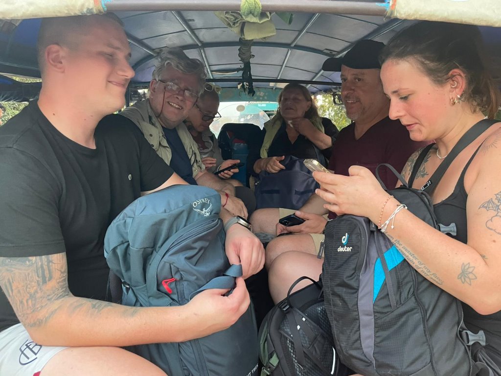 Das Boot ist voll, richtig voll. Bereits eine halbe Stunde vor Abfahrt sind die Sitzreihen in der Schiffsmitte voll besetzt. Wir kämpfen uns bis zum Heck durch und finden noch zwei Plätze auf der Bank an der Reling. Rechtzeitig genug, schnell werden ein Paar Plastikstühlchen im Gang verteilt, am Boden sind noch Liegeplätze frei…