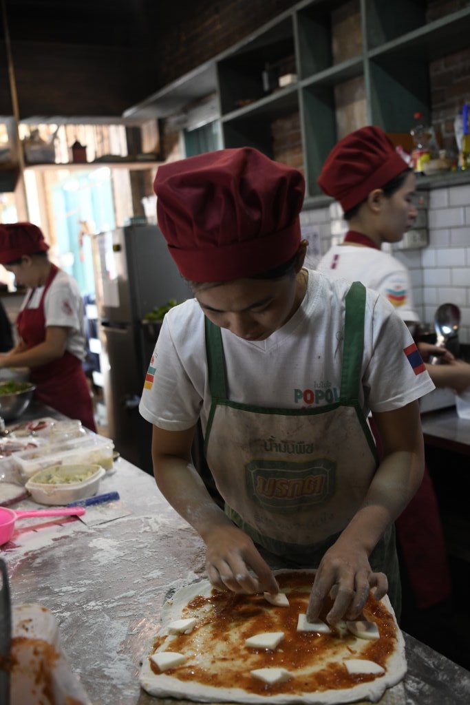 Wie man europäische Rezepturen landestypisch adaptieren kann, hatten wir bereits gestern in der „Popolo Cantina Convivial“ genießen können. Die Burrata wird mit einem Pesto aus Thai-Basilikum, Parmesan und Erdnüssen serviert. Superlecker. Auch bei der Steinofenpizza funktioniert die kulinarische kulturelle Aneignung hervorragend. Zu den Zutaten der „Popolare“ gehören neben dem klassischen Crudo, Parmesan, Tomaten und Mozarella ebenfalls dieses Erdnusspesto, sowie Thai-Basilikum, und Wasserkresse. So haben wir dann doch noch ein paar neue landestypische Rezepte kennengelernt.