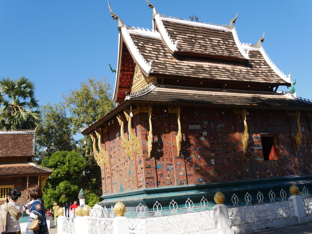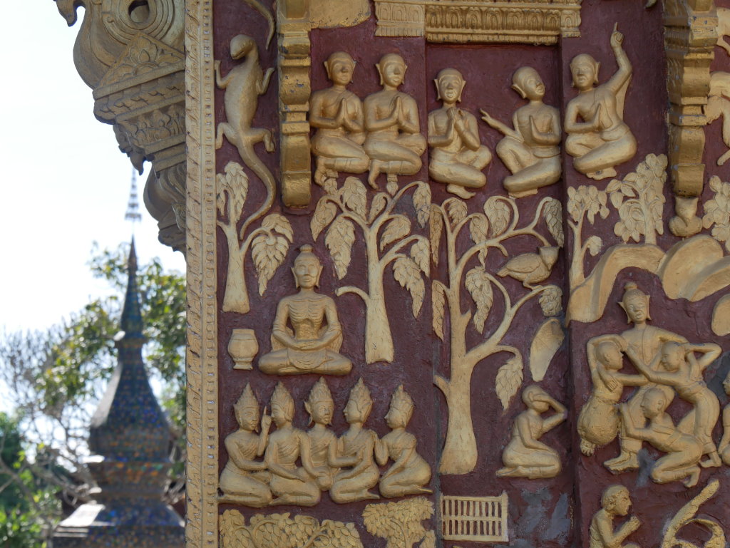 Gegen Mittag sind wir zum Goldenen Stadttempel gepilgert, Cosys Lieblings-Wat Xieng Thong, um unsere Wünsche für das neue Jahr zu senden, an Gott, das Universum oder welche spirituelle Instanz auch immer…