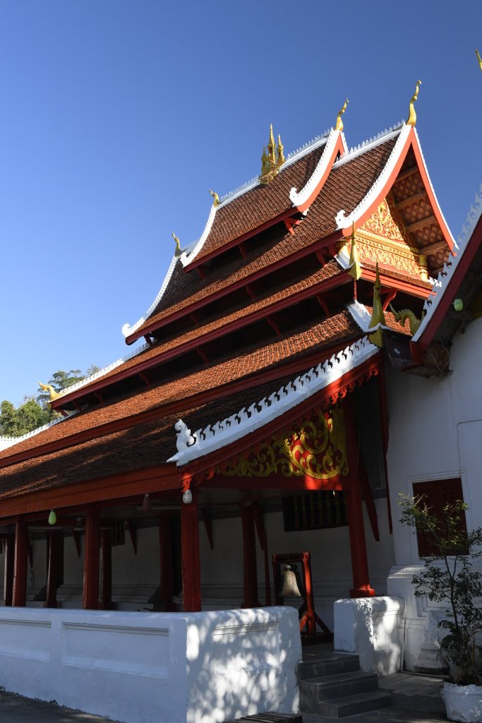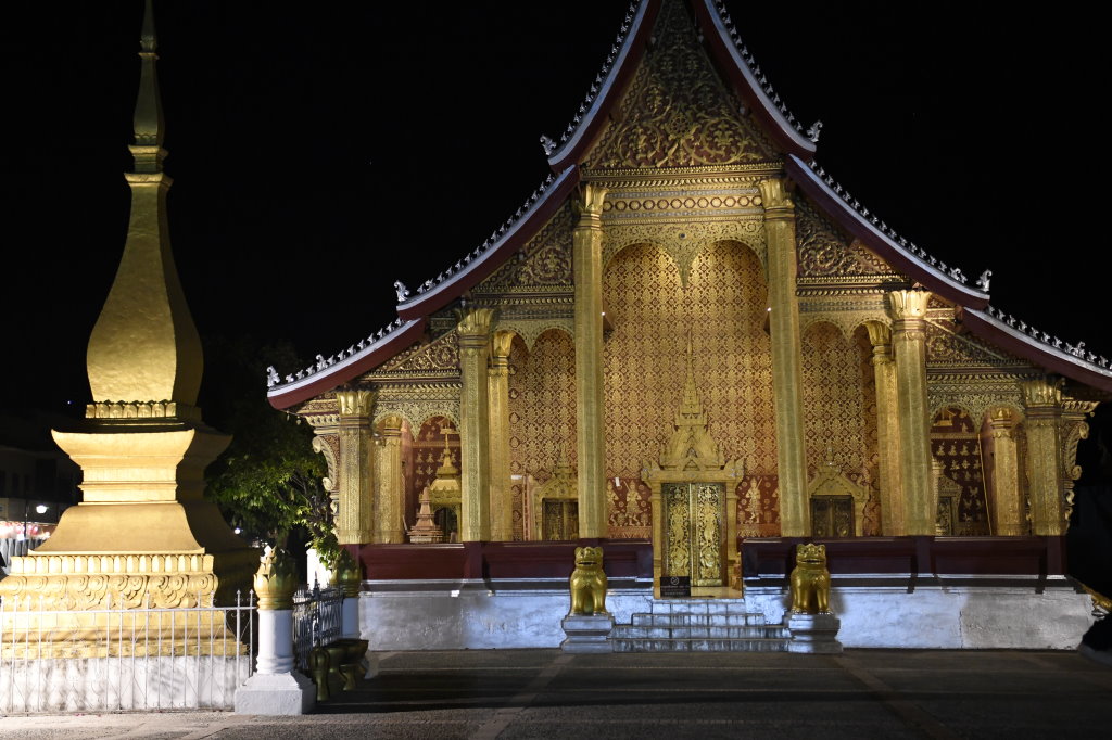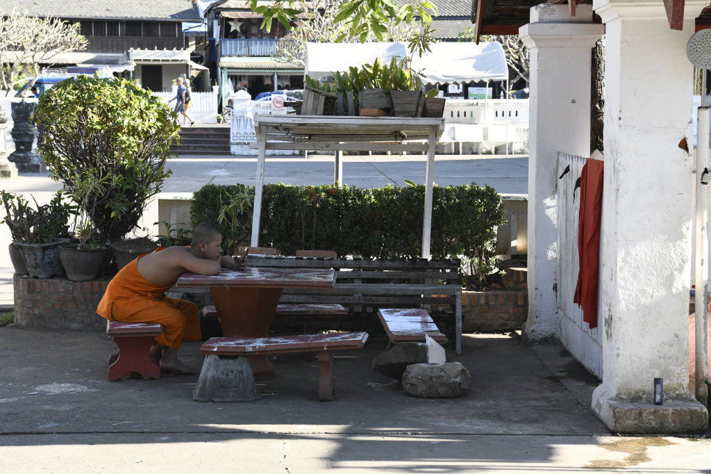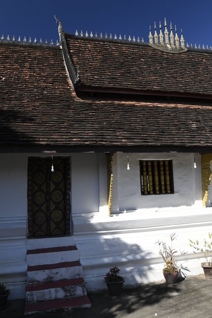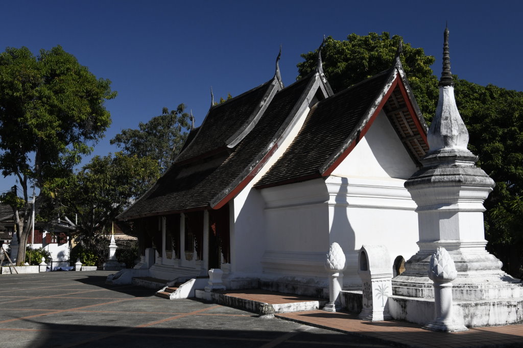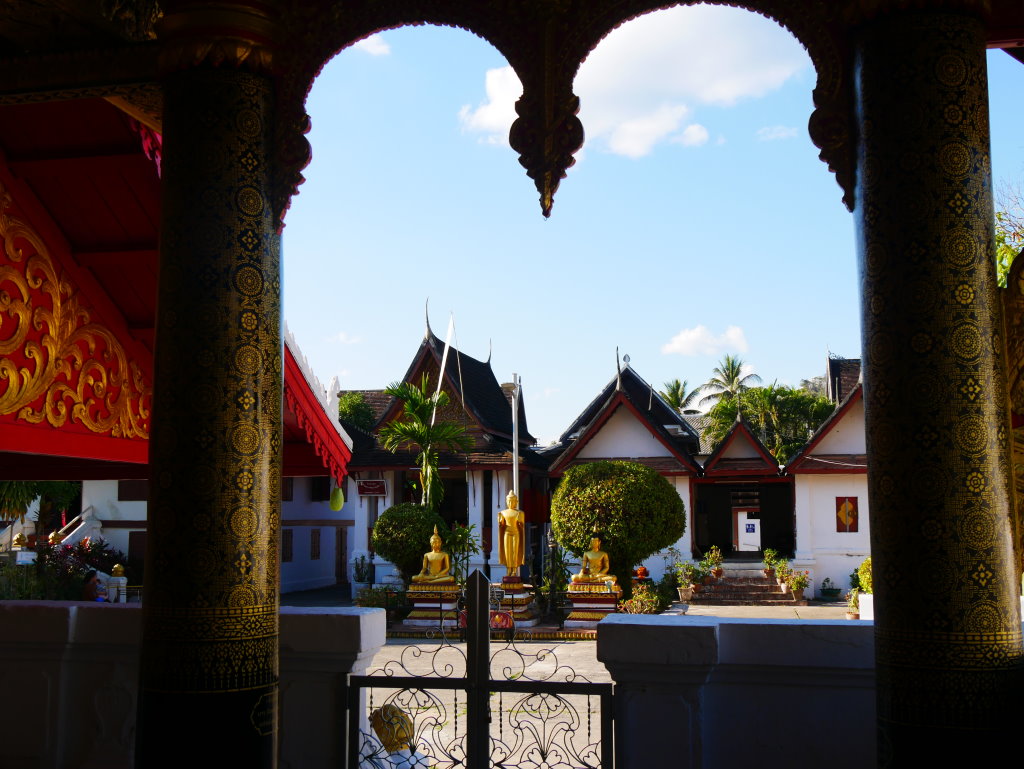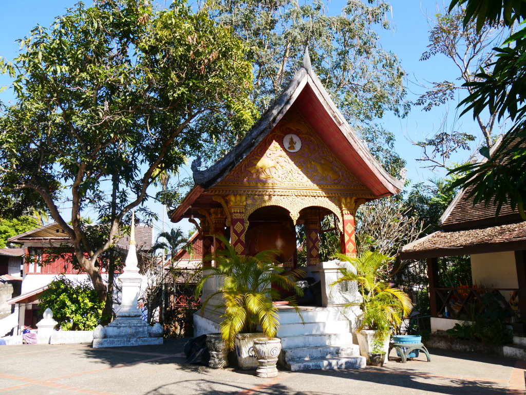 Nach mehr als einer Stunde können wir uns loseisen und wandern wieder einmal von Wat zu Wat durch den historischen Teil von Luang Prabang, entledigen uns unserer Trecking-Sandalen beim Betreten der Tempel des Wat Sibounheuang und des Wat Souvannakhiri.