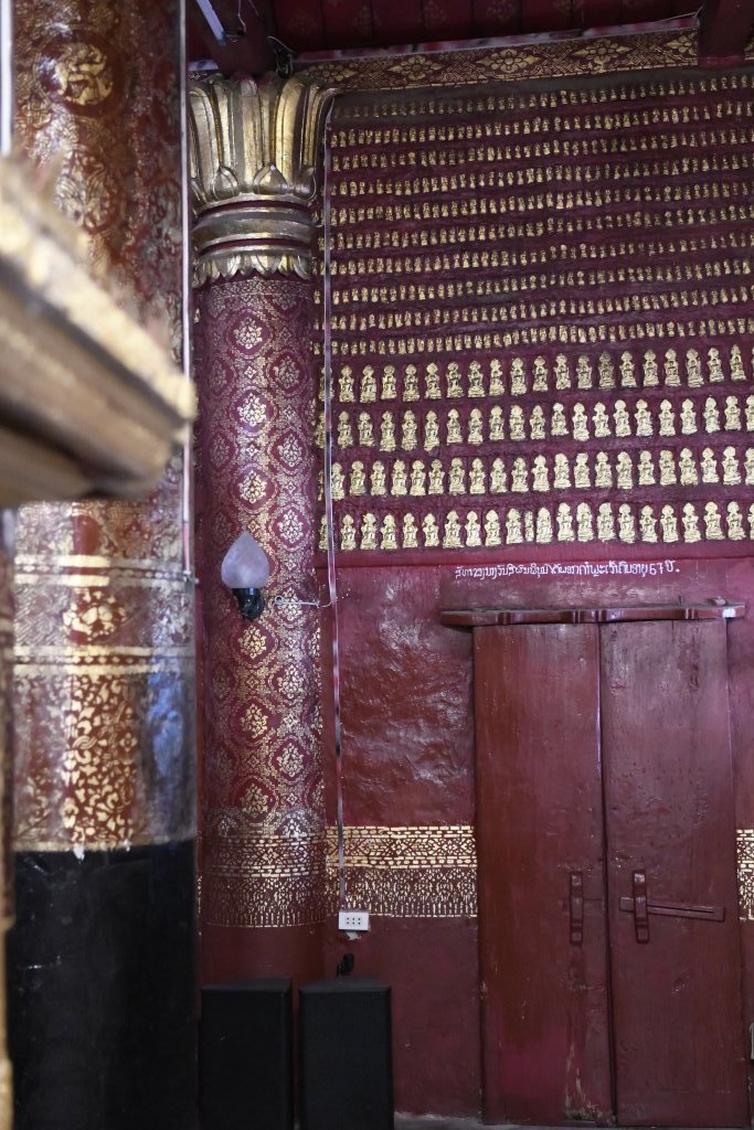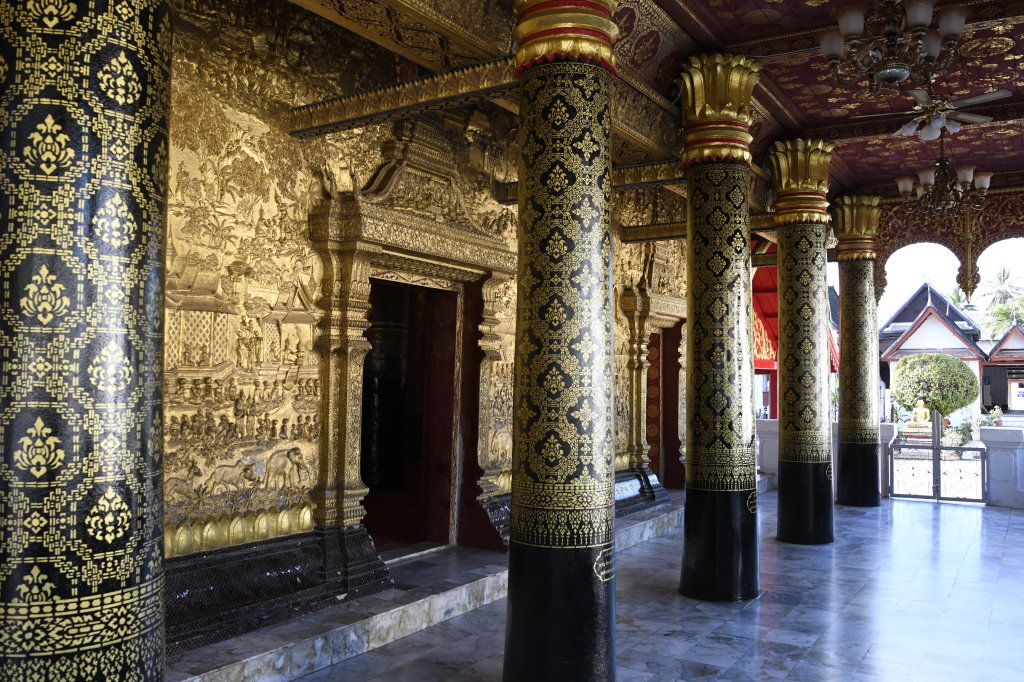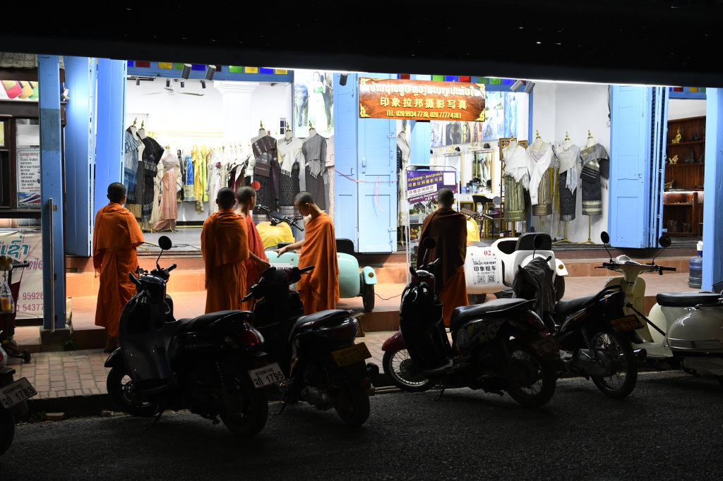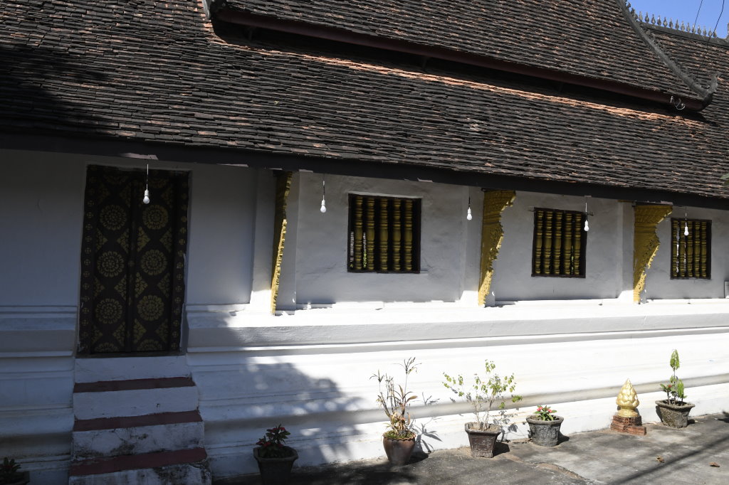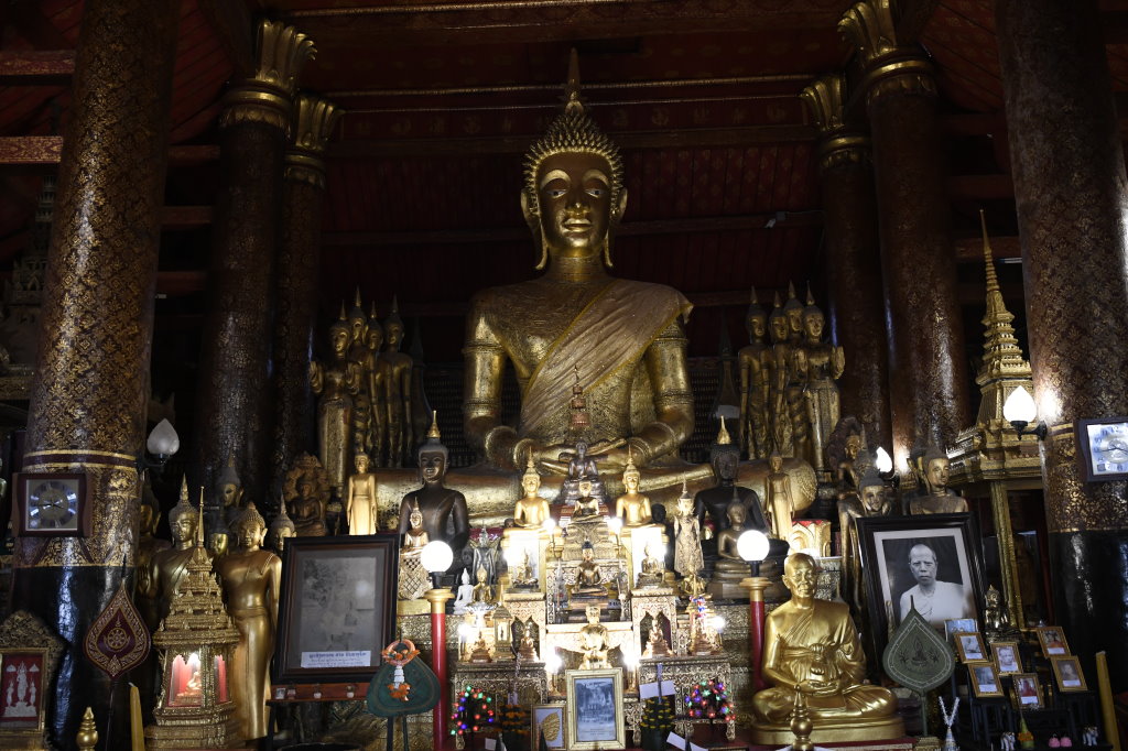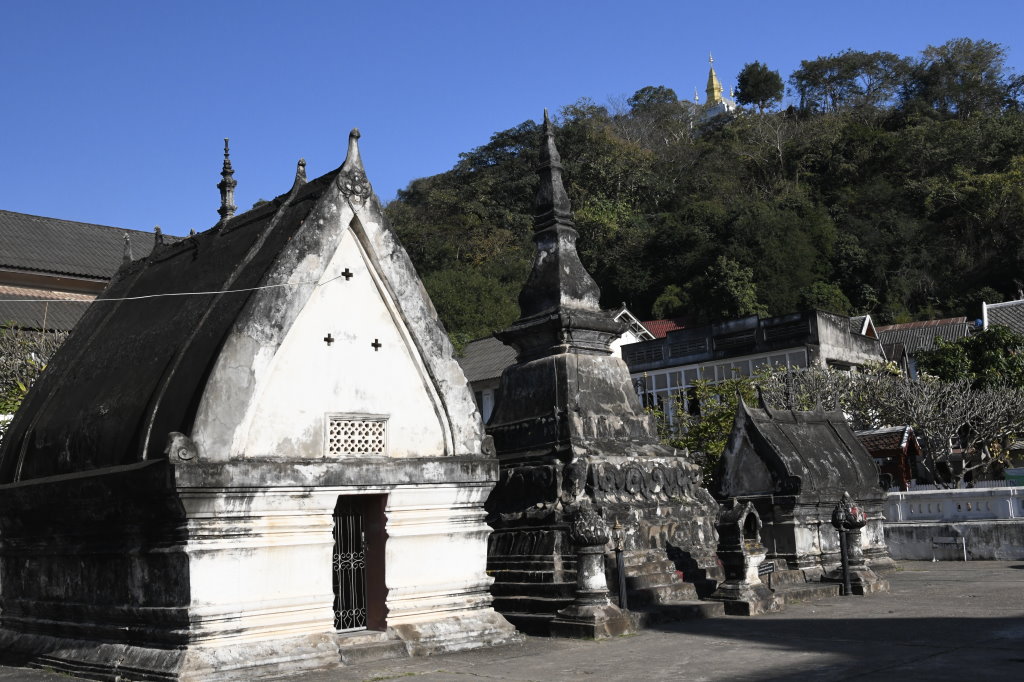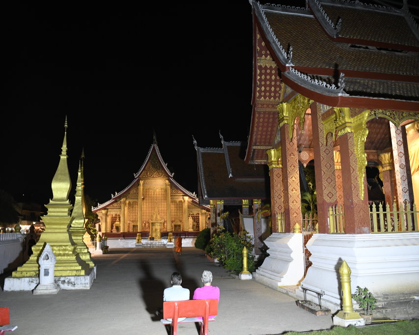 Nach mehr als einer Stunde können wir uns loseisen und wandern wieder einmal von Wat zu Wat durch den historischen Teil von Luang Prabang, entledigen uns unserer Trecking-Sandalen beim Betreten der Tempel des Wat Sibounheuang und des Wat Souvannakhiri.