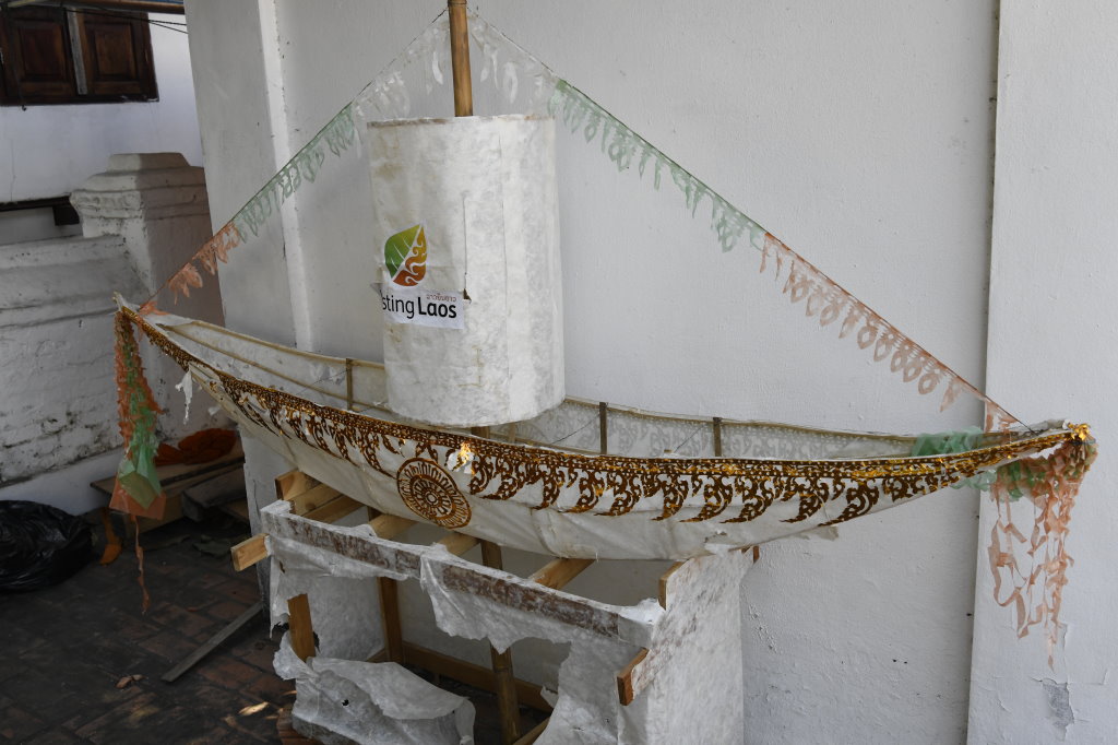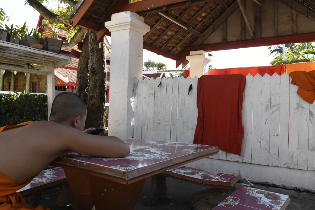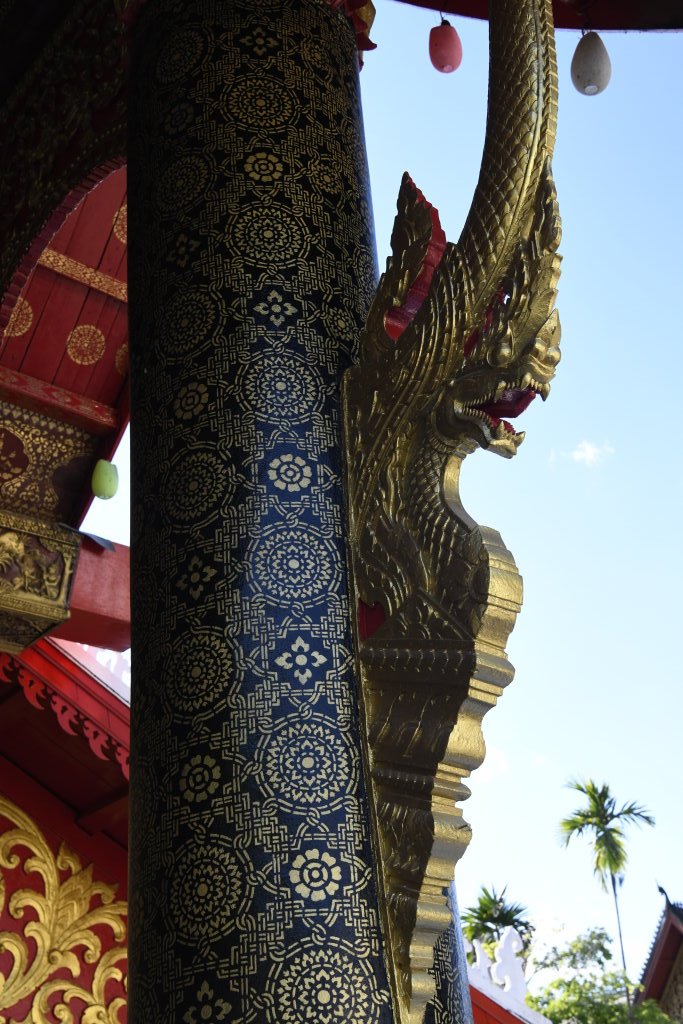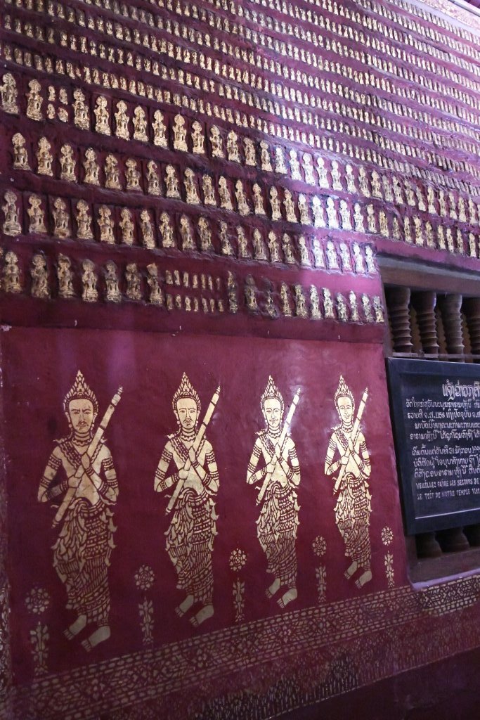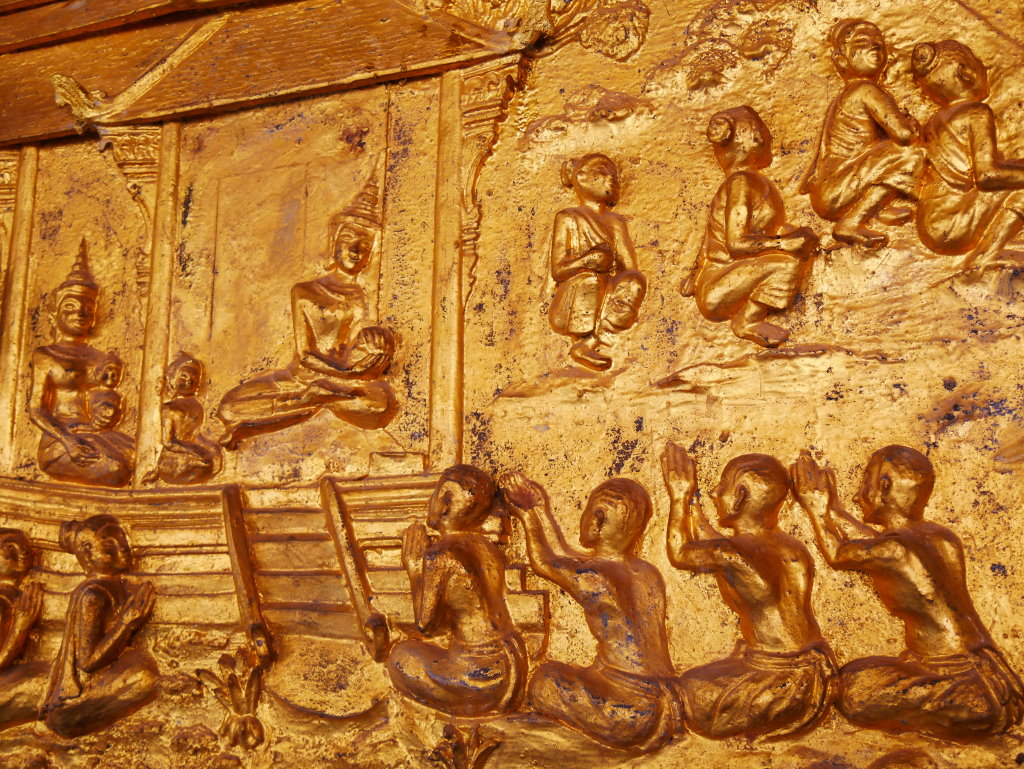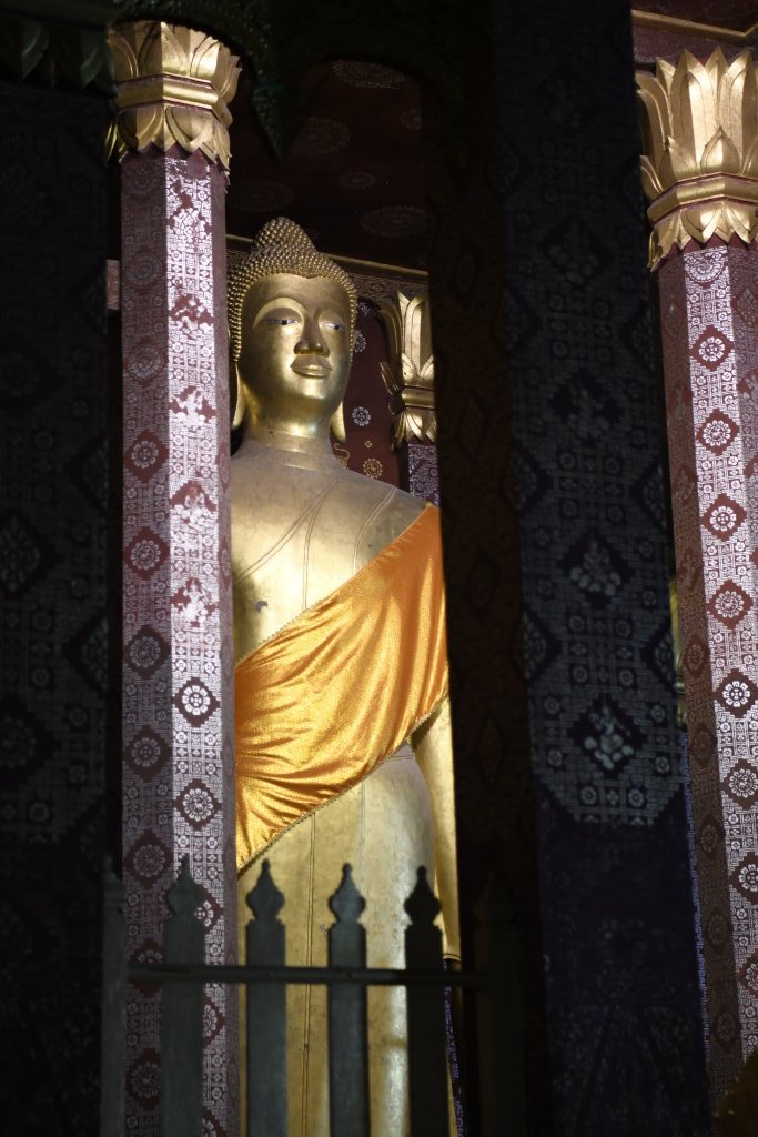 Nach mehr als einer Stunde können wir uns loseisen und wandern wieder einmal von Wat zu Wat durch den historischen Teil von Luang Prabang, entledigen uns unserer Trecking-Sandalen beim Betreten der Tempel des Wat Sibounheuang und des Wat Souvannakhiri.