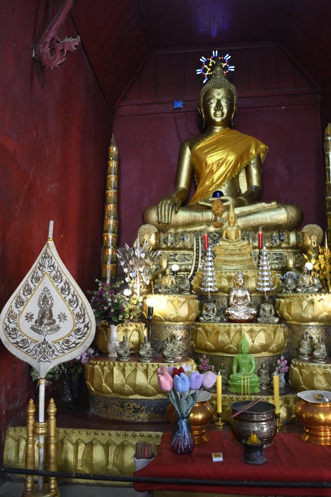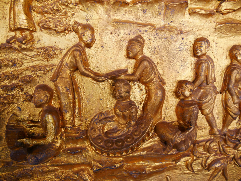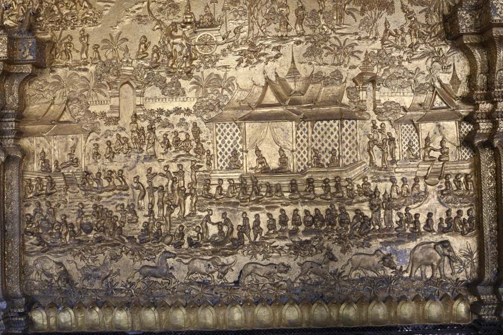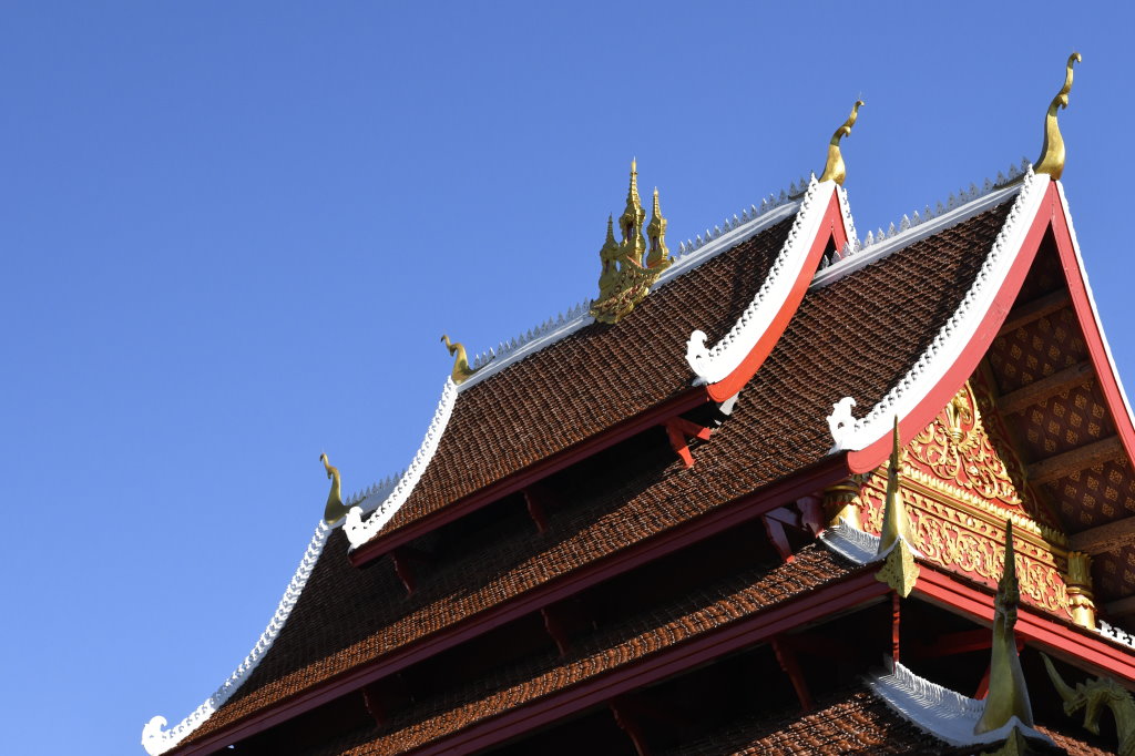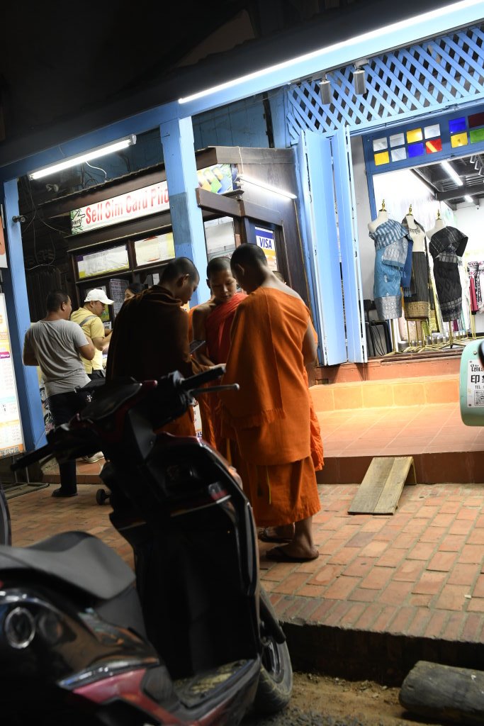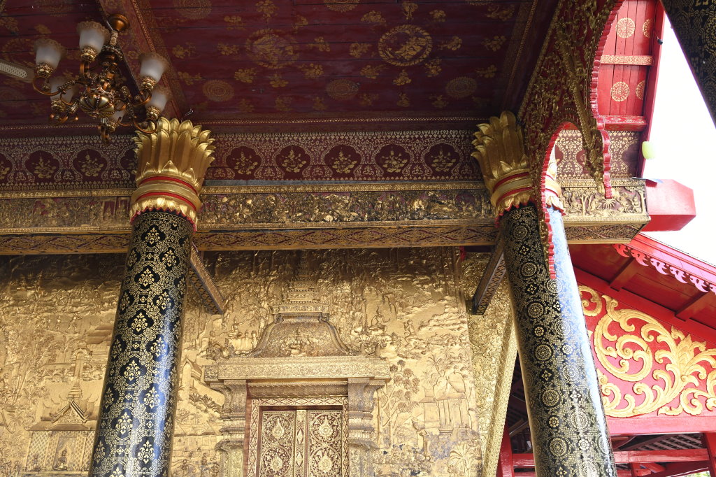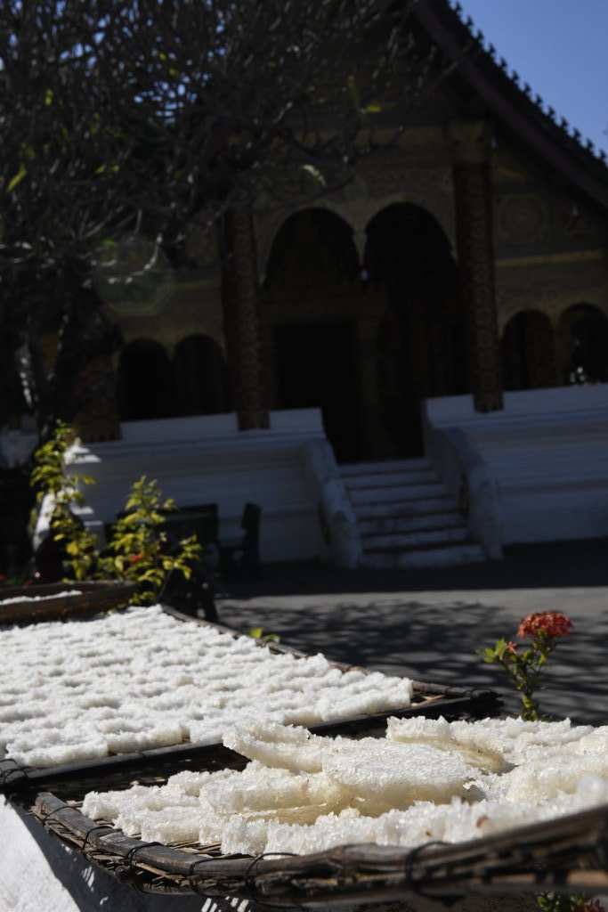 Nach mehr als einer Stunde können wir uns loseisen und wandern wieder einmal von Wat zu Wat durch den historischen Teil von Luang Prabang, entledigen uns unserer Trecking-Sandalen beim Betreten der Tempel des Wat Sibounheuang und des Wat Souvannakhiri.