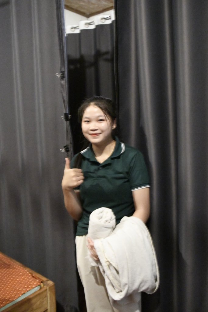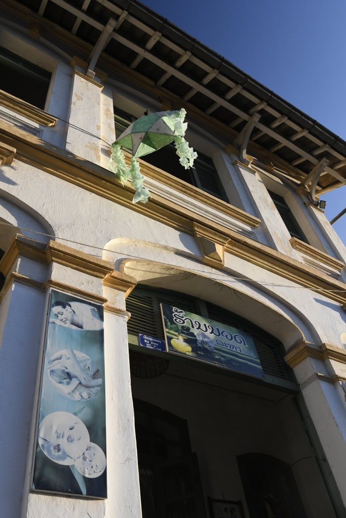 Doch halt, gegenüber vom Wat lockt eine Massage. Die Menthol-Variante könnte die Lösung für meinen Muskelkater sein. Für gerade einmal 4 Euro (90.000 laotische Kip) komme ich in den Genuss dieser wohltuenden „Medizin“. Die Laotin Seng knetet kraftvoll gelben Tigerbalm in die verkaterten Gelenke. Erstes Fazit beim Hinuntersteigen der Treppen von den Massageräumen im Obergeschoss: Passt, ich rieche wie ein Eukalyptus-Bonbon, aber es scheint zu wirken…