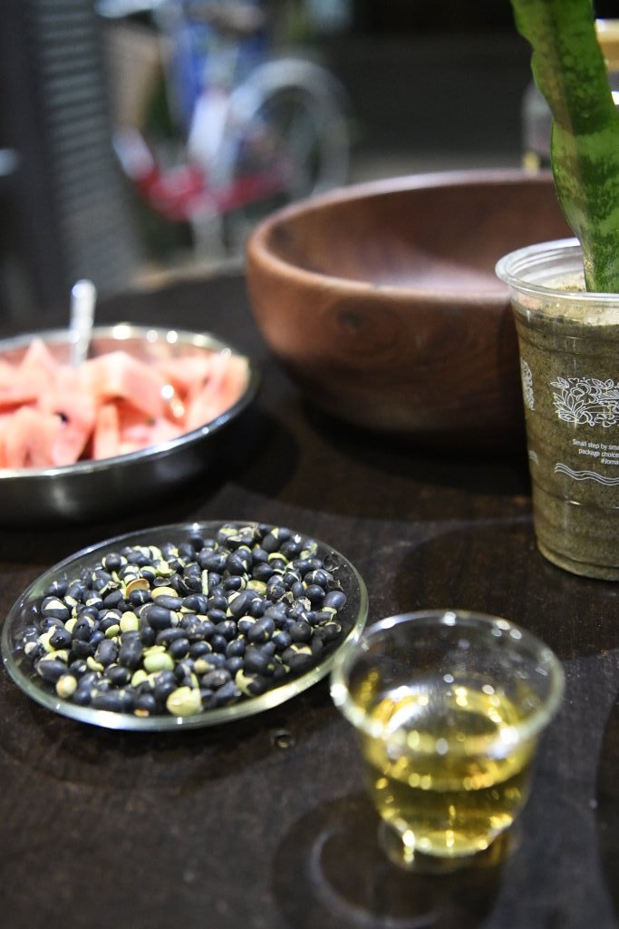 Nach dem Abendessen strawanzen wir noch ein wenig durch die nächtliche Altstadt. Unglaublich, aber wahr: In der Lobby unseres Hotels wartet eine Kollegin der Chinesin vom Vormittag mit einer Neuauflage der Teezeremonie. Knabberzeug inklusive: schwarze Bohnen und Wassermelone. Nach dem zehnten Aufguss brechen wir ab und verschwinden tee-seelig in unserem Zimmer.