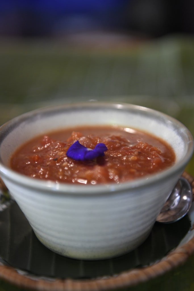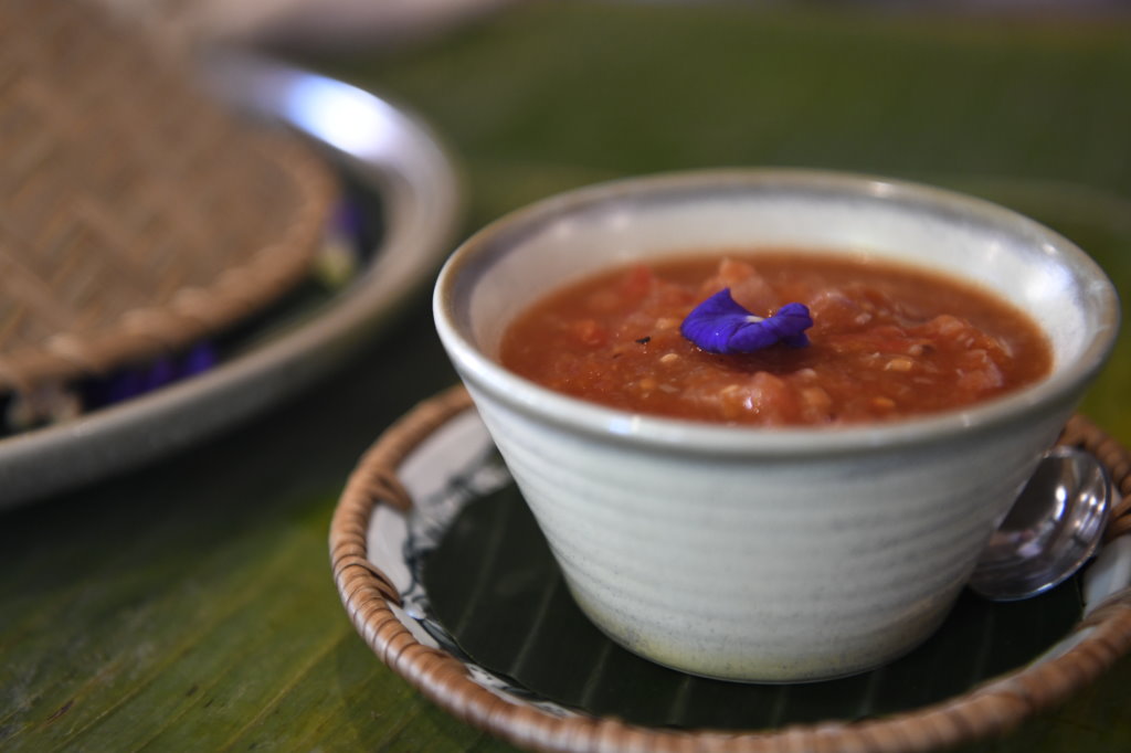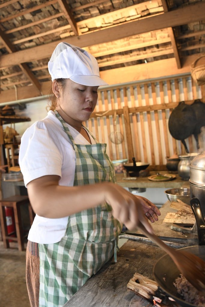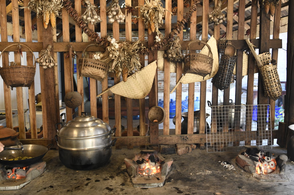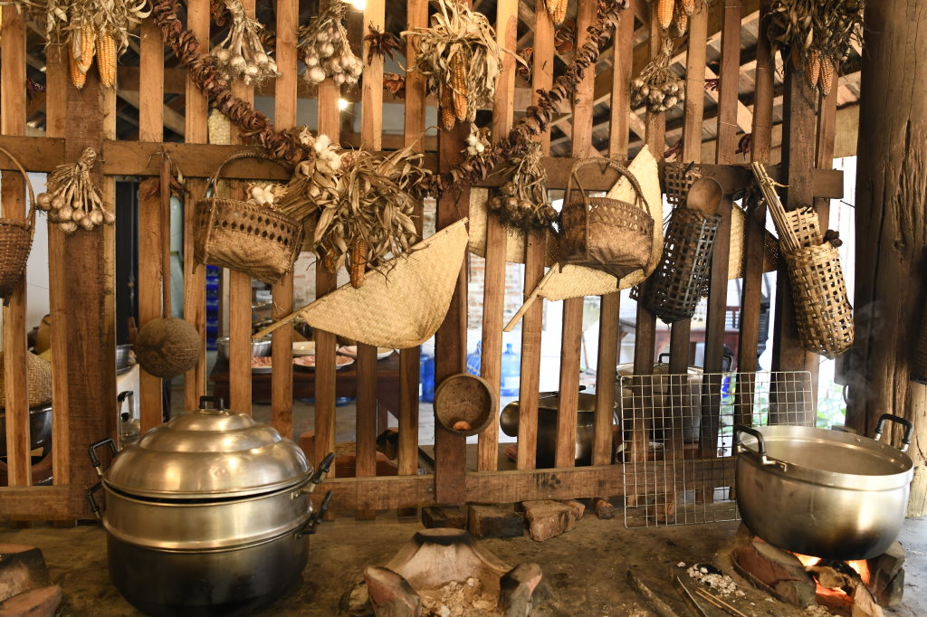 In der Freiluftküche des Restaurants „Khuamordin“ werden wir bereits erwartet. Zu unserer Überraschung erfahren wir, dass wir heute die einzigen Schüler sind, der heutige Morgenkurs wurde kurzfristig eingeschoben, warum wird uns erst später klar. Zunächst wird jedem Kocheleven schnell eine Schürze umgebunden und eine Mütze aufgesetzt.