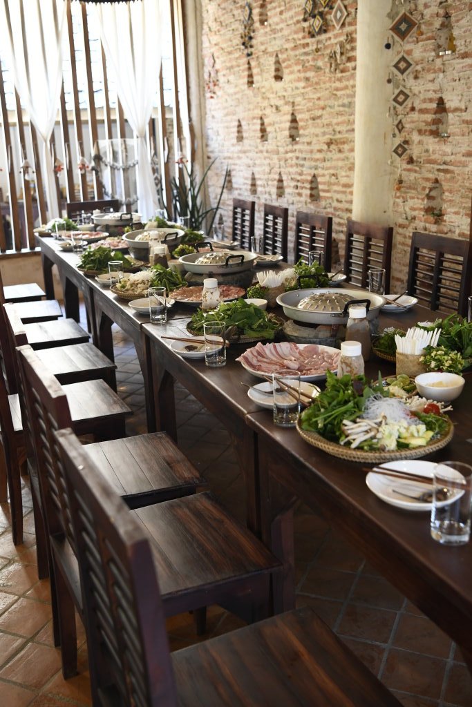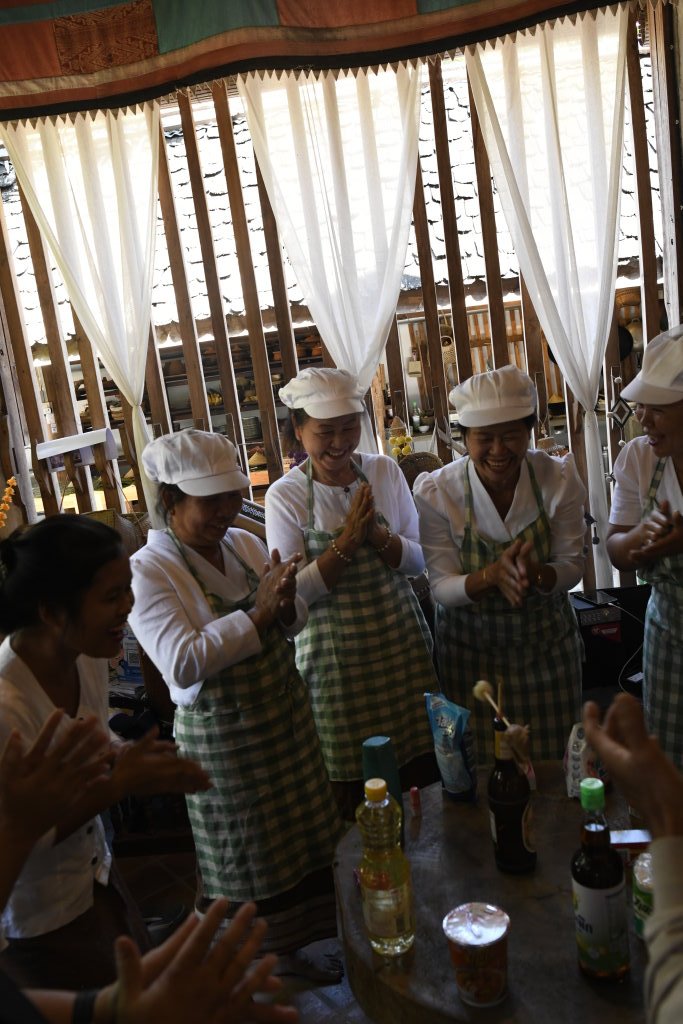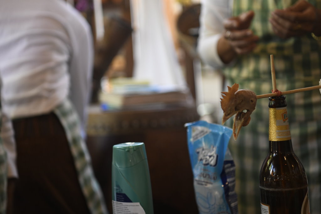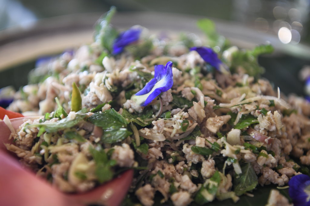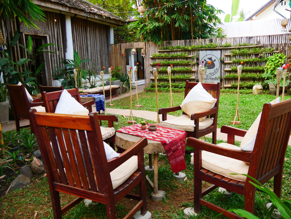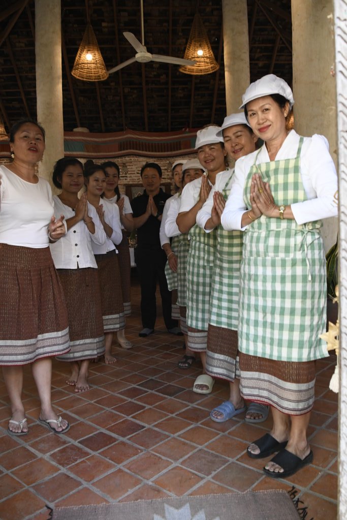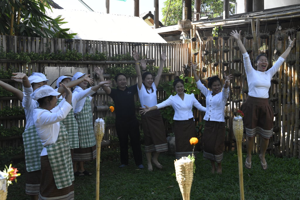 Heute wird hier gemeinsam Neujahr gefeiert, die Vorbereitungen liefen bereits am Vormittag auf Hochtouren, während wir unsere Lehrstunden erhielten. Selbstverständlich dürfen wir jetzt noch nicht zurück ins Hotel. Deuane, die Eigentümerin des Restaurants „Khuamordin” mit angeschlossener Kochschule besteht darauf, dass wir bleiben und mitfeiern.
