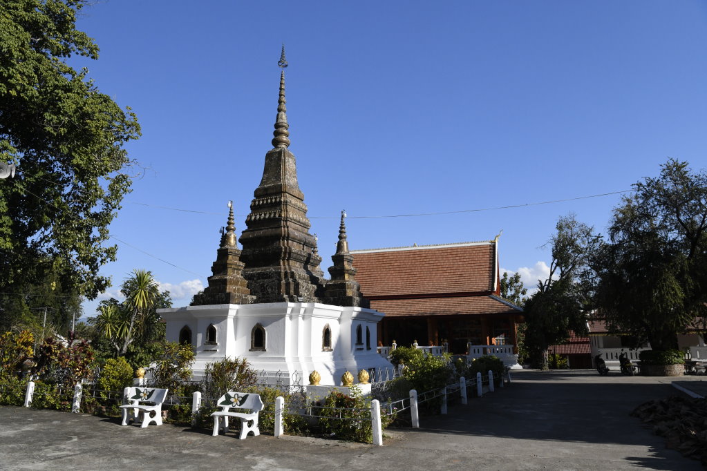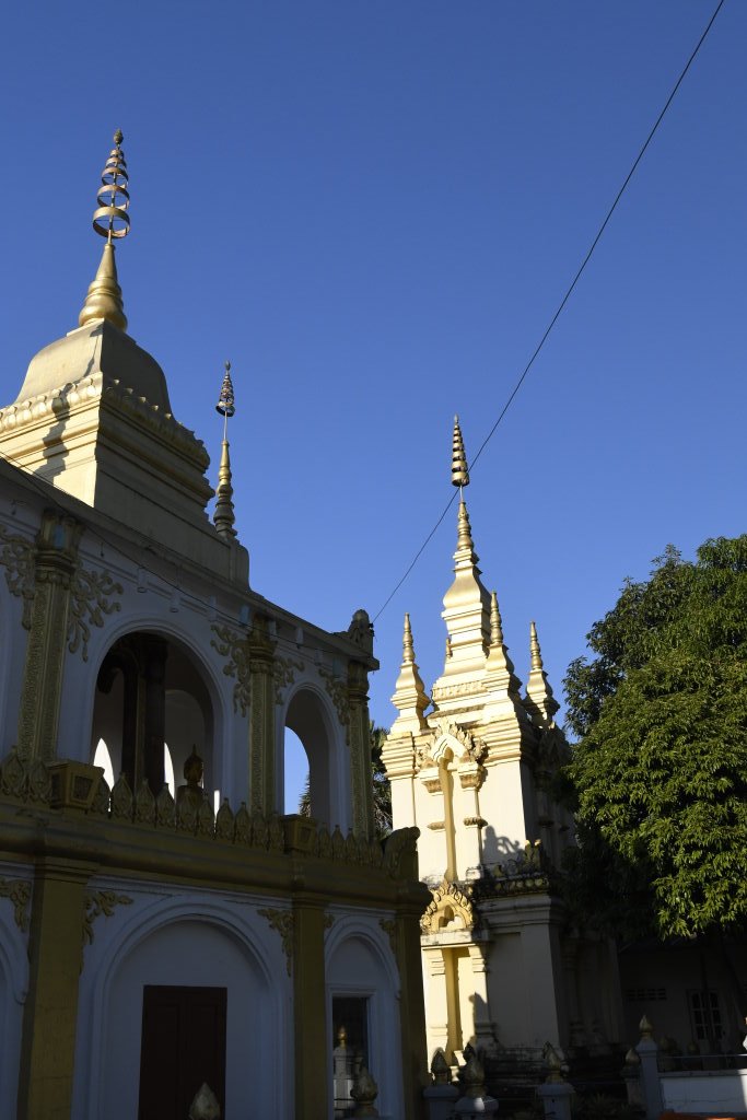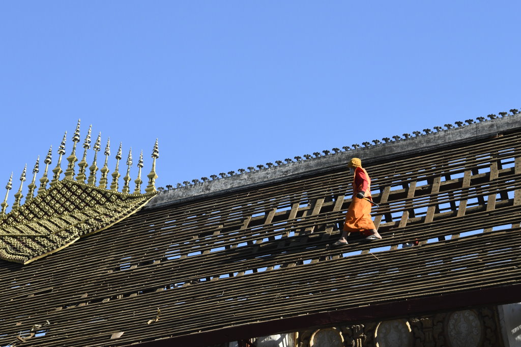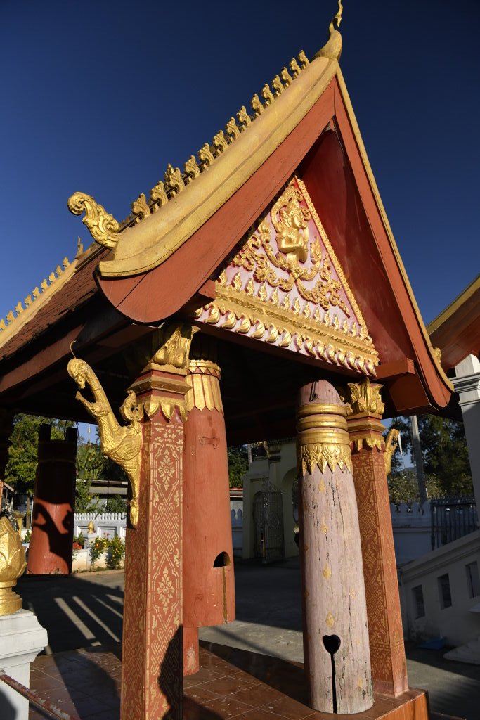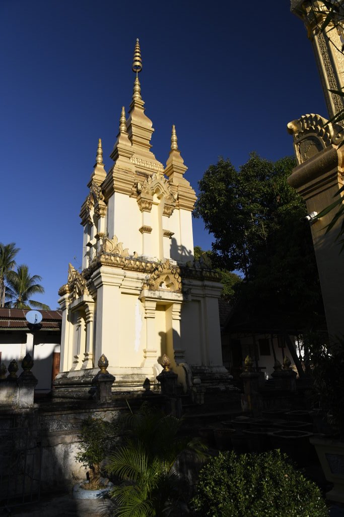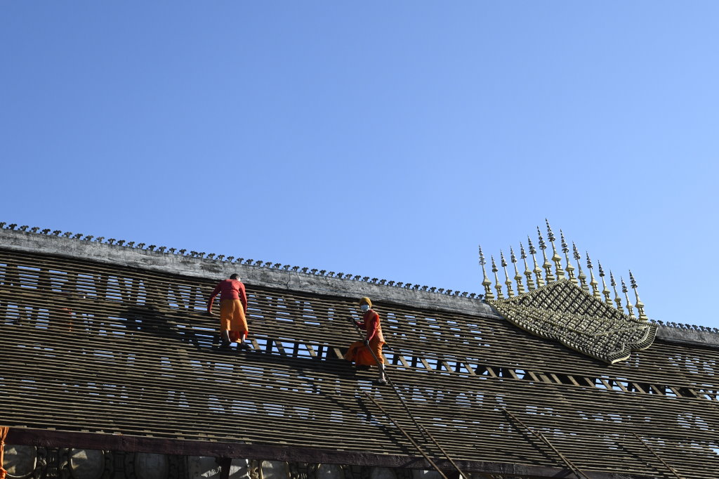 Auf der Rückfahrt ins Hotel lassen wir uns noch am Wat That Luang absetzen. Auf dem Klostergelände arbeiten gerade einige Mönche am Dachstuhl eine alten Gebäudeteils, der gerade renoviert wird. Noch ist wenig von der alten, neuen Pracht zu sehen. Das macht neugierig. Wieder mal ein Grund, wiederzukommen, irgendwann…