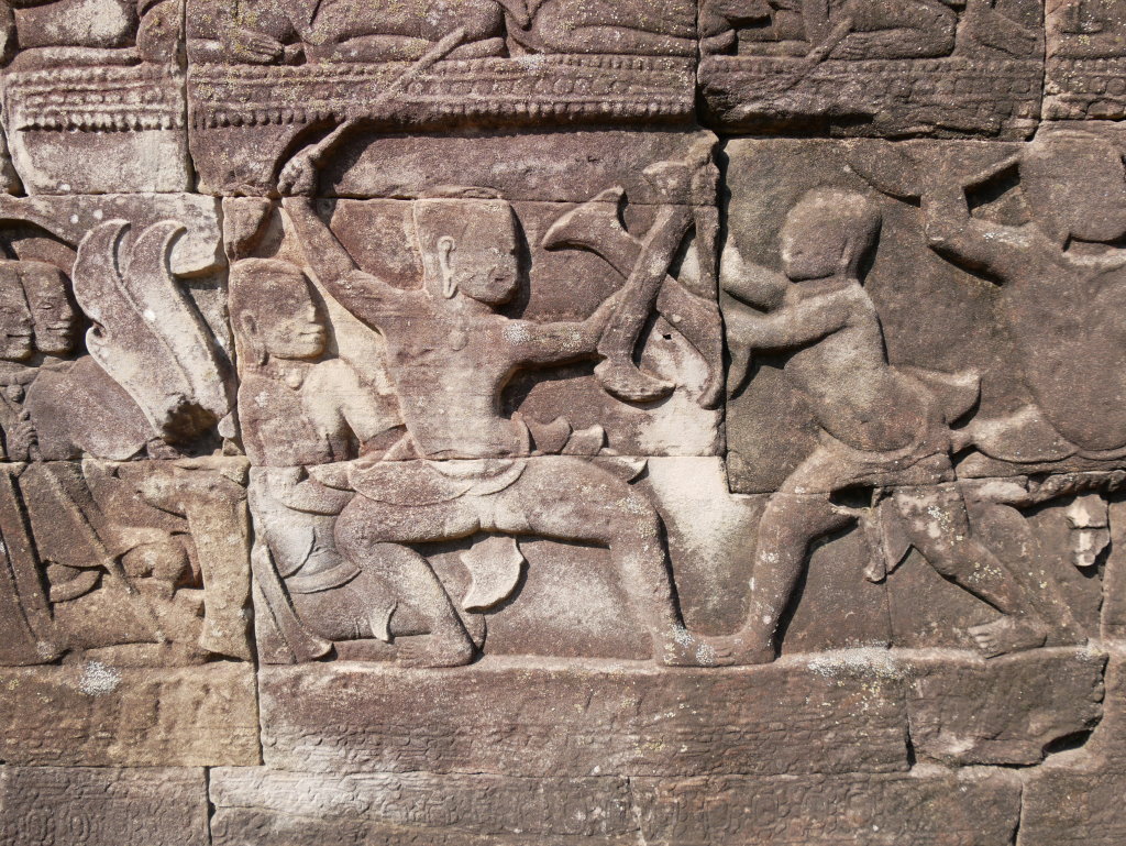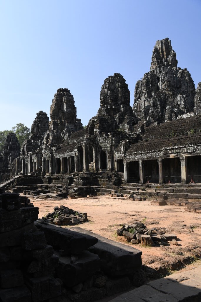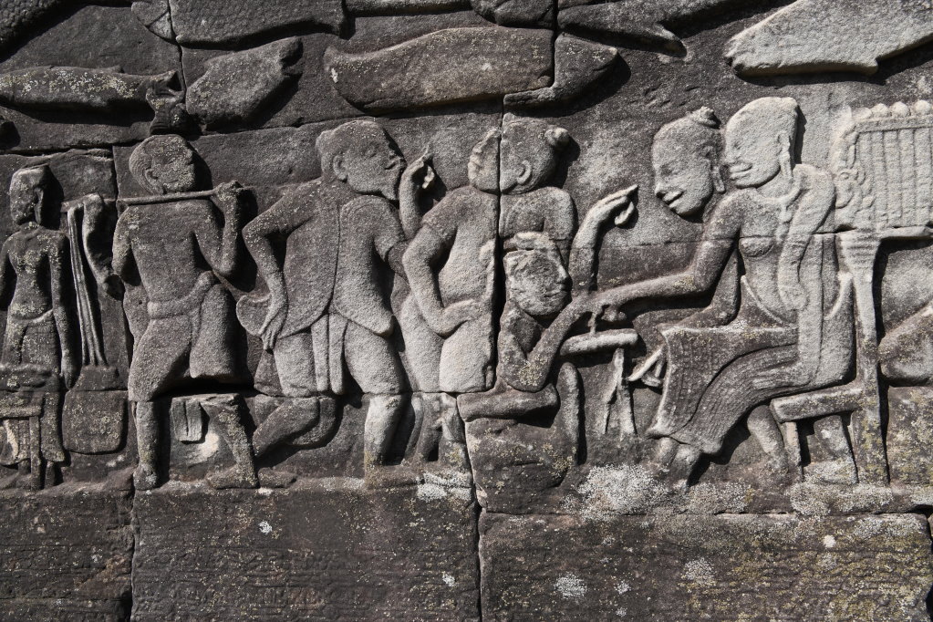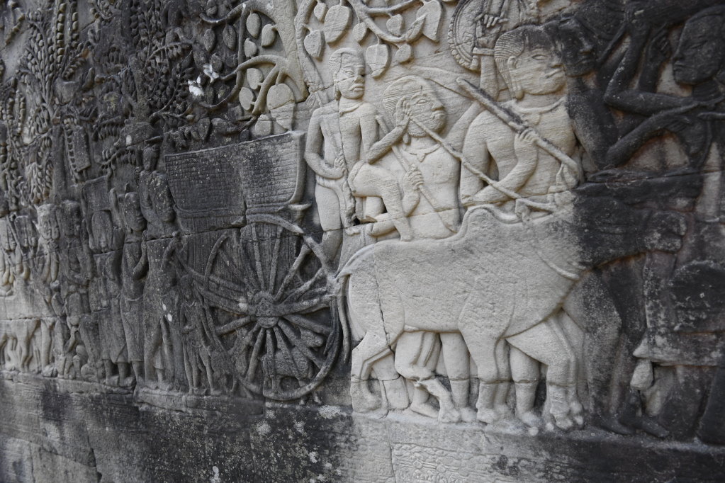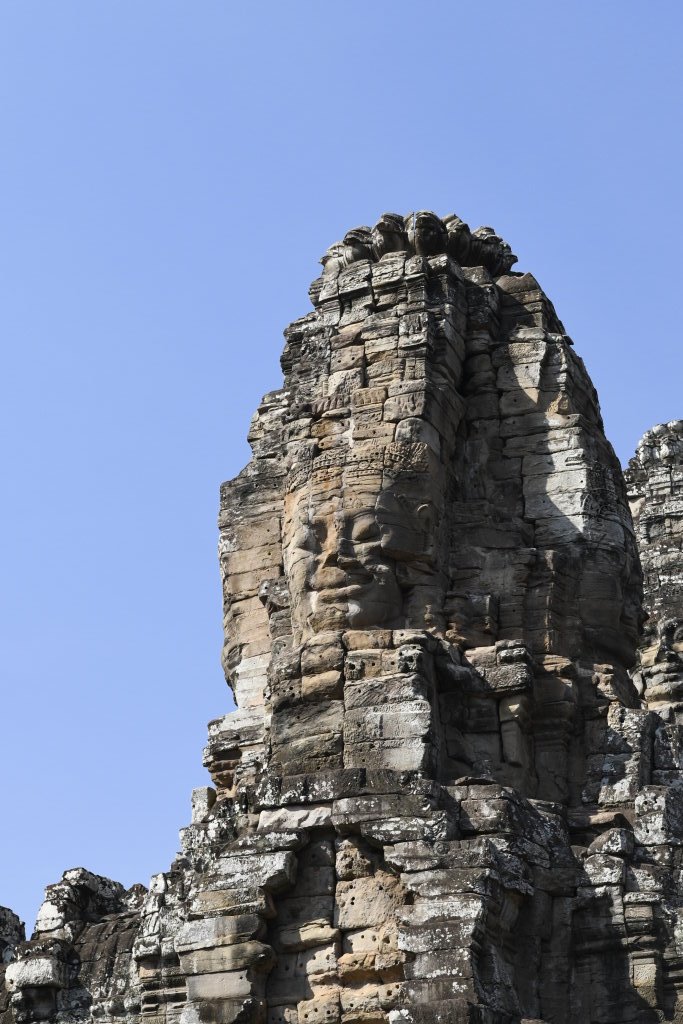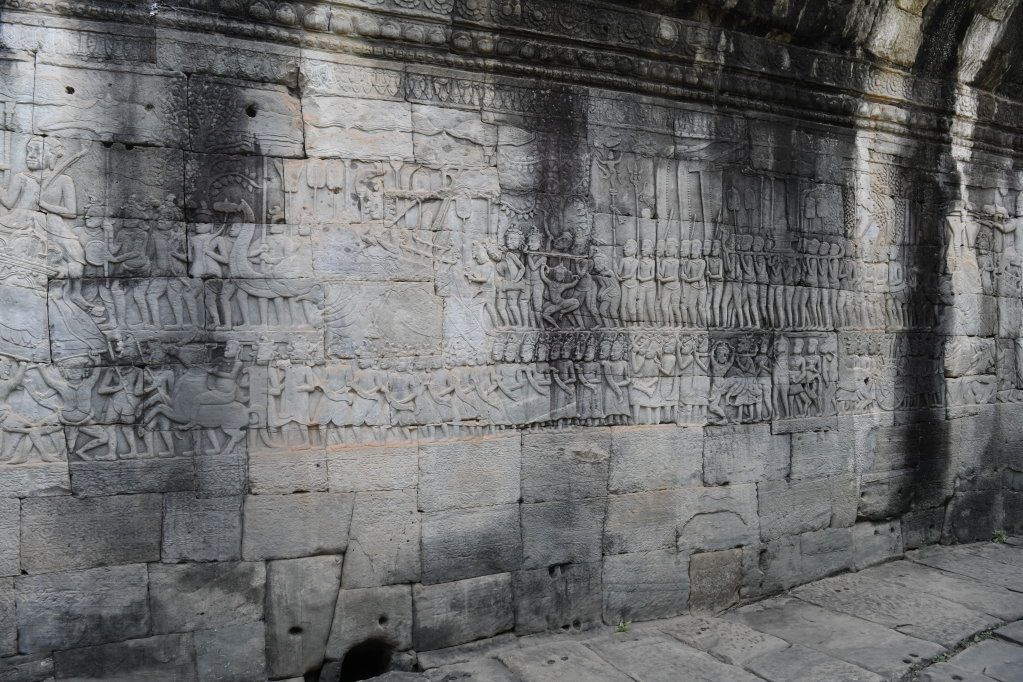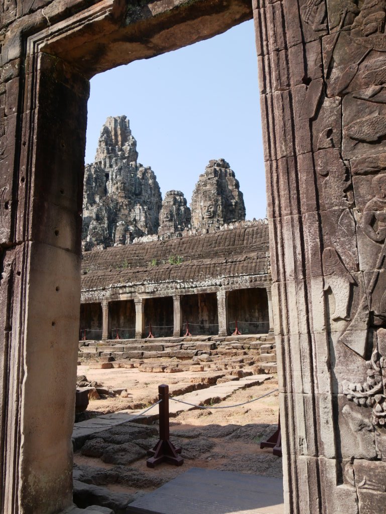 Auch der Bayon Tempel mit den markanten großen Steingesichtern wird mit ausländischer Hilfe vor dem weiteren Verfall bewahrt. Hier ist es eine japanische Stiftung, die sich das zur Aufgabe gemacht hat. Gerade laufen die Arbeiten an einem großen Wandrelief, das in Teilen bereits jetzt wieder in altem Glanz erstrahlt. Die Holztreppen hinauf zu den Türmen mit den Steingesichtern sind seit dem Jahr 2020 für Besucher gesperrt, um dort geplante Restaurierungsarbeiten nicht zu stören.