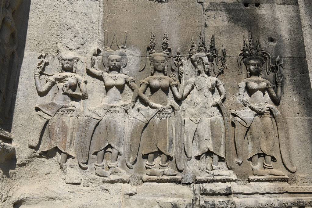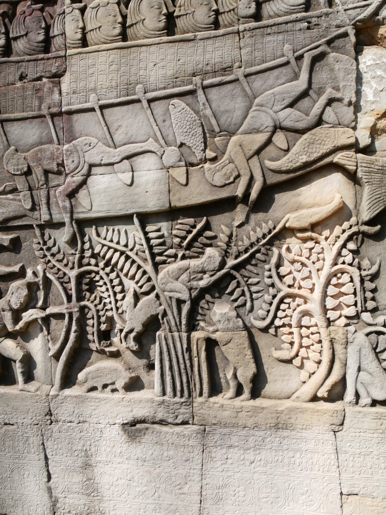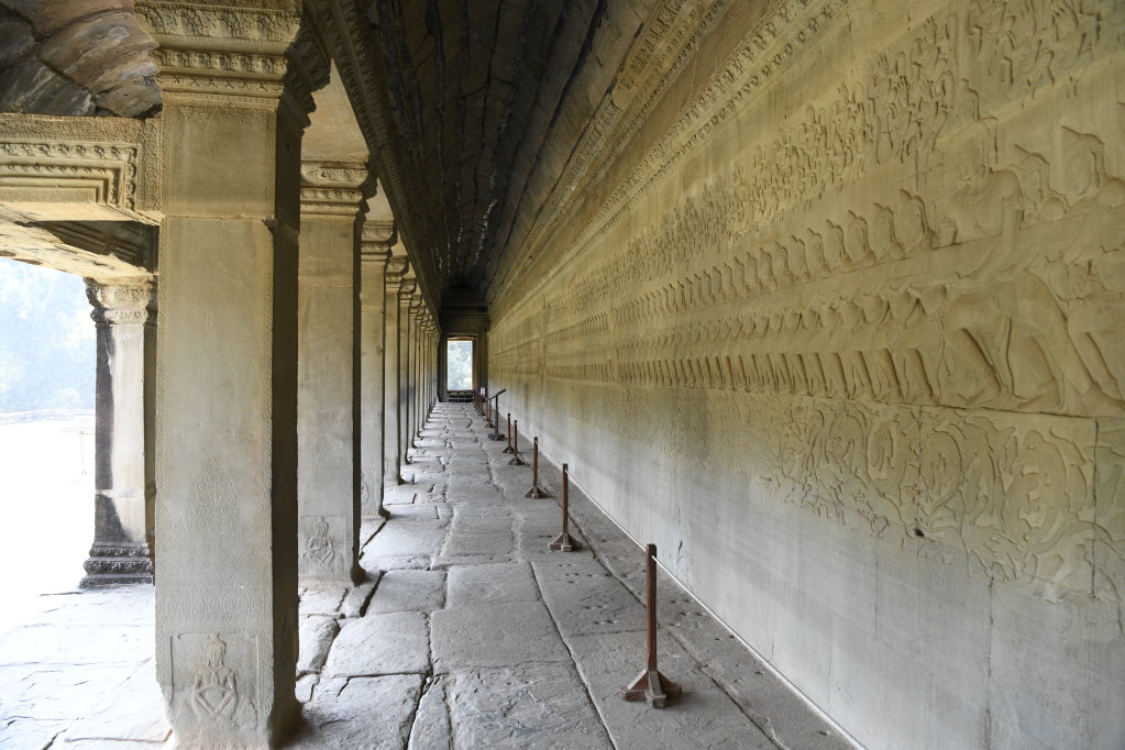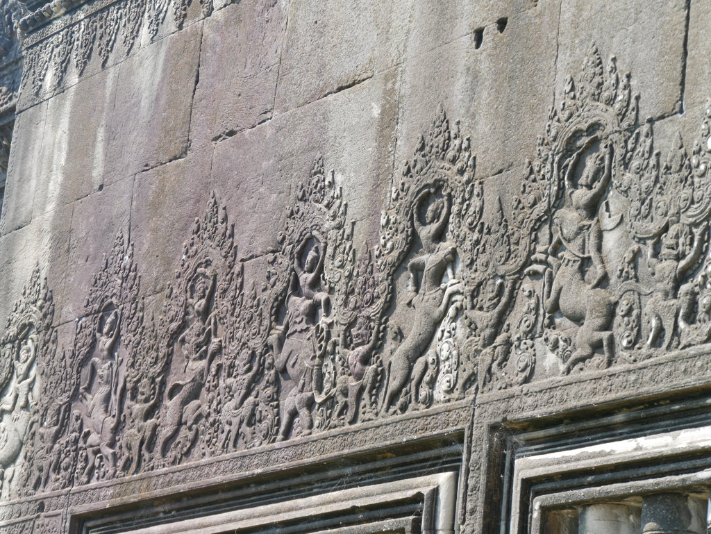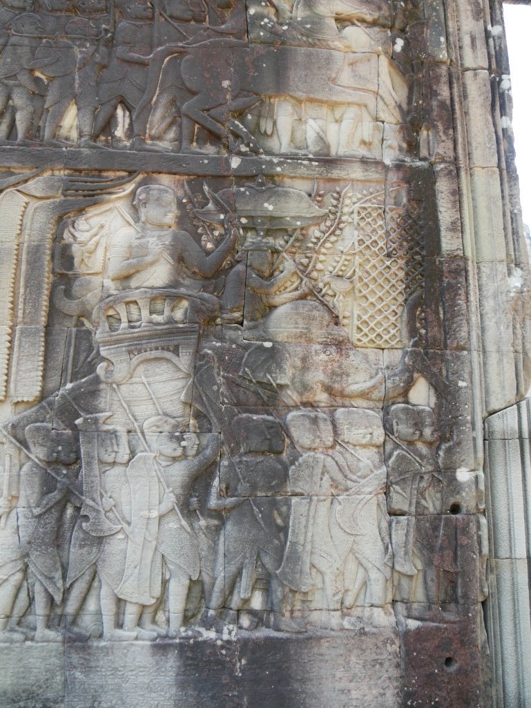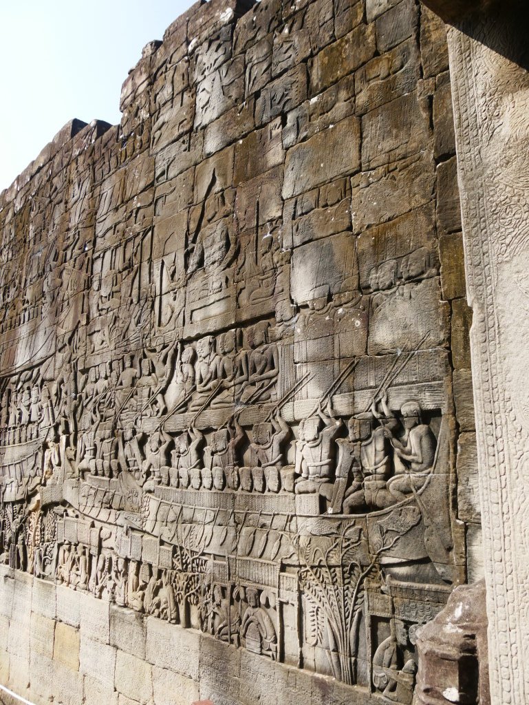 Auch der Bayon Tempel mit den markanten großen Steingesichtern wird mit ausländischer Hilfe vor dem weiteren Verfall bewahrt. Hier ist es eine japanische Stiftung, die sich das zur Aufgabe gemacht hat. Gerade laufen die Arbeiten an einem großen Wandrelief, das in Teilen bereits jetzt wieder in altem Glanz erstrahlt. Die Holztreppen hinauf zu den Türmen mit den Steingesichtern sind seit dem Jahr 2020 für Besucher gesperrt, um dort geplante Restaurierungsarbeiten nicht zu stören.