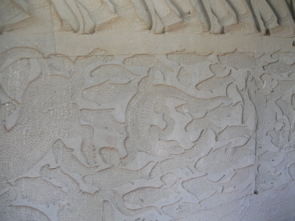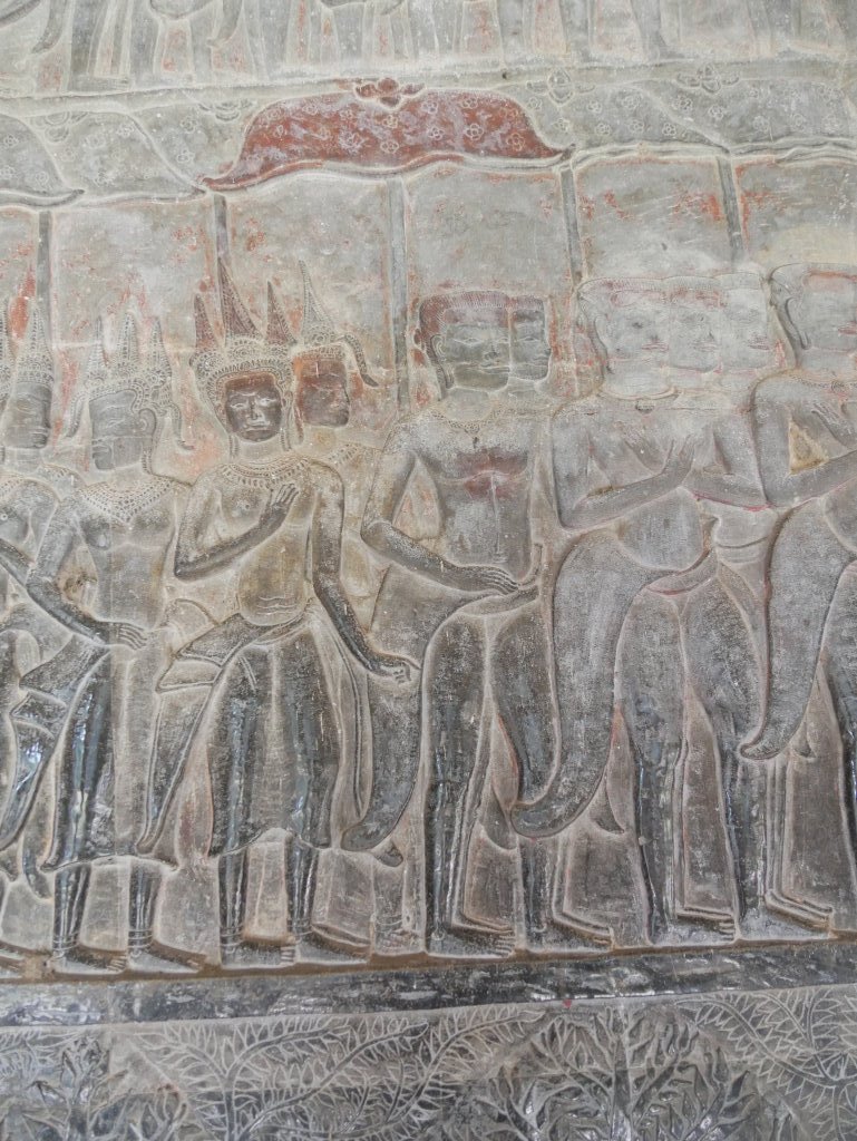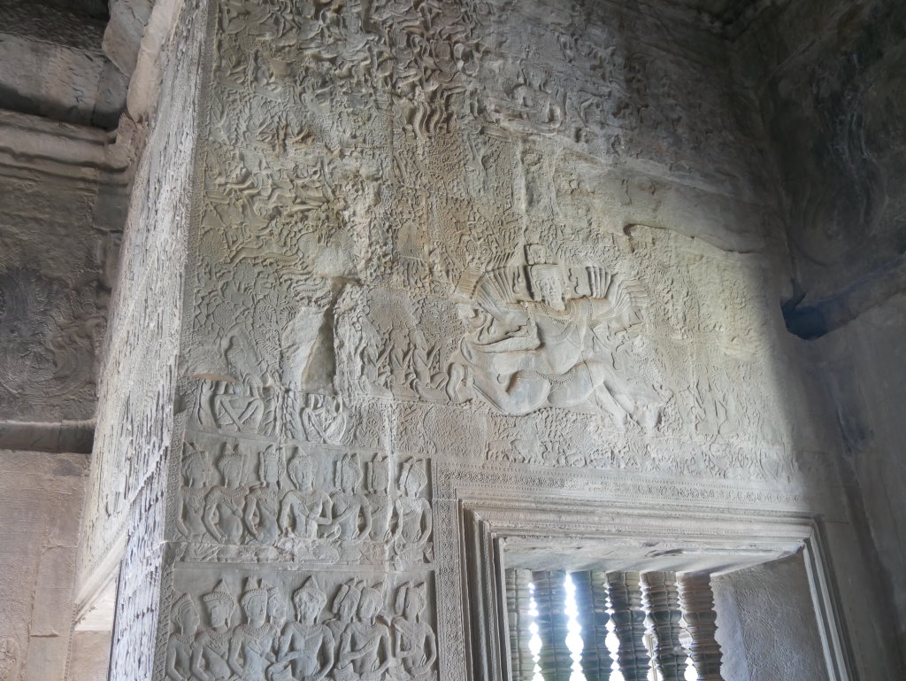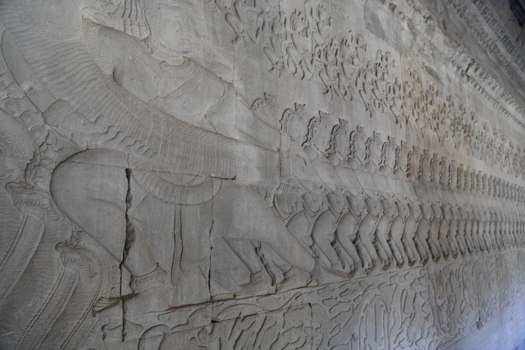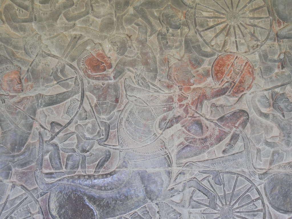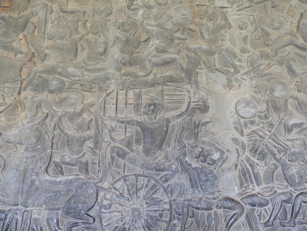 Auch der Bayon Tempel mit den markanten großen Steingesichtern wird mit ausländischer Hilfe vor dem weiteren Verfall bewahrt. Hier ist es eine japanische Stiftung, die sich das zur Aufgabe gemacht hat. Gerade laufen die Arbeiten an einem großen Wandrelief, das in Teilen bereits jetzt wieder in altem Glanz erstrahlt. Die Holztreppen hinauf zu den Türmen mit den Steingesichtern sind seit dem Jahr 2020 für Besucher gesperrt, um dort geplante Restaurierungsarbeiten nicht zu stören.