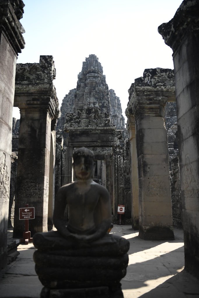 Damit ergibt sich bei meinem nach 2005 vierten und Cosys nach 1995 fünften Besuch die Möglichkeit, die Gebäude „nackt“ zu fotografieren, ohne von selfieverliebt aus Fenster und Türstöcken winkenden Menschen gestört zu werden. Natürlich sind wir auch jetzt nicht wirklich allein. Zu dem von vier Türmen umgebenen höchsten Turm mit dem zentralen Heiligtum schieben sich auch heute Vormittag immer wieder einige Touristen ins Bild. Aber mit ein bisschen Geduld sollten Aufnahmen gelingen, die vor Jahren noch unmöglich schienen.