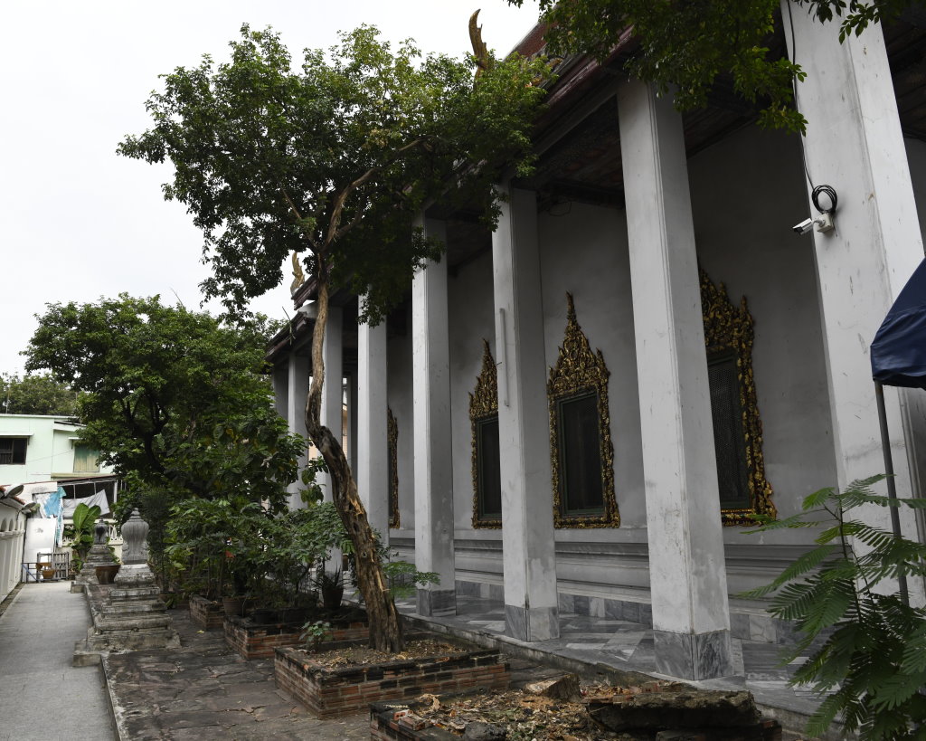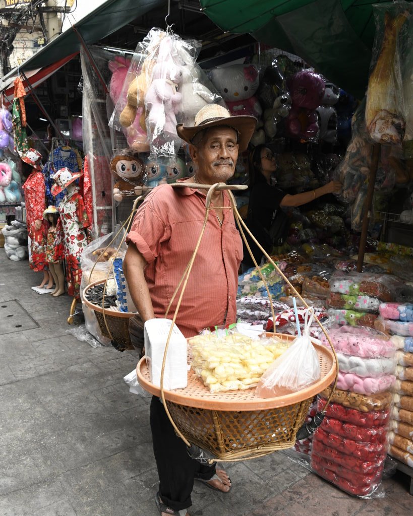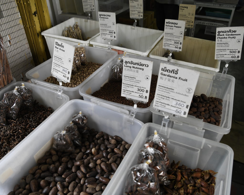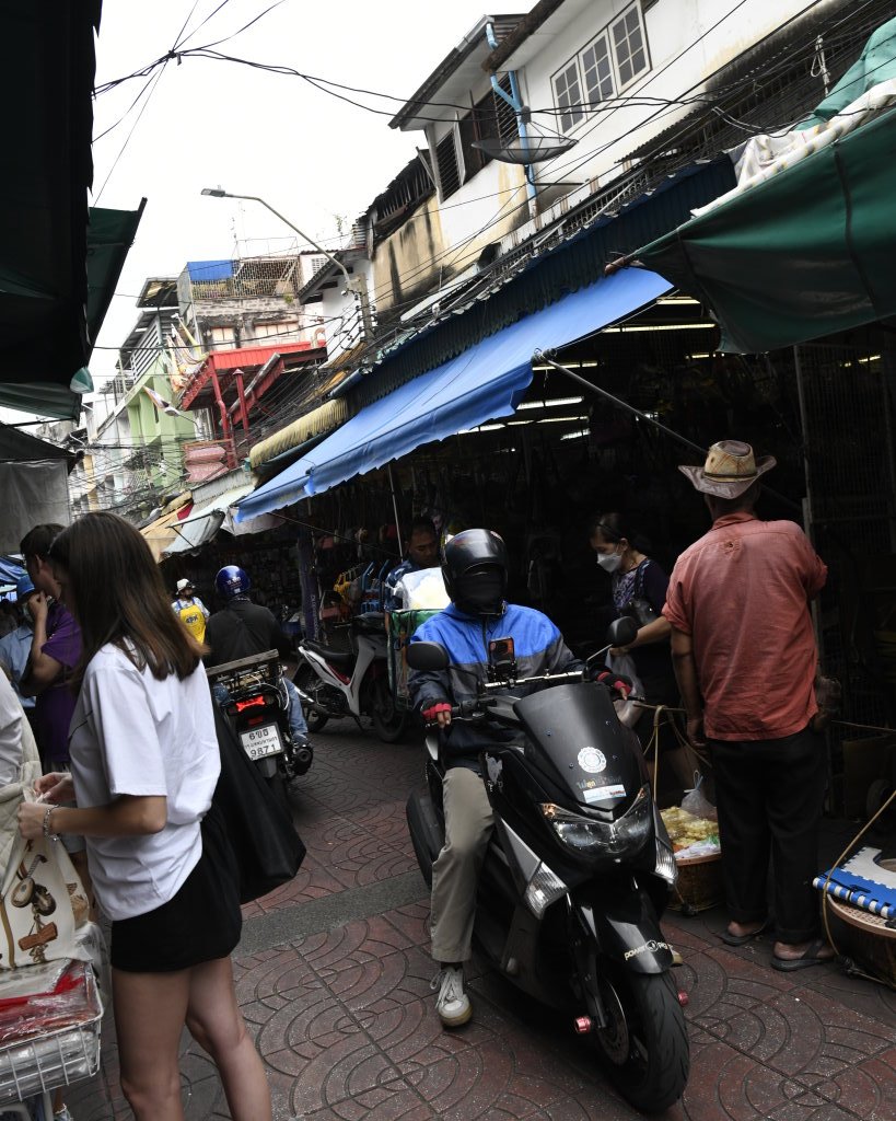 In den Seitengassen der Nachbarschaft kann man sich herrlich verlaufen. Verlässt man die für ein Auto gerade noch ausreichend breite Mangkon Road und wechselt zur parallel verlaufenden Rong Khom, teilt man sich den Weg mit geschäftigen Kulis, die mit ihren Sackkarren und Mopeds Kartons und Säcke zu den anliegenden Gebäuden liefern. Einzel- und Großhändler haben in diesem Viertel ihr Quartier. Der eine hat sich auf angenehm riechende Gewürze spezialisiert, die Gerüche des Trockenfischhändlers nebenan sind allerdings weniger nach dem Geschmack europäischer Nasen.