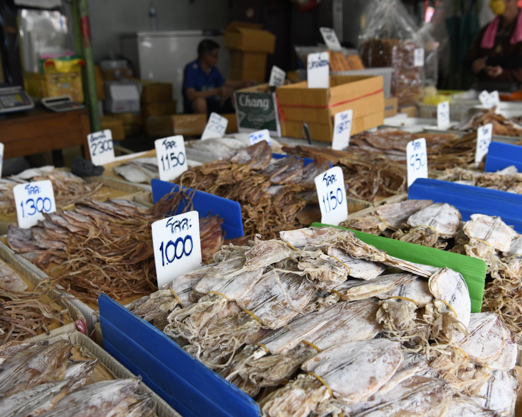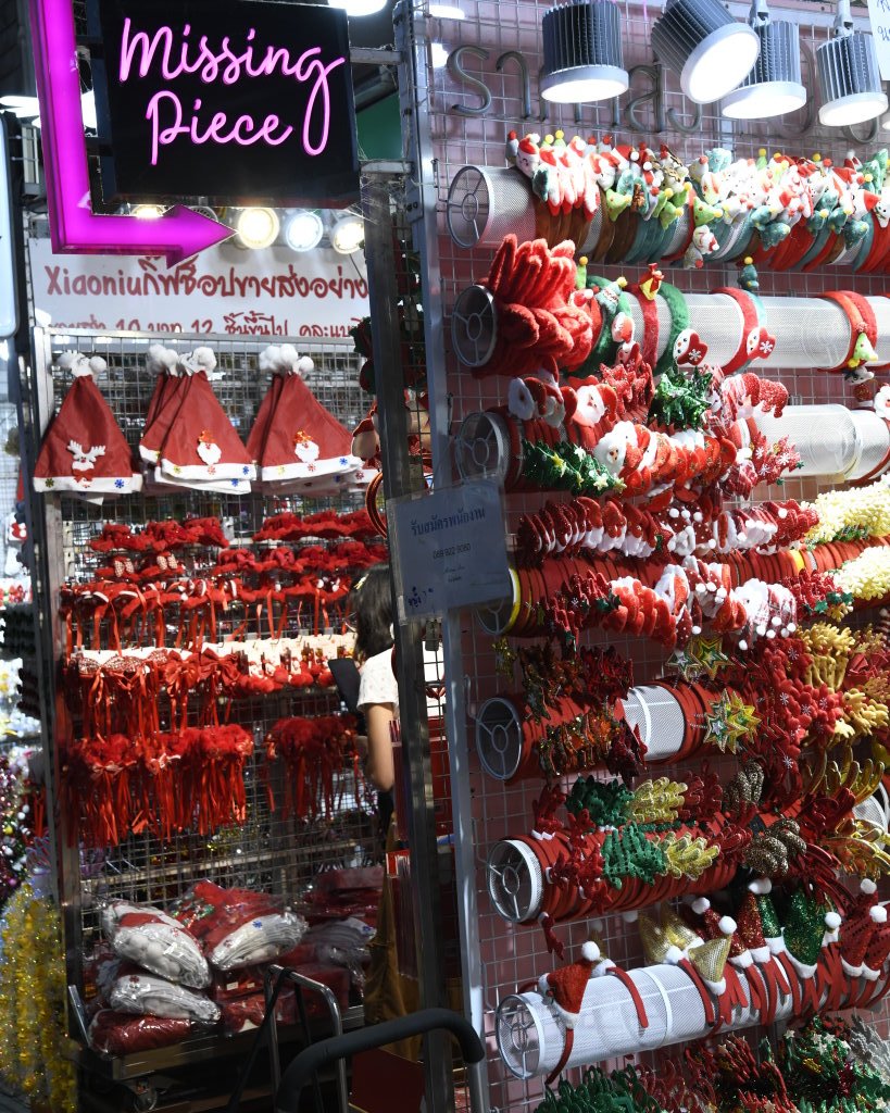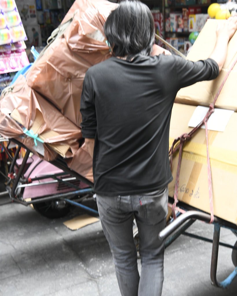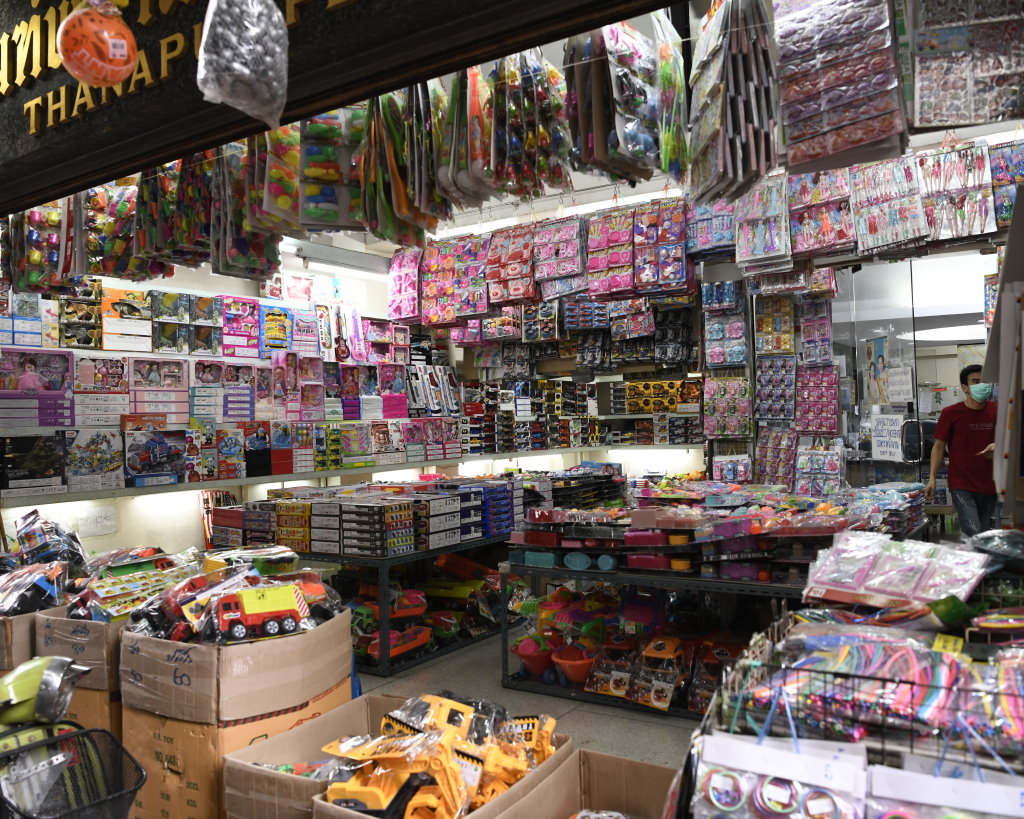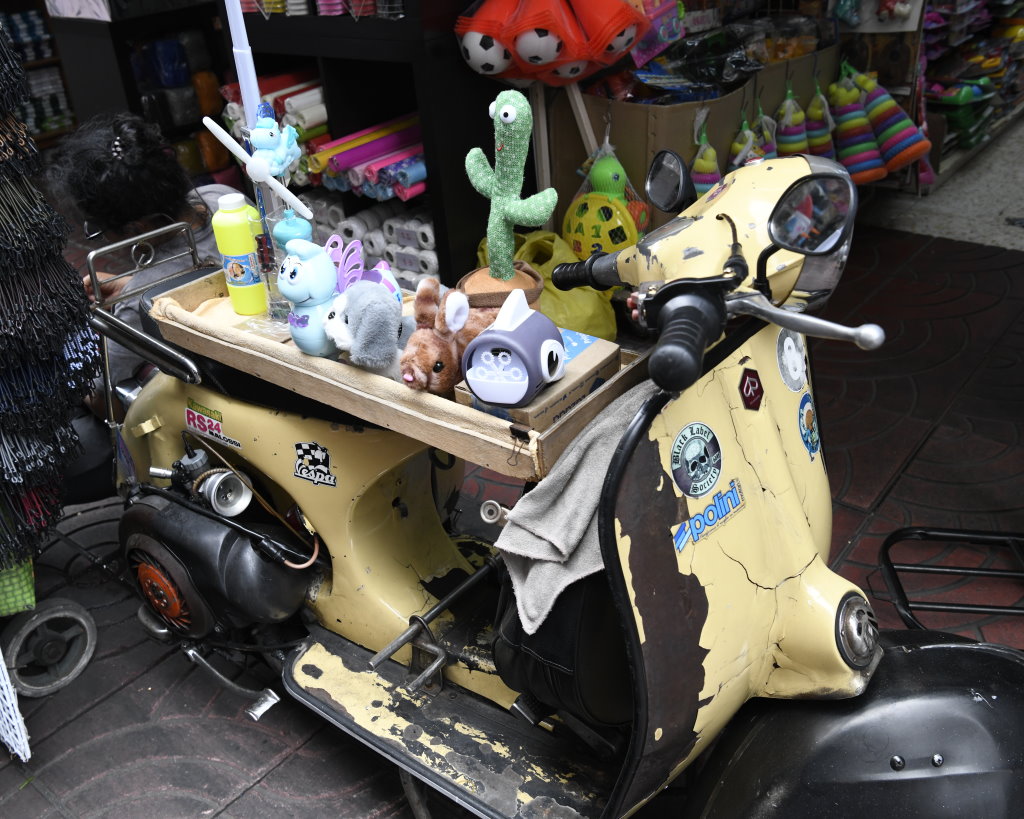 In den Seitengassen der Nachbarschaft kann man sich herrlich verlaufen. Verlässt man die für ein Auto gerade noch ausreichend breite Mangkon Road und wechselt zur parallel verlaufenden Rong Khom, teilt man sich den Weg mit geschäftigen Kulis, die mit ihren Sackkarren und Mopeds Kartons und Säcke zu den anliegenden Gebäuden liefern. Einzel- und Großhändler haben in diesem Viertel ihr Quartier. Der eine hat sich auf angenehm riechende Gewürze spezialisiert, die Gerüche des Trockenfischhändlers nebenan sind allerdings weniger nach dem Geschmack europäischer Nasen.
