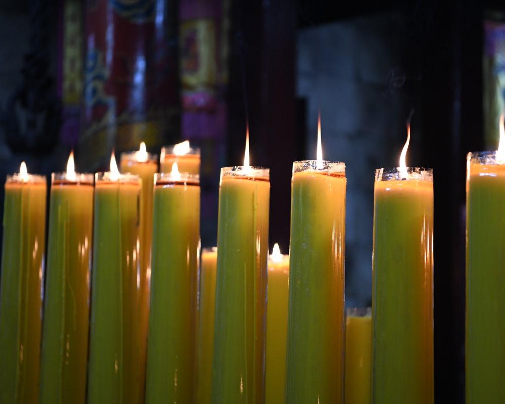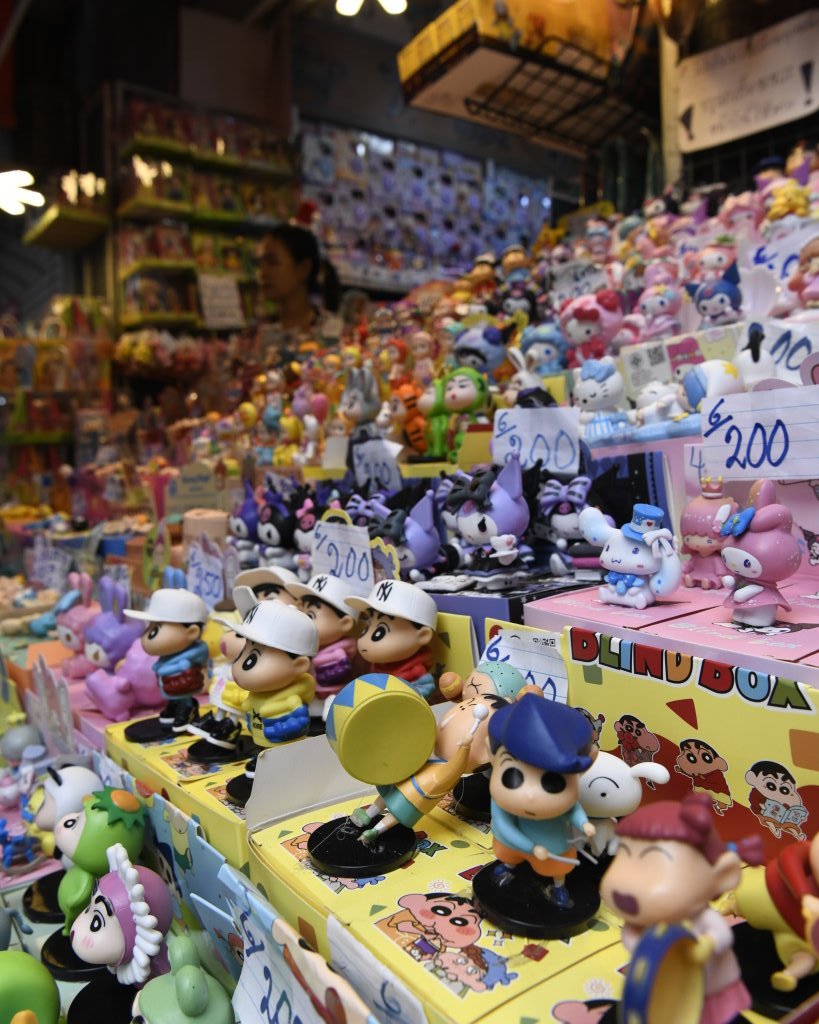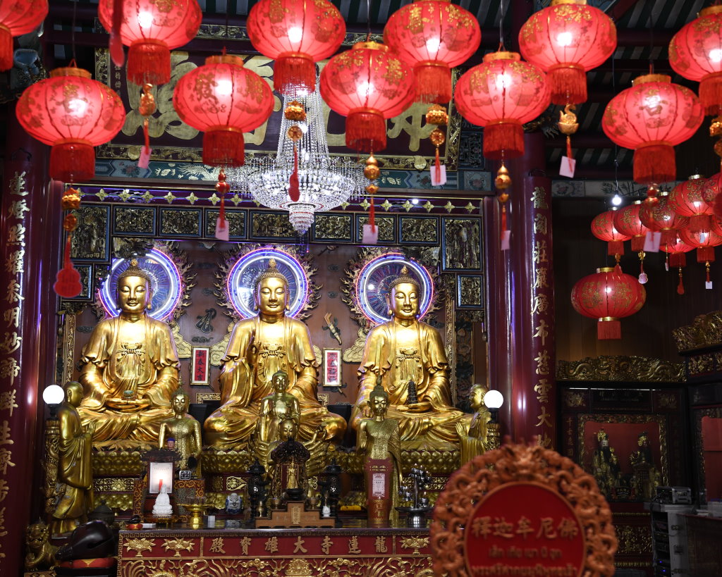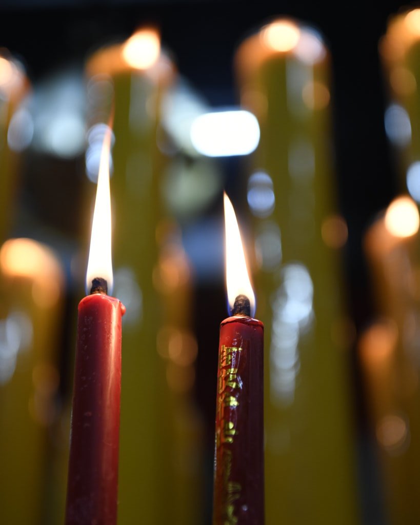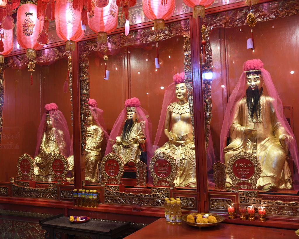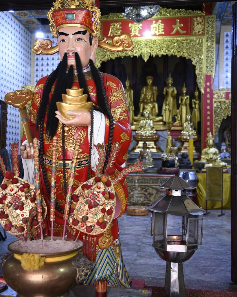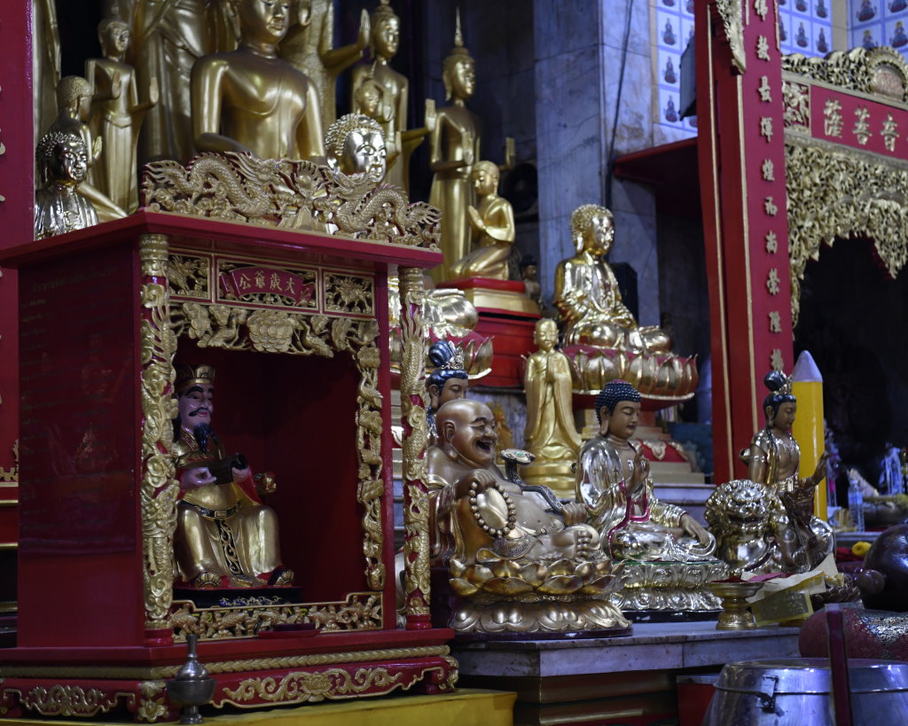 Inmitten der Läden und Lager versteckt sind ein paar chinesisch buddhistische Tempel und Schreine. Mit den Bitten um gute Geschäfte stiften ein paar Händler schnell ein paar Kerzen und brennen Räucherstäbchen ab.