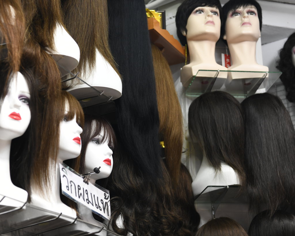 Und Plastikspielzeug in allen Formen und Farben, dass es einem manchmal fast schwindelig wird, wenn man den Blick durch die schier endlosen Verkaufsgänge mancher Händler schweifen lässt. Hier gibt es alles en gros und en Detail, in Säcken oder als Einzelstücke. Die Haarteile bei den Perückenmachern mögen teils echt sein, die quietschbunt gefärbten wohl weniger.