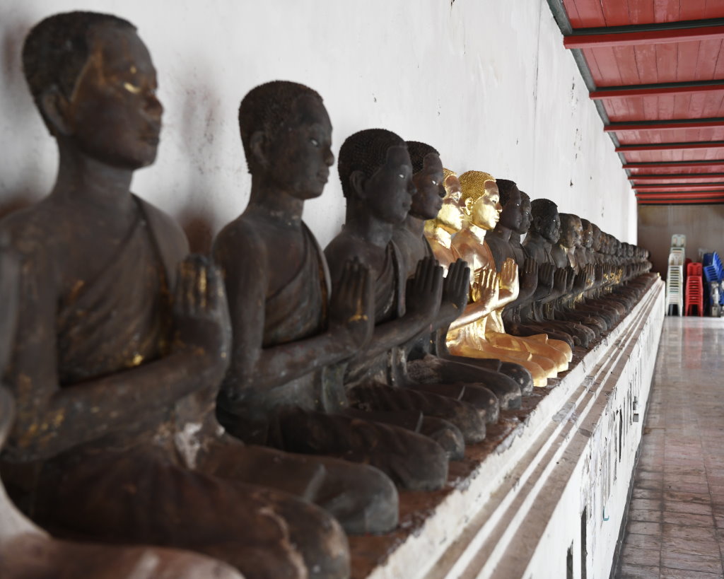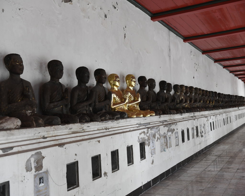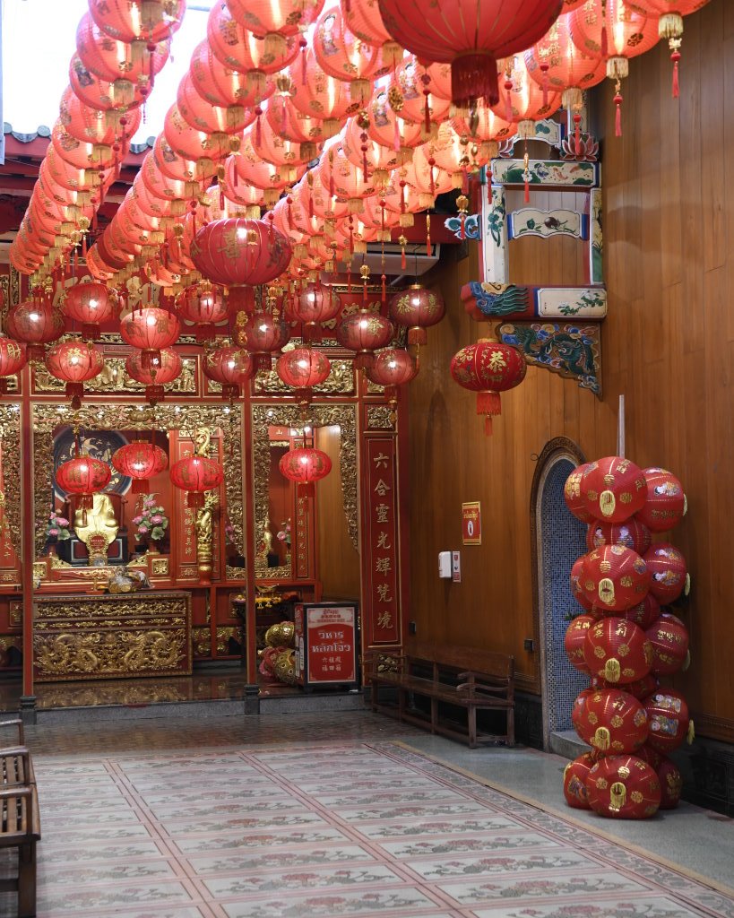 Manches Detail entdecke ich erst später beim Vergrößern der Fotos. Inmitten der roten Lampions eines Raums des chinesisch-buddhistischen Tempels Wat Mangkon Kamalawat baumelt ein kleiner goldener Hase von der Decke. Noch einmal schlängle ich mich durch das Gewusel der Seitengassen zurück zum Hostel am unteren Ende der Mangkon Road.