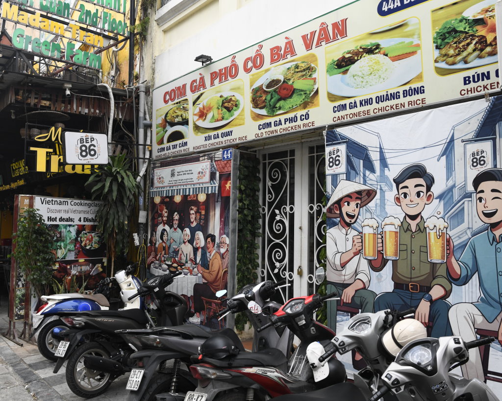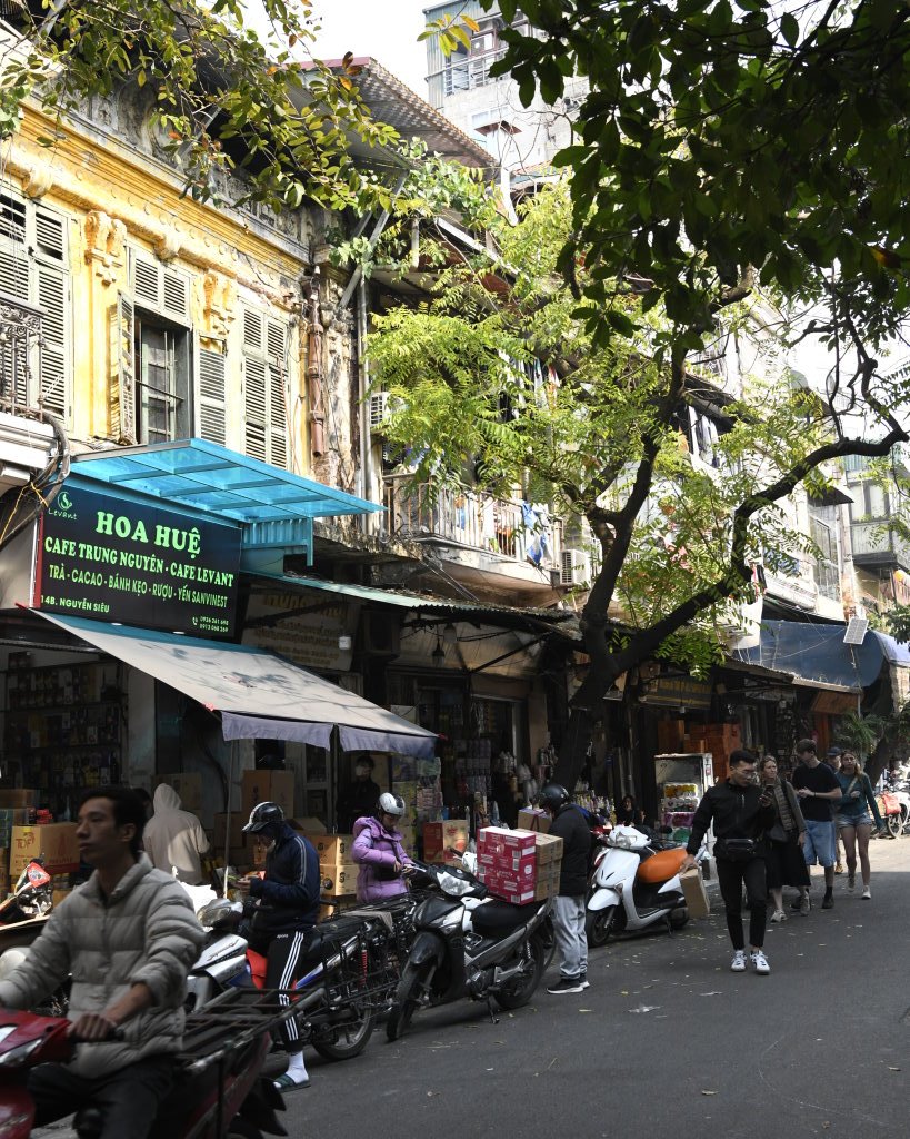 Zugebenen, ein gemütlicher Spaziergang ist das nicht, wenn man zu Fuß durch die Straßen der Altstadt von Hanoi streift. Im Gegensatz zu den Gassen von Bangkoks Chinatown sind sie breiter, aber nicht weniger betriebsam. Mopeds und SUVs kämpfen im dichten Verkehr um den Platz, den wir Fußgänger ebenfalls an den Rändern beanspruchen, wenn der Bürgersteig mal wieder von Mopeds zugeparkt ist.