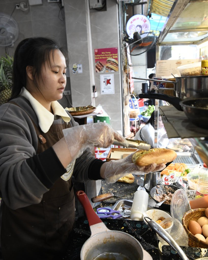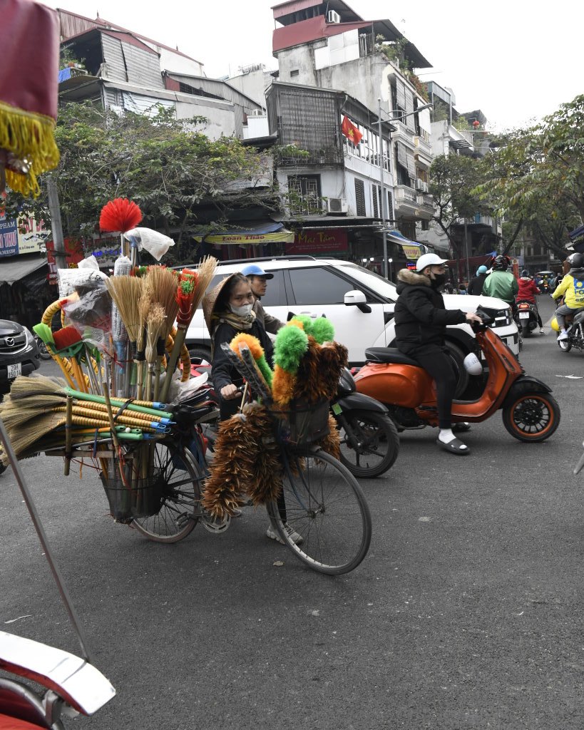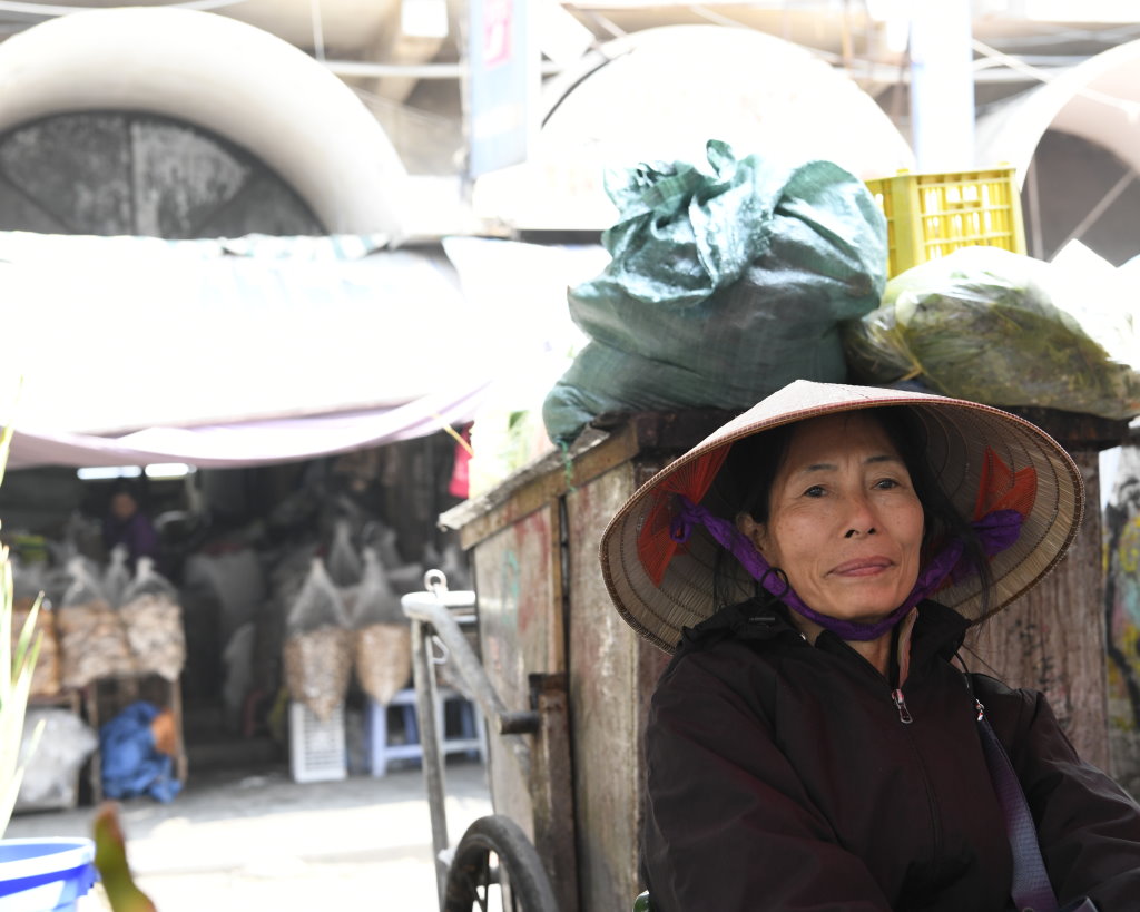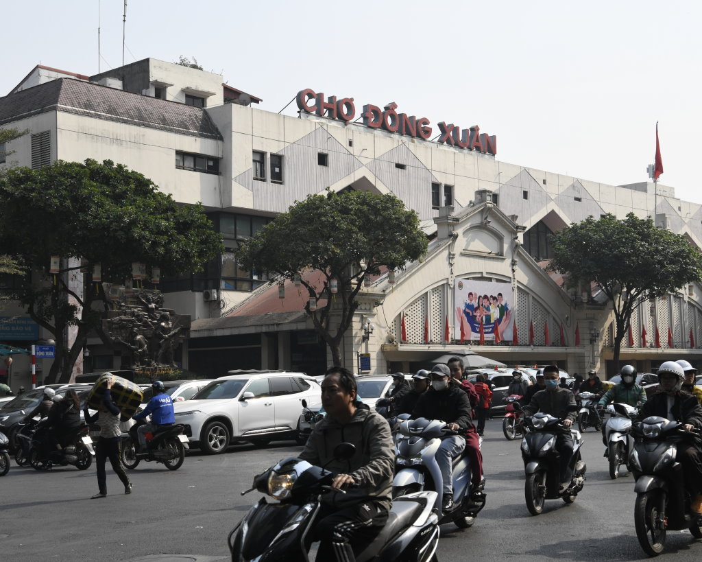Auf dem Weg zum Đồng-Xuân-Markt finden wir schon bald eine Möglichkeit für ein kleines Frühstück. Eine Verkäuferin am Straßenrand offeriert die seit der französischen Kolonialzeit so beliebten Baguettes wahlweise mit „La Vach kiri“ oder frisch zubereitetem Omelett mit Pilzen. Der Name des berühmten Schmierkäses ist übrigens ein Malapropismus von ,Walküre‘. Erfunden hat den Namen ein französischer Illustrator im ersten Weltkrieg, der die Verwendung von Wagner in der deutschen Kriegspropaganda spöttisch aufs Korn nahm, indem er die ikonische lachende Kuh auf LKWs malte und ‚Wachkyrie‘ nannte…