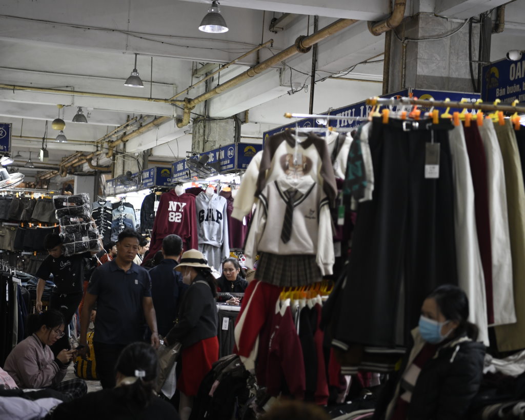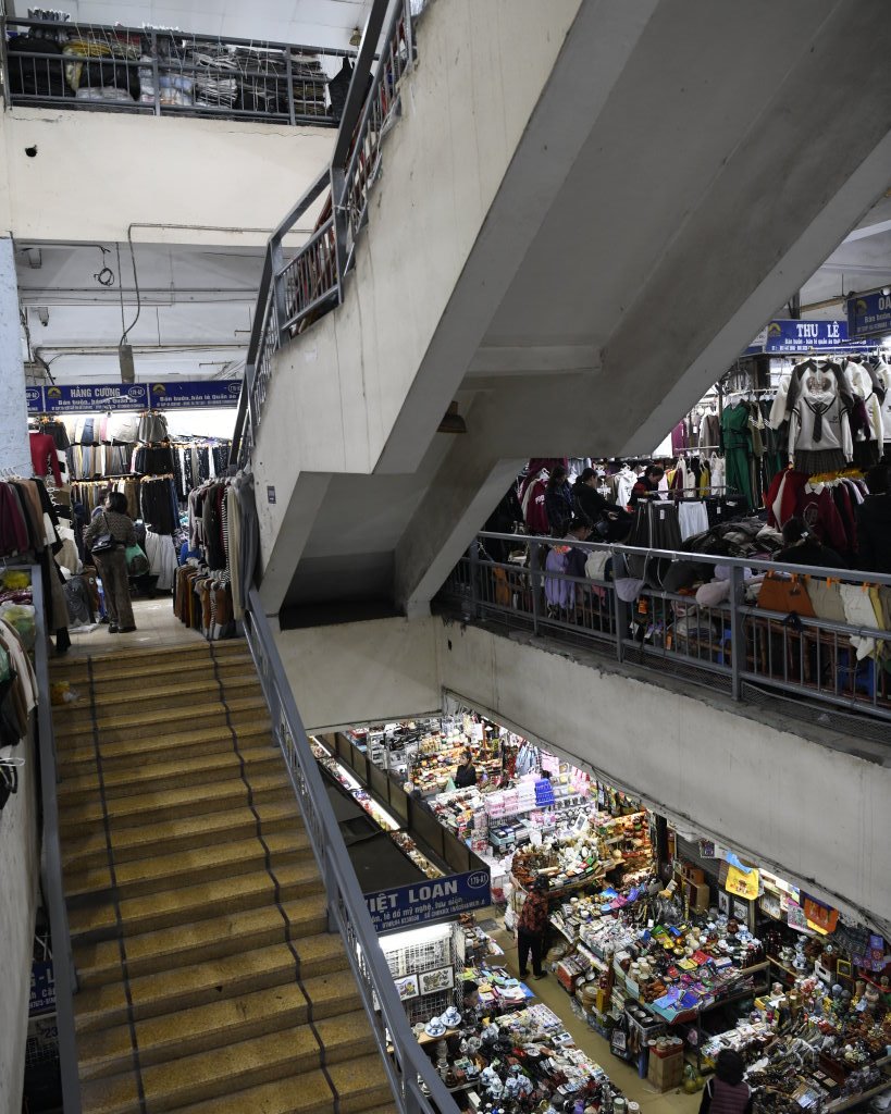 In der mehrstöckigen größten überdachten Markthalle Hanois suchen wir bei den Großhändlern nach einem zusätzlichen Sweet-Shirt. Nachts ist es hier deutlich kühler und das Umschalten der Klimaanlage von Kühlen auf Heizen wollte letzte Nacht nicht so recht gelingen.