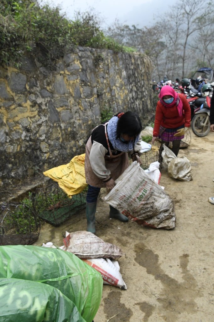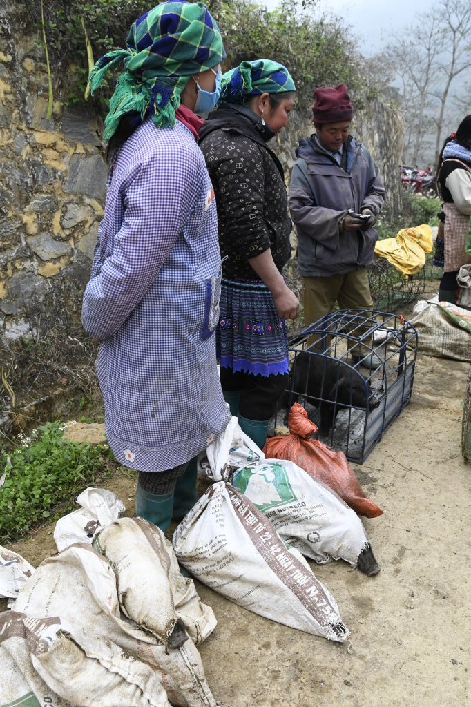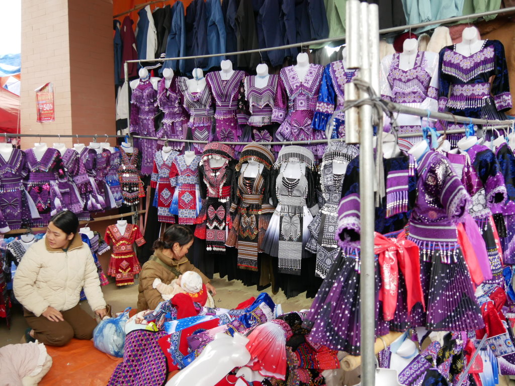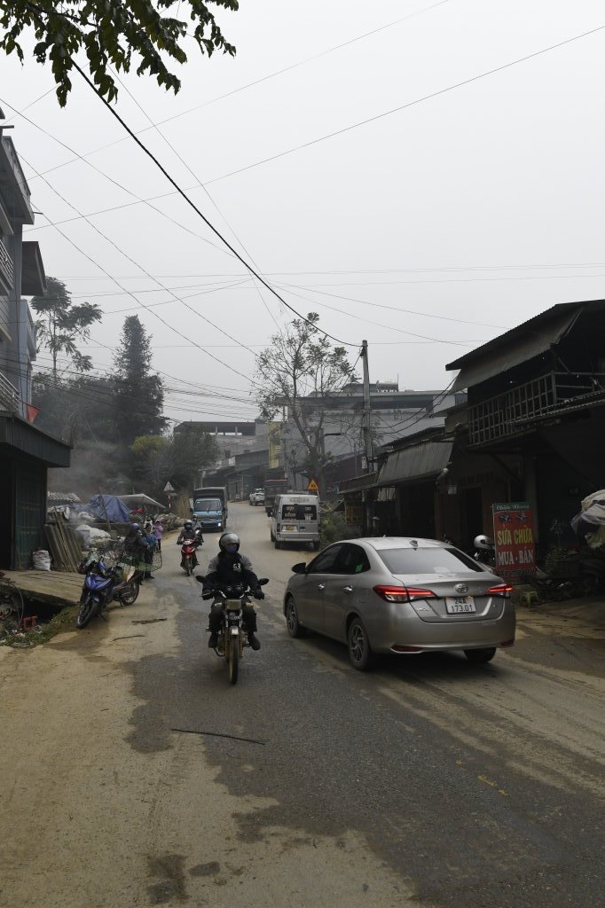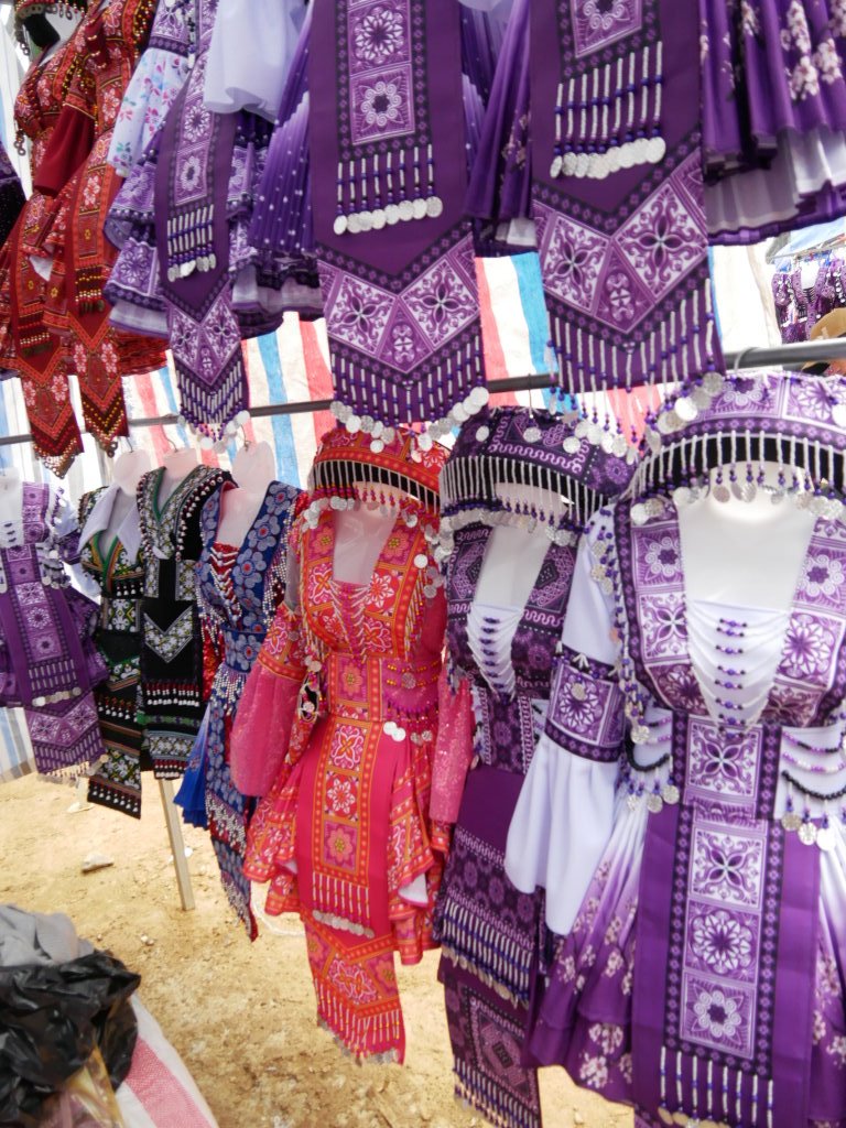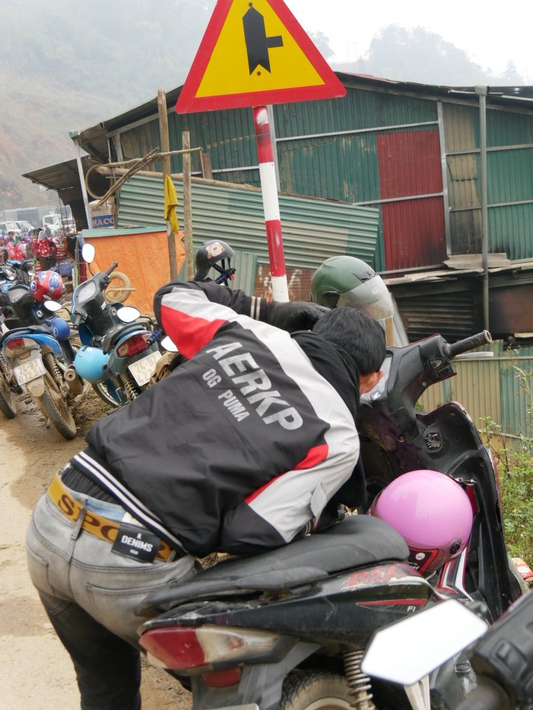Um halb Acht klingelt der Wecker. Schnell geduscht und angezogen und runter in die Lobby, unser Fahrer wartet schon. Wieder geht es über eine Schotterpiste Richtung Norden. Nach einer halben Stunde sind wir am Ziel. Dong Tai verspricht uns, uns gegen 10 Uhr wieder an derselben Stelle einzusammeln. Bis direkt zum Samstagsmarkt von Si Ma Cay darf er nicht vorfahren.