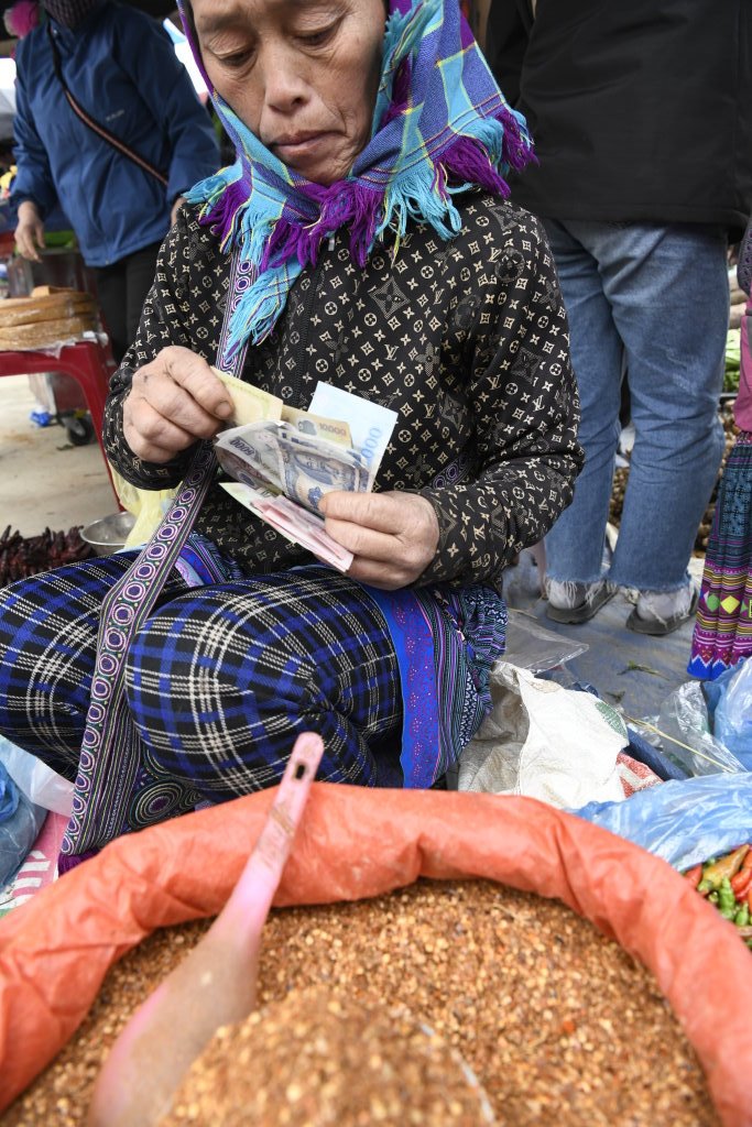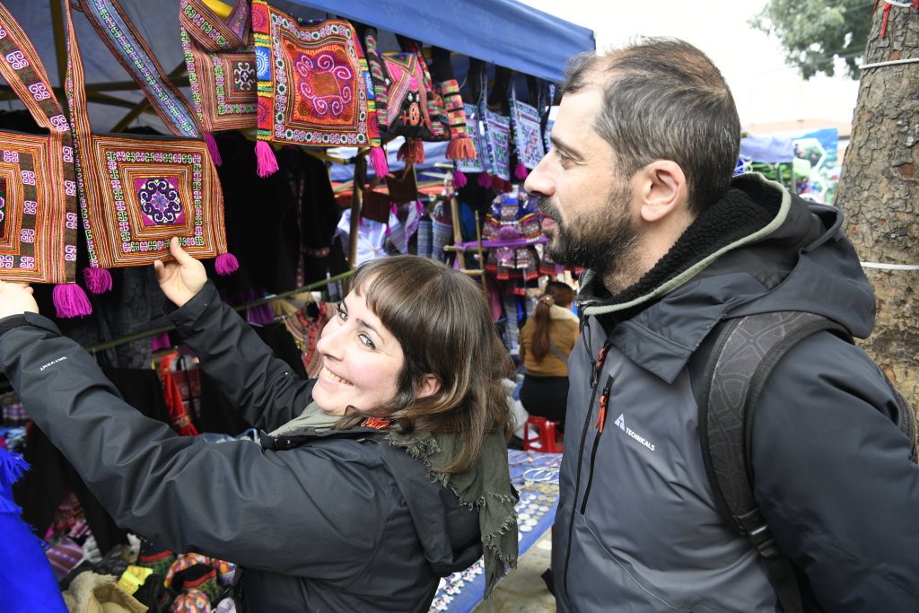 Und wie Immer versuchen uns Händlerinnen, ihre handbestickten Taschen zu verkaufen. Ist es die Farbkombination? Oder die aufdringliche H Mong-Frau, die uns an den Hacken hängt? Jedenfalls hat sie Erfolg und wir kaufen eine. Vom Erfolg beflügelt, will sie uns gleich auch noch eine zweite und am liebsten noch eine dritte verkaufen. Eins ist sicher: Geschäftstüchtig sind sie hier im Norden auf jeden Fall…