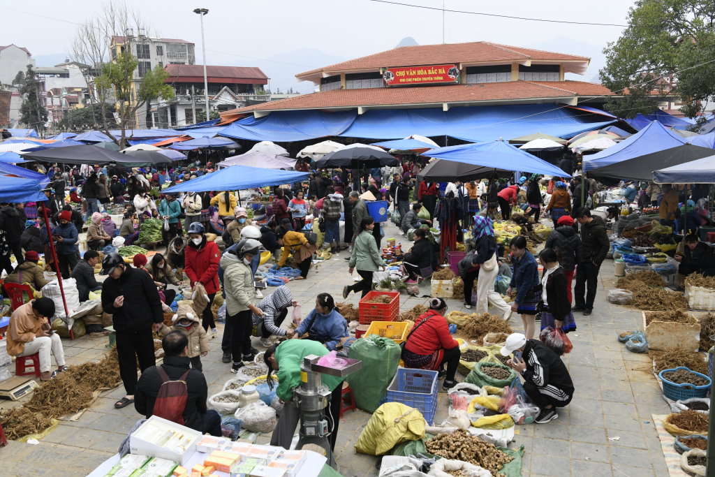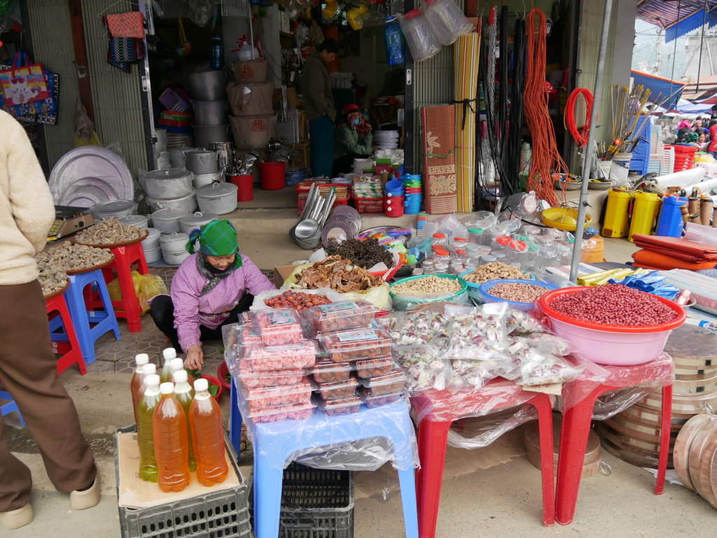 Im Vergleich zu gestern ist der heutige Sonntagsmarkt keine Offenbarung. Waren es am Samstag in Si Ma Cay vor allem Einheimische, die dort Einkaufen, tummeln sich in Bac Hà vor allem koreanische Touristen und Tagestourler aus Sa Pa zwischen den Ständen.