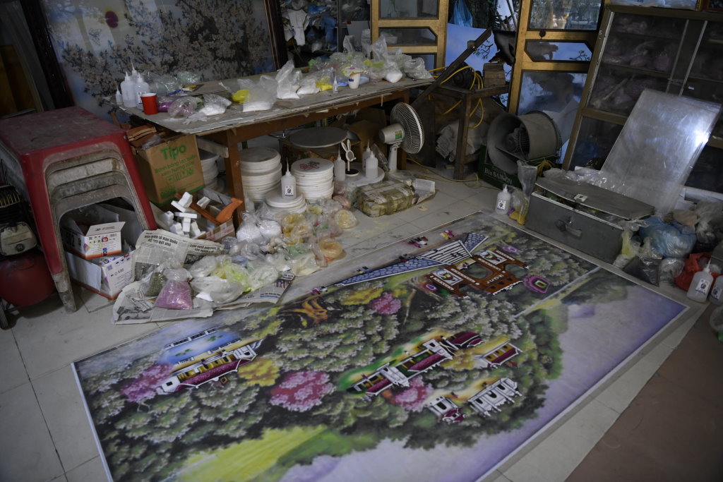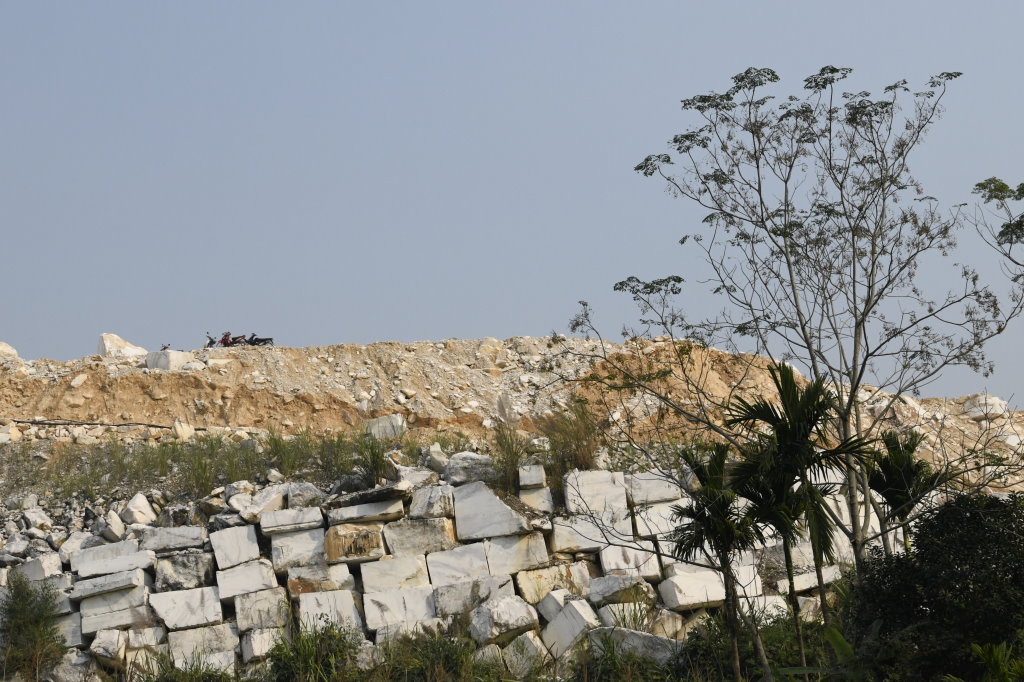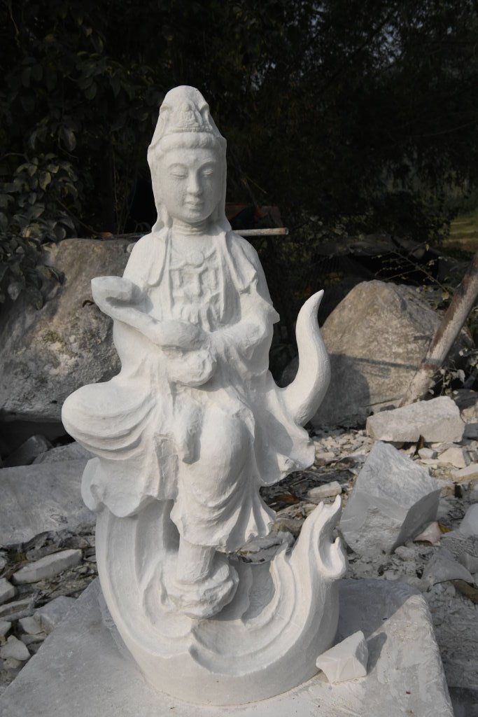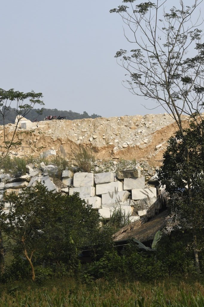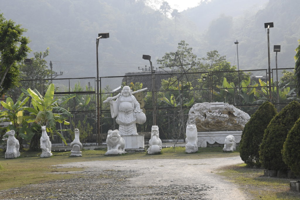 Unterwegs passieren wir den Marmorsteinbruch von Yên Luc und halten kurz bei einem der zahlreichen Steinmetze entlang der Strecke. Die Arbeiter machen gerade Pause, aber ihr Chef zeigt mir stolz ihren Arbeitsplatz und die fast fertigen Skulpturen: Happy Buddhas, Lady Buddhas und diverse Fabeltiere.
