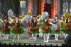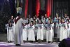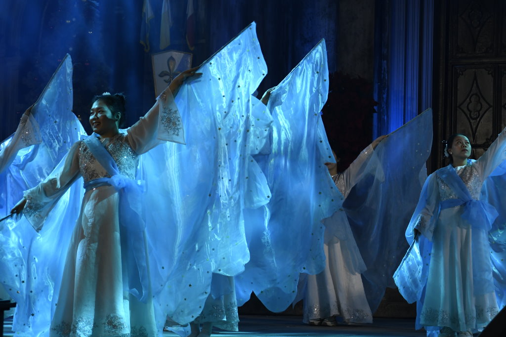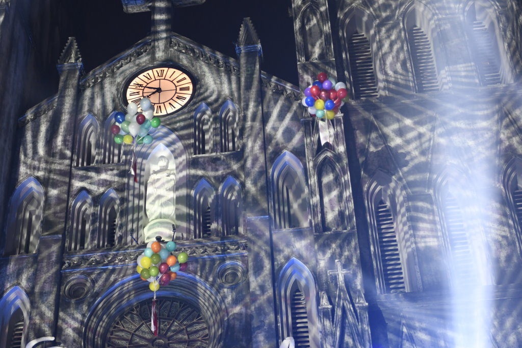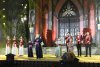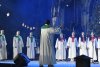 Kurzes Innehalten, dann füllt sich die Bühne vor dem Kirchenportal erneut. Ein Kinderchor tritt auf und singt von Frieden und Hoffnung. Die Lichtregie färbt das Portal erst blau, dann rot, bis es schließlich in hellem, freundlichem Licht erstrahlt. Noch einmal folgt eine Tanzdarbietung der großflächig beflügelten Tänzerinnen von gestern.