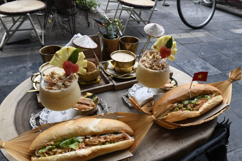 Soviel Auswahl war selten in den letzten Tagen bei der Alternative zum asiatisch-typischen Suppen-Frühstück. Die Variationen der Füllungen fürs Baguette in dem Café ums Eck sind überwältigend, dazu Kaffee und frisch gepresste Säfte. Den beiden jungen Österreichern am Nebentisch hat die europäisch geprägte Variante ebenfalls gut geschmeckt.