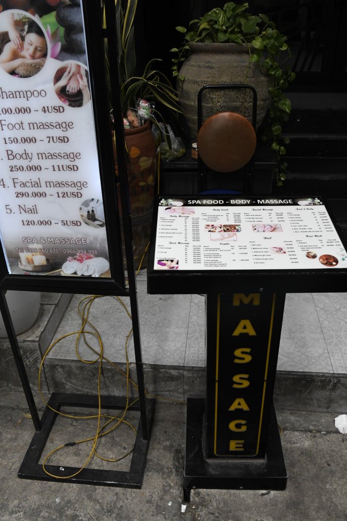 Auch unsere Muskulatur verträgt es, etwas aufpoliert zu werden. Gleich neben unserem Quartier bietet sich die Gelegenheit, für 250.000 Dong (9,45 Euro) eine Stunde eine klassische vietnamesische Massage zu buchen.