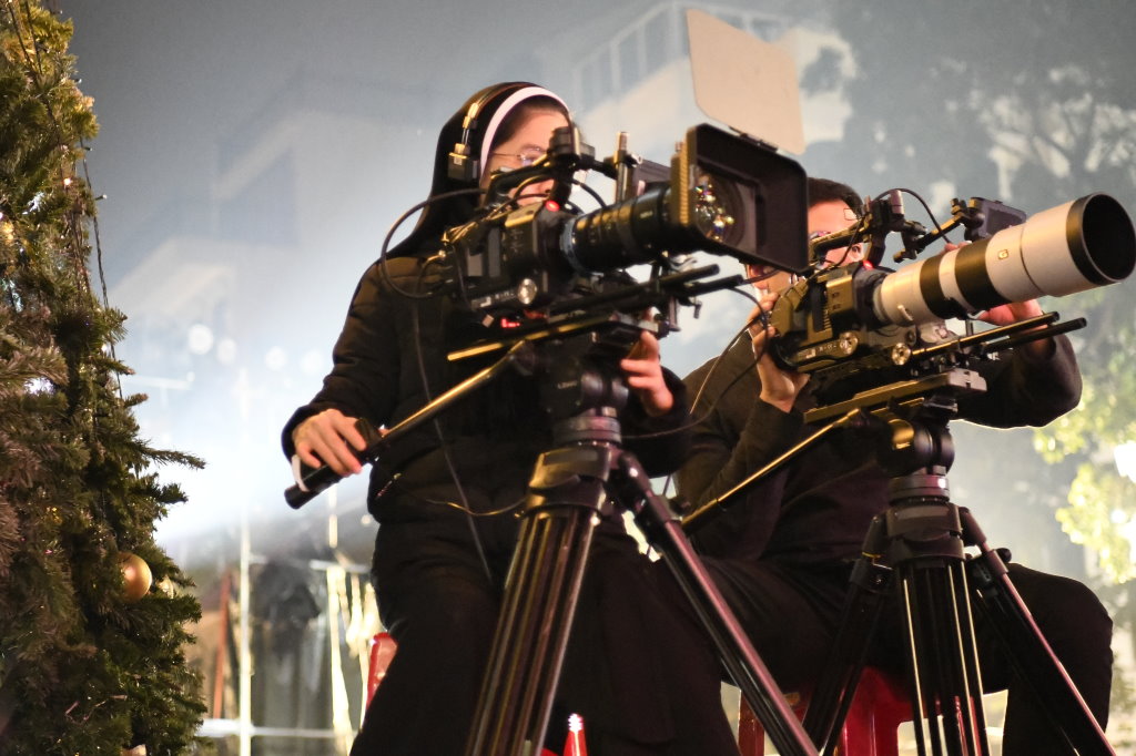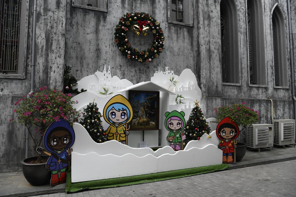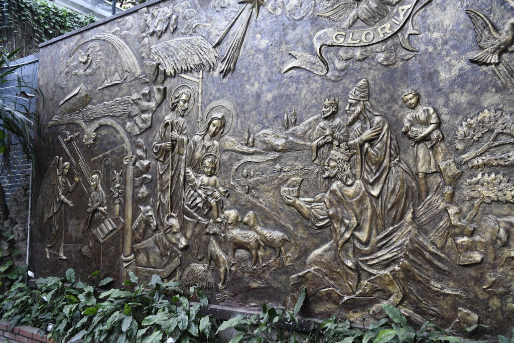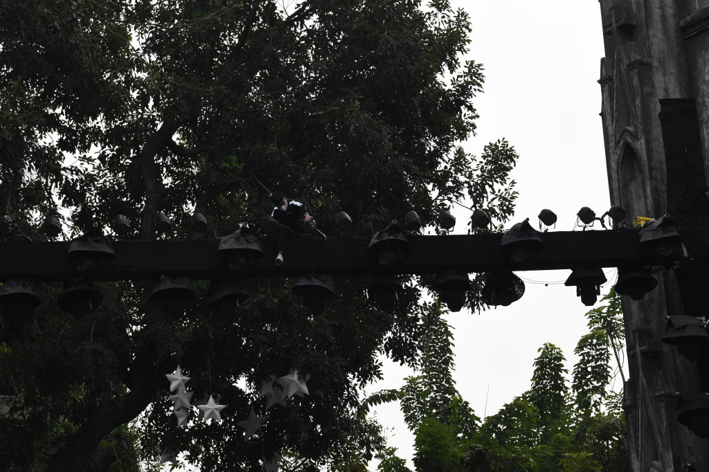 Gegen halb acht machen wir uns erneut auf dem Weg zur Sankt Josef Kathedrale und hoffen auf gute Sicht auf die für den Abend abgekündigte Show. Der Platz ist bereits voller Menschen. Da scheint kein Durchkommen. Ob es die pure Imagination der Möglichkeit ist, schwer zu sagen, An der Seite tut sich plötzlich ein Durchgang auf. Am Tor steht eine sehr offiziell aussehende Person. Wir schauen uns in die Augen, er winkt, deutet mir, deutet uns, ihm zu folgen.