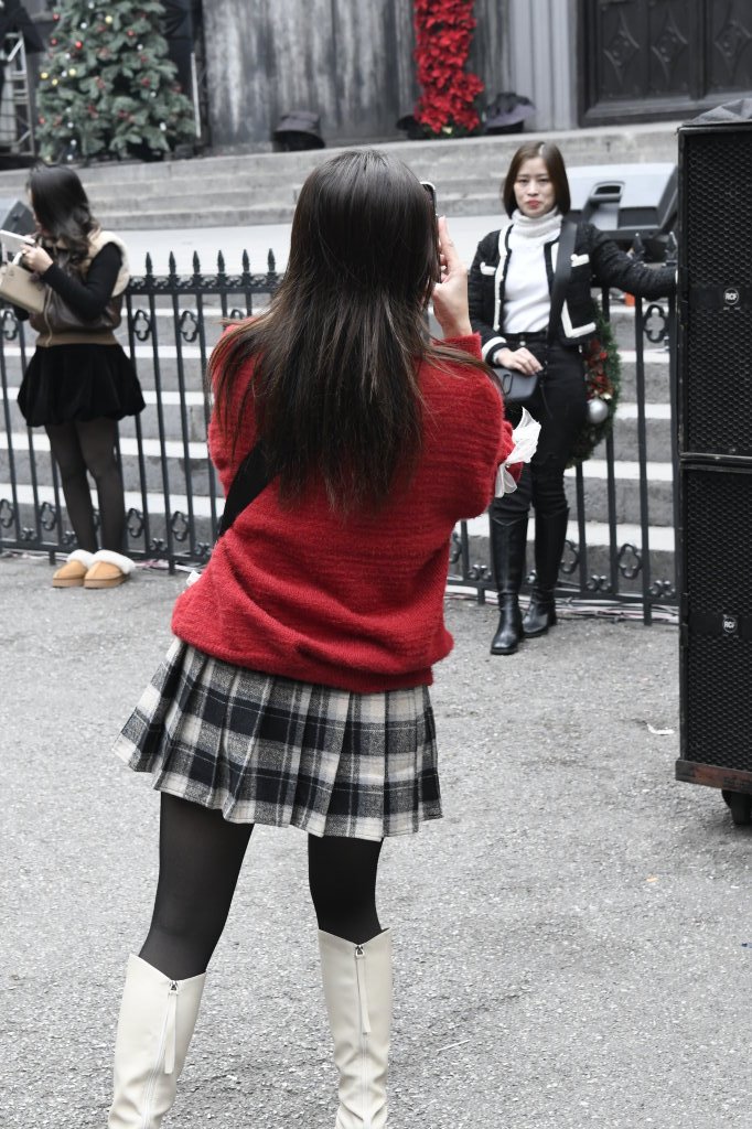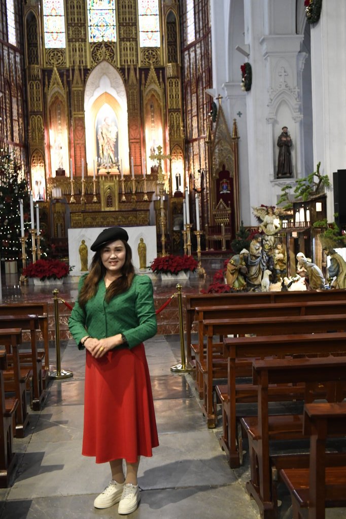 Im Kirchenschiff posen, trotz Verbots, einige Einheimische vor dem Altar. Dabei hat man außerhalb extra einen speziellen weihnachtlichen Selfie-Spot für die selbstverliebten Fotowütigen aufgestellt.