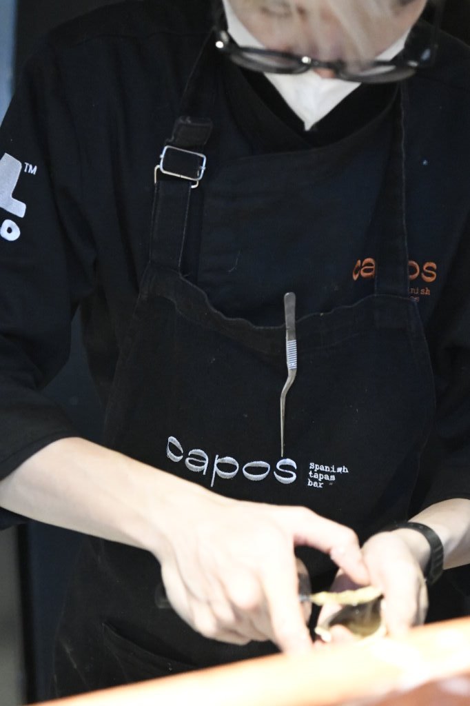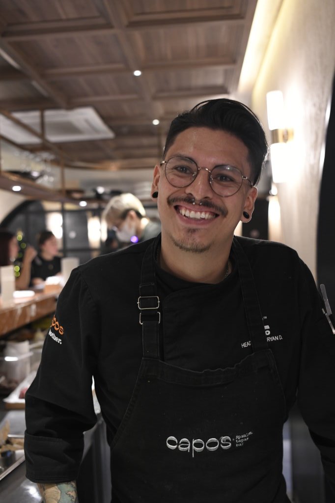 Es ist mittlerweile nach Zehn, die Küche, um die die Gäste an einer langen Bar herum platziert sind, ist für heute mit ihrer Arbeit am Ende. Zeit genug für Restaurantchef und Koch Bryan D. Ceron Serrano, sich für einen kurzen Plausch zu uns zu setzen. Der Ecuadorianer erzählt uns von seinen Erfahrungen in der lateinamerikanischen und spanischen Küche. Gelernt hat der leidenschaftliche Koch sein Handwerk freilich in Spanien, wo er auch seine Frau Rocio kennen- und lieben lernte.