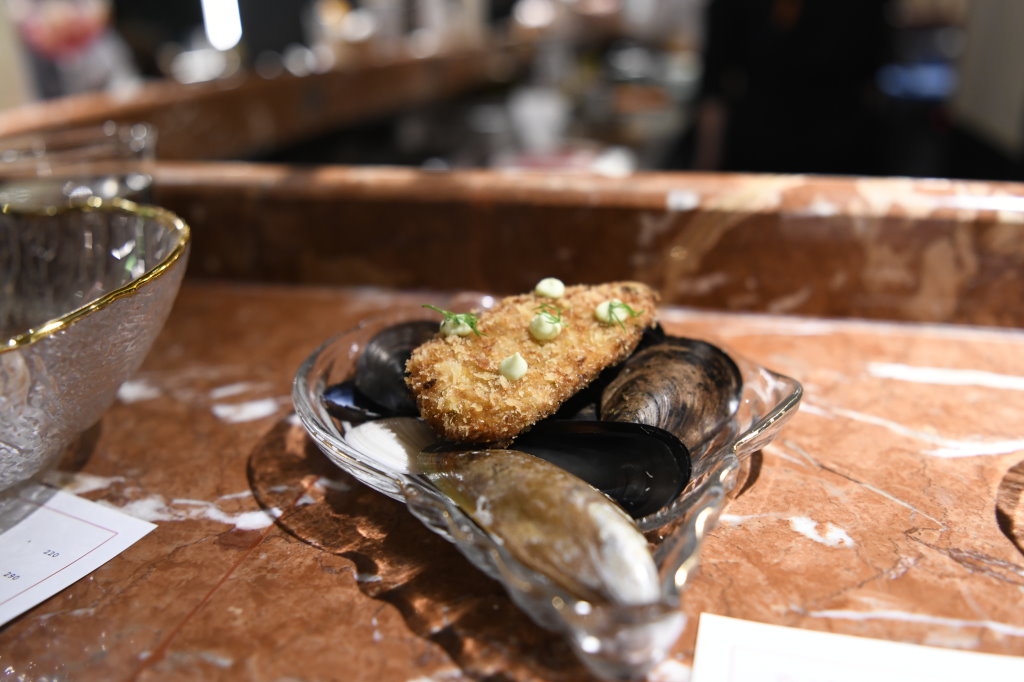 Um es kurz zu machen. Auch dieses Mal hatten wir wieder den richtigen Riecher. Wir hatten es ja am Nachmittag schon ein wenig ausprobiert. Nach Tim’s Sapa kitchen vor ein paar Tagen ist es unser zweiter Ausflug in die gehobene Gastronomie auf dieser Reise. Für mich war es auch eine Premiere. Das mehrgängige weihnachtliche Degustationsmenü hat auch eine frische Auster auf der Karte. Die wird raffiniert mit Weißwein, Basilikum und Limette serviert.