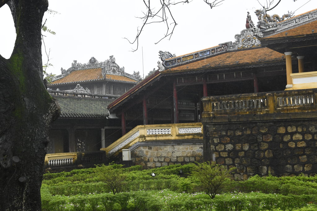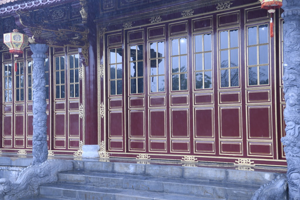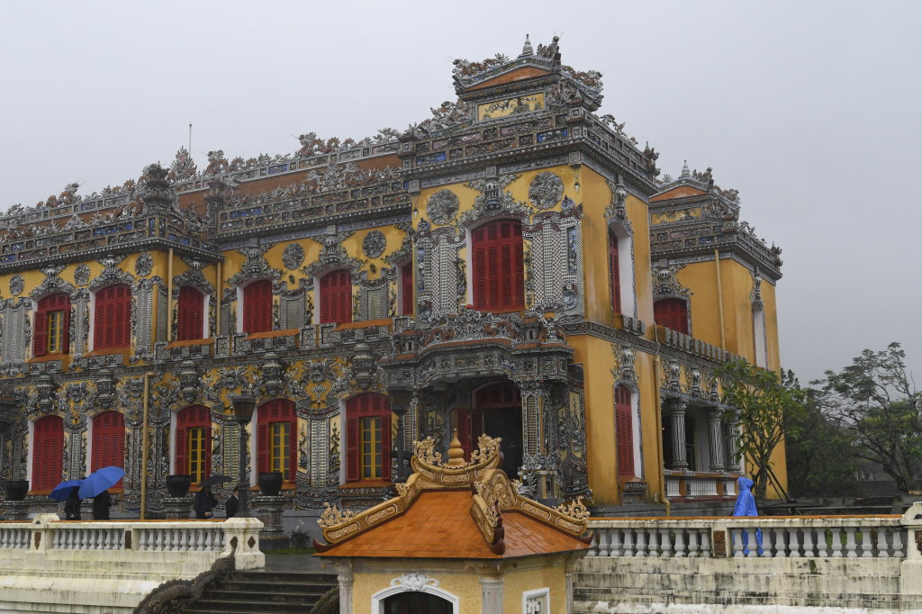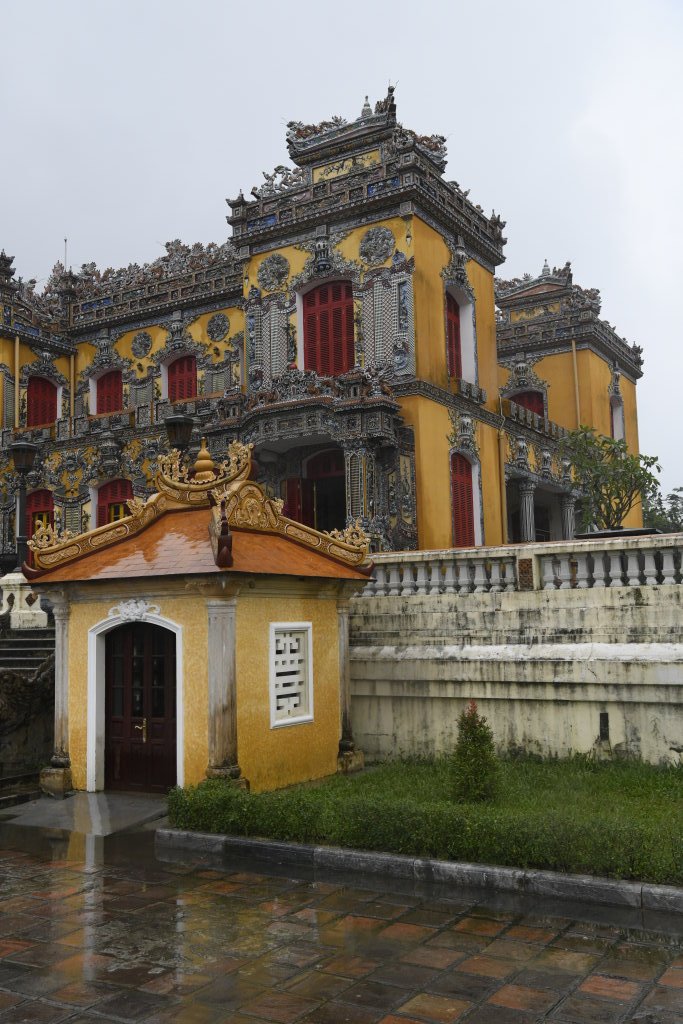 Der Kien Trung Palast wirkt mit seiner gelben Fassade und den rot lackierten Fensterläden bereits aus der Ferne wie eine asiatische Kopie der bayrischen Königschlösser.
