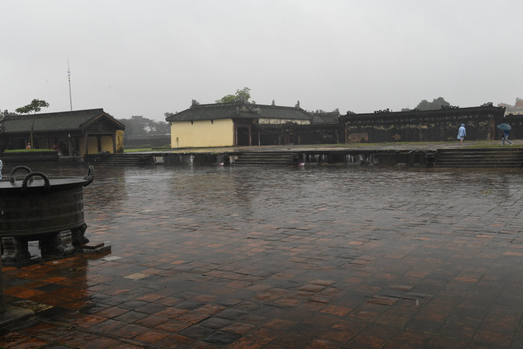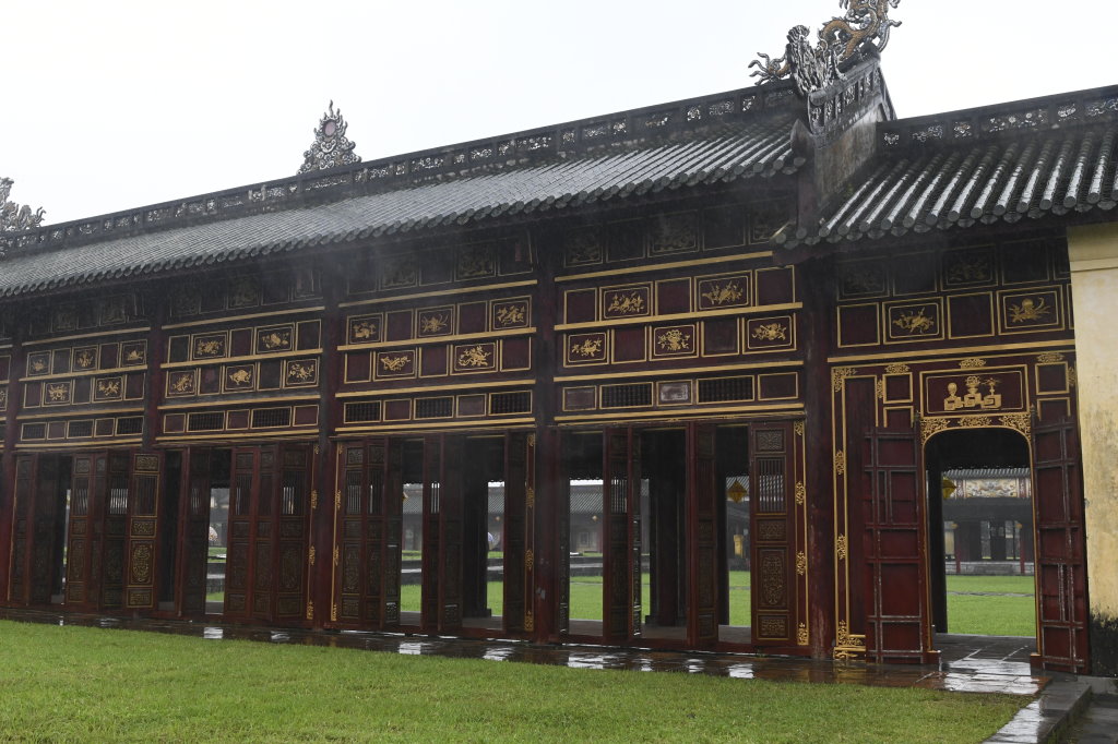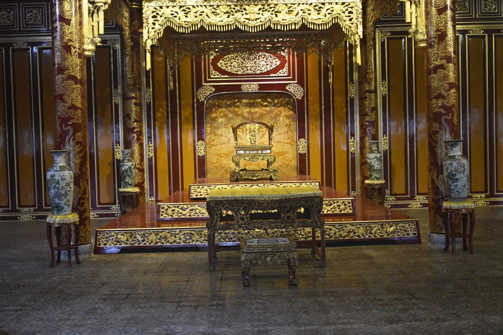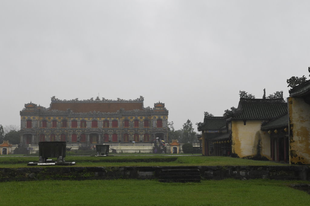 Punkt Zwölf betreten wir durchs Mittagstor die Zitadelle von Huế mit der Verbotenen Stadt und dem Kaiserpalast. Seit unserem letzten Besuch hat sich viel verändert. Die alte Kaiserstadt war im Februar 1968 während der Tet-Offensive von den Bomben der US-Streitkräfte bis auf drei Tempel fast vollständig ausradiert worden. Von den Zerstörungen ist heute weniger zu sehen als noch vor 12 Jahren.