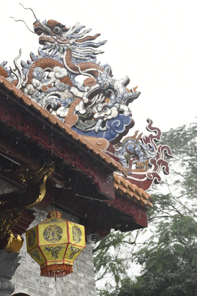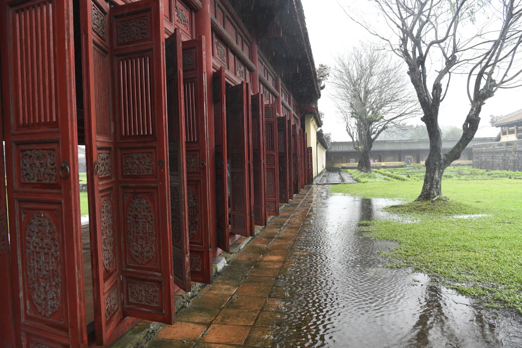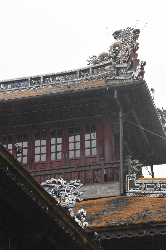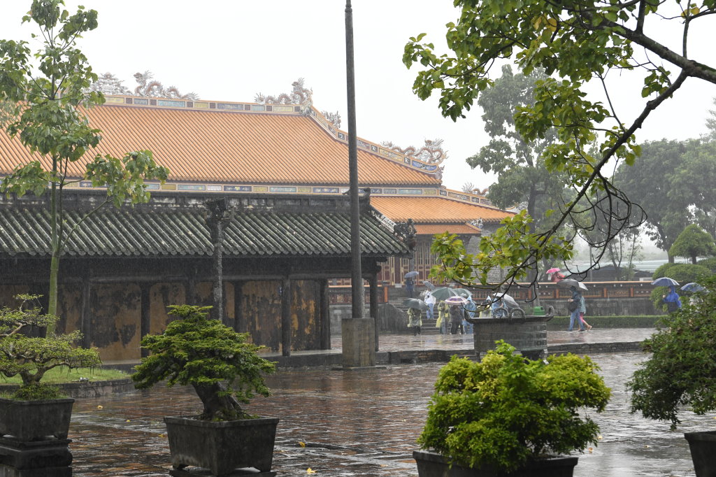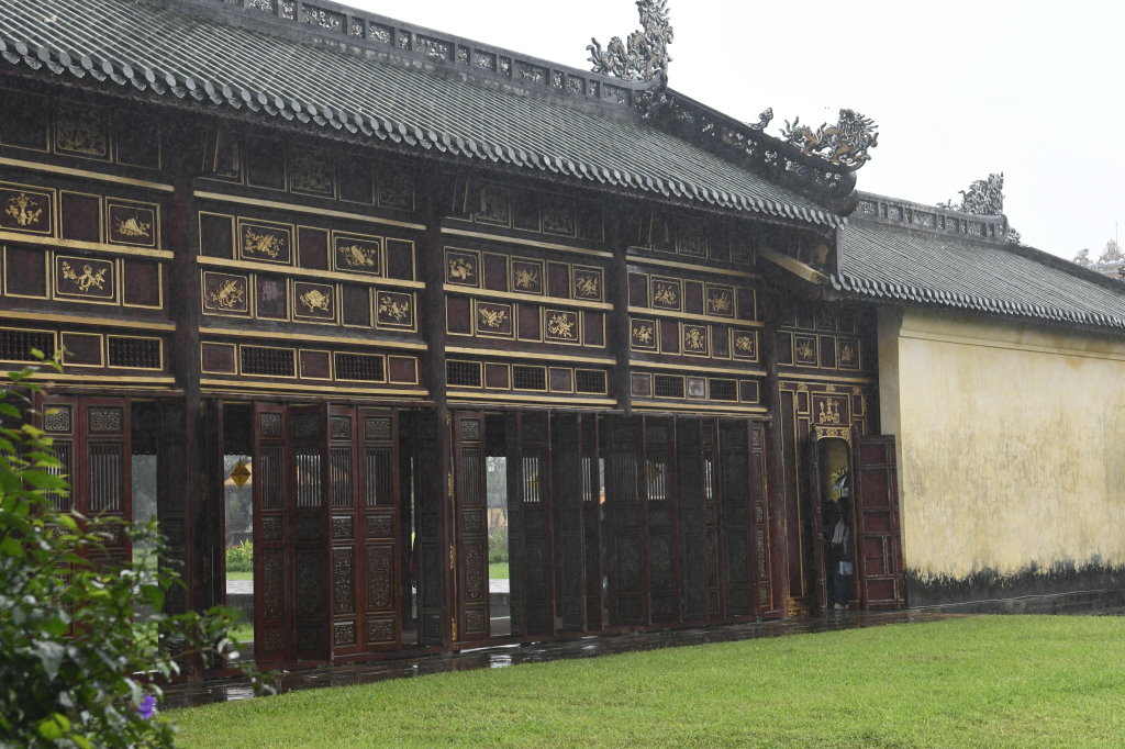 Punkt Zwölf betreten wir durchs Mittagstor die Zitadelle von Huế mit der Verbotenen Stadt und dem Kaiserpalast. Seit unserem letzten Besuch hat sich viel verändert. Die alte Kaiserstadt war im Februar 1968 während der Tet-Offensive von den Bomben der US-Streitkräfte bis auf drei Tempel fast vollständig ausradiert worden. Von den Zerstörungen ist heute weniger zu sehen als noch vor 12 Jahren.