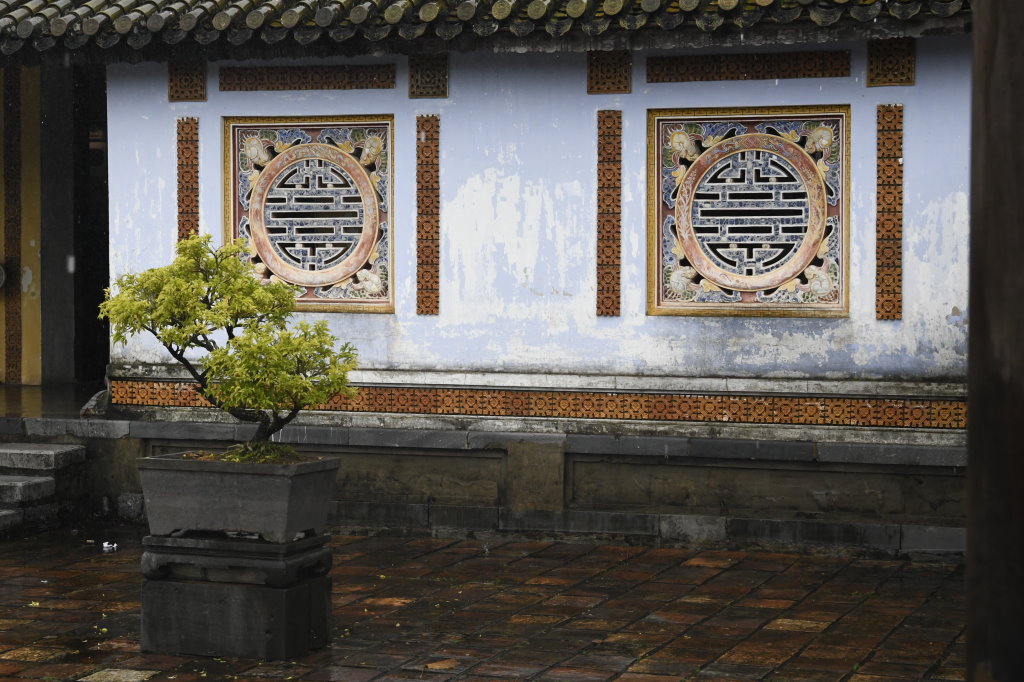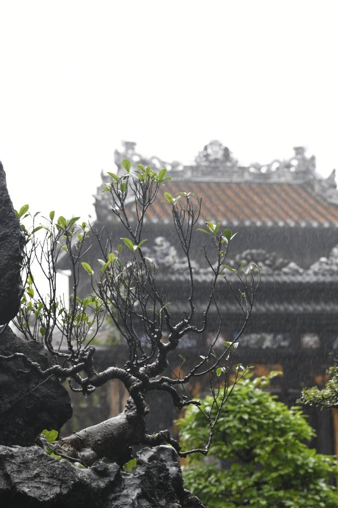 Auch der kaiserliche botanische Garten wurde nach alten Plänen und Fotografien originalgetreu wiederhergestellt. Neben einem Kalebassenbaum sind es die auf Felsbrocken drapierten Bonsai- Bäumchen, die in den Fokus meiner Kamera geraten.