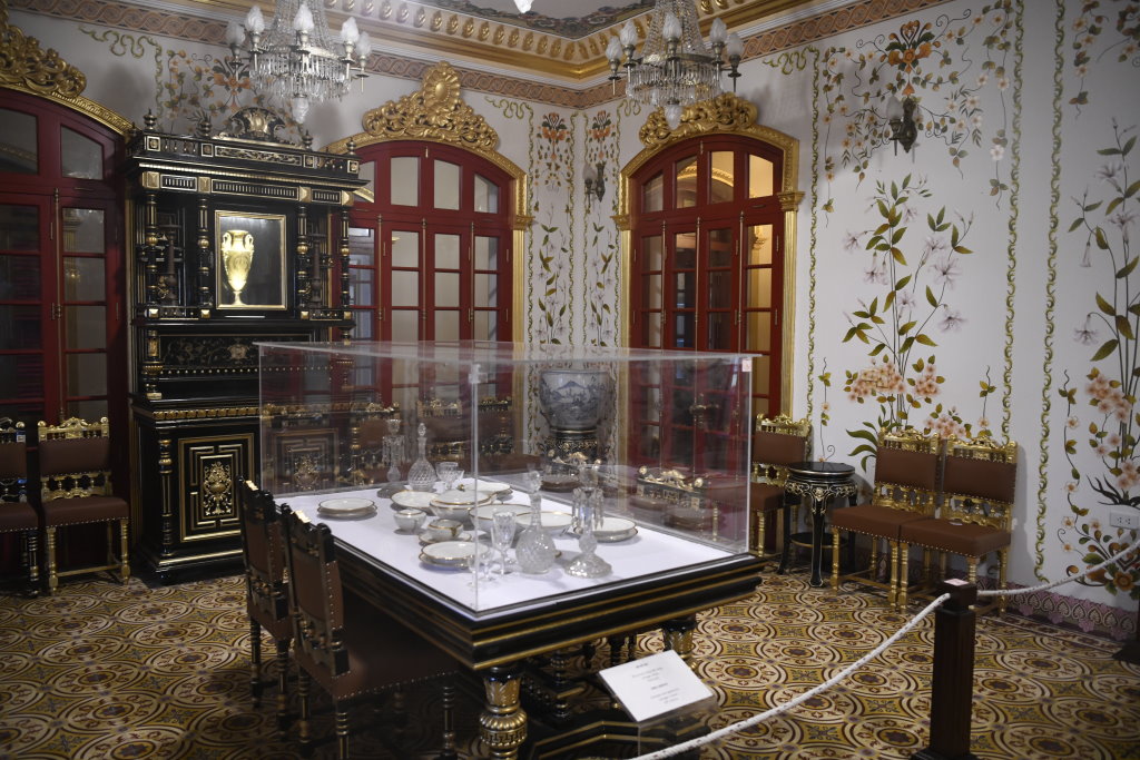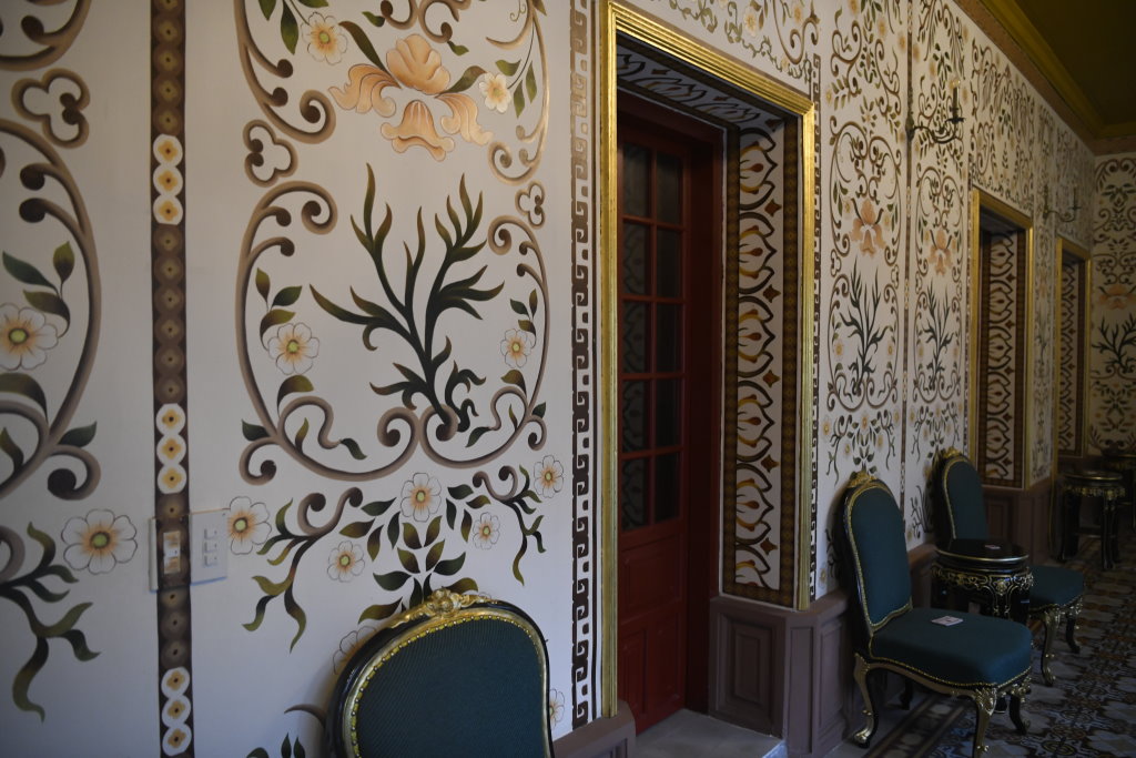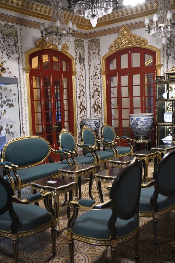 Ähnlich dort wurden auch hier die Innenräume mit den reich verzierten Wänden akribisch dem ursprünglichen Interieur nachgebaut, möbliert und mit Vasen und anderen Objekten ausstaffiert.