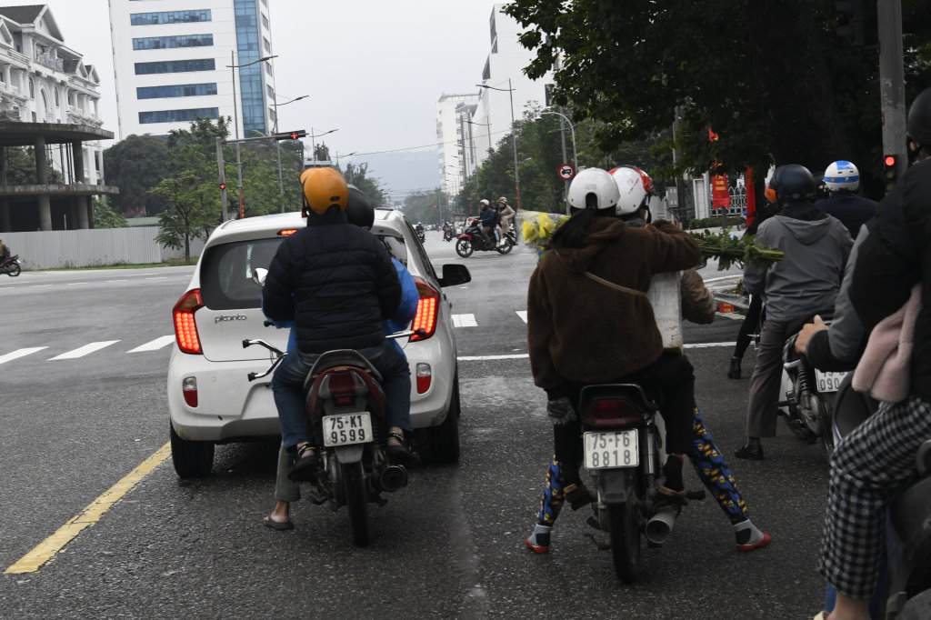 Als wir dann gegen halb zwölf Đà Nẵng erreichen, beginnt es wieder leicht zu regnen. Die sechsspurige Straße durch die Stadt entlang der Saphir-Küste ist wie leergefegt. Auf weitere Stopps verzichten wir und lassen auch die von den Reisebussen bevorzugt angesteuerten Marmorberge links liegen.