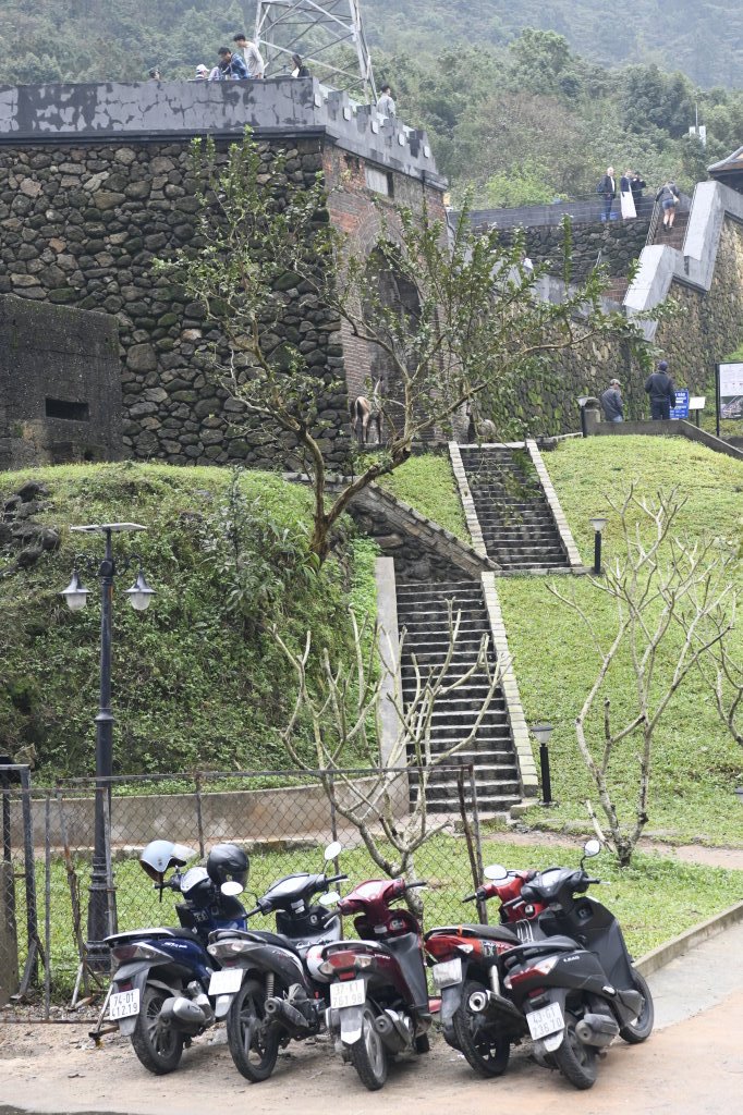 Weiter geht’s über die Serpentinenstraße rauf zur Befestigungsanlage „Hải Vân Quan“ am Scheitelpunkt des Wolkenpasses. Dort überwachte die Nordvietnamesische Armee während des Krieges die Aktivitäten in der Entmilitarisierten Zone (Demilitarized Zone = DMZ). Ein kleiner Rundweg führt am Fort und einigen Spähposten vorbei und ist heute wohl auch aufgrund des Wetters nur spärlich besucht.