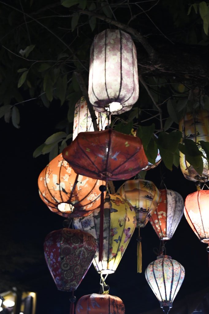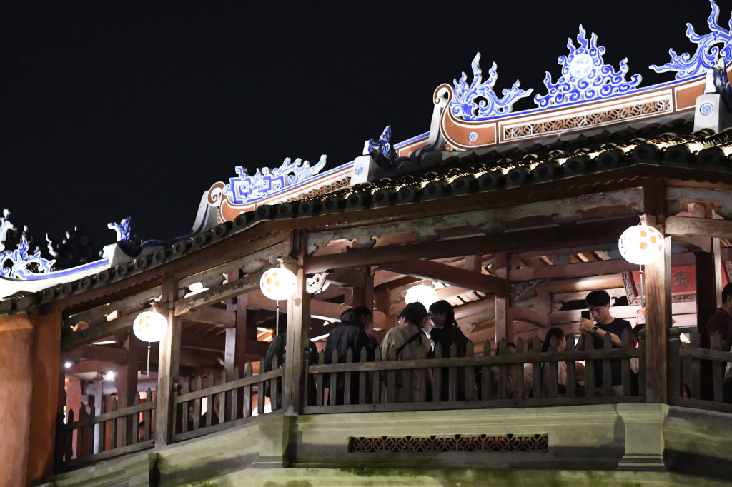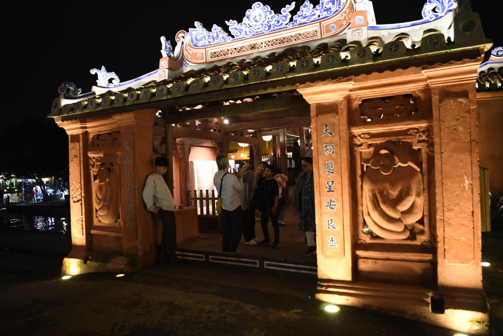 Am Abend lassen wir es uns nicht nehmen, noch einen kleinen Spaziergang zur japanischen Brücke am Fluss zu unternehmen. Wir sind nicht die einzigen, die den Weg durch die mit bunten Lampions geschmückten Straßen nehmen.