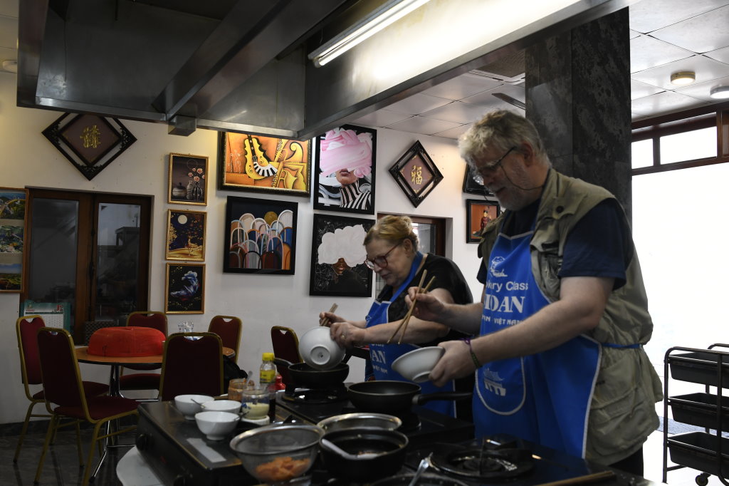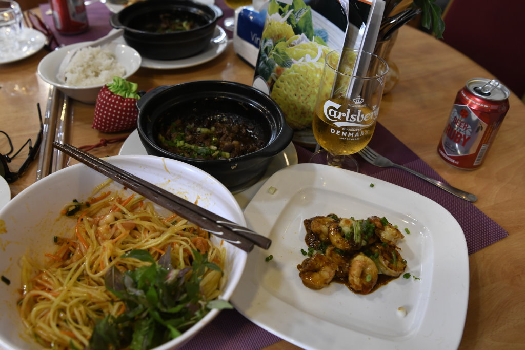 Zum Essen serviert uns Vi Na „deutsches Bier“. Das Bia Red Ruby ist ein Helles, das in Vietnam mit bayrischem Hopfen gebraut wird . Sie hat es immer für ihre deutschen Gäste vorrätig. Die nächsten Koch-Eleven nach uns sind zufällig zwei Berliner, die vor 14 Jahren ebenfalls schon einmal bei Vi Na etwas gelernt haben.