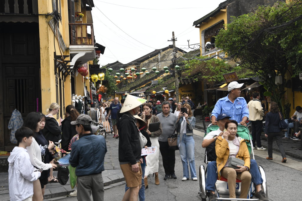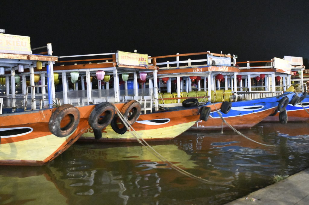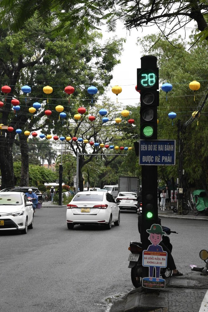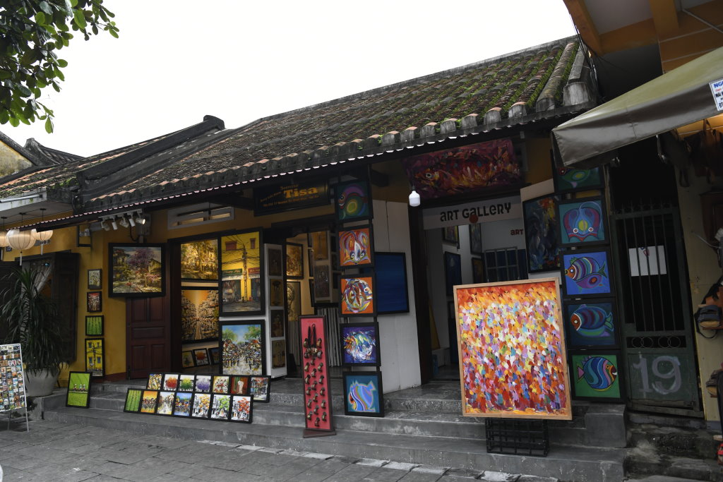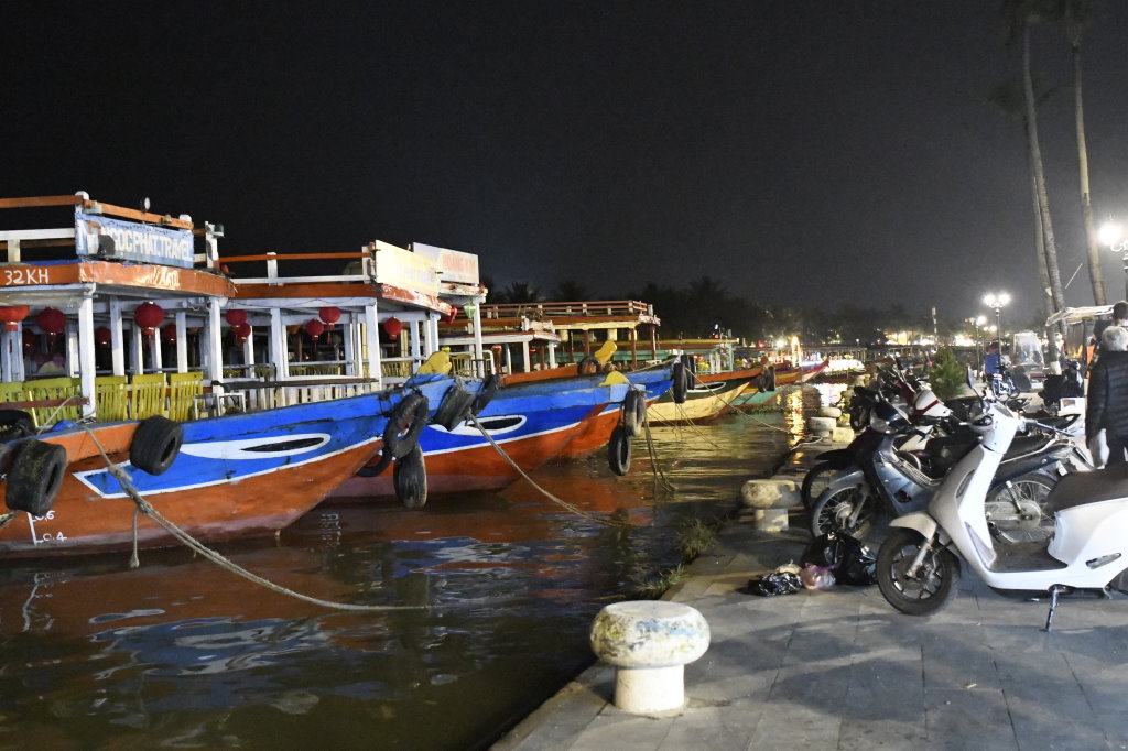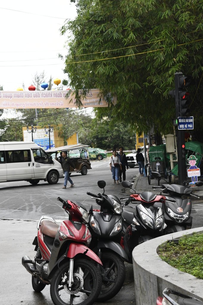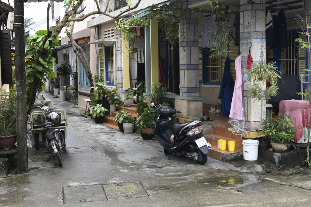 Vor dem Fenster sind keine Regenschirme und noch wenige Plastik-Cape-verhüllte Moped-Fahrer unterwegs. Wir riskieren einen Spaziergang kreuz und quer durch die Altstadt in Richtung Fluss. „Miep! Miep, miep! Platz da!“, rufen die Rikscha-Fahrer. Der neueste Trend sind Handy-Videos zur Dokumentation des Altstadt-Besuches, vorbei an Souvenir-Shops, Eisverkäufern, Galerien, Schuhmachern und Schneidern in der Fußgänger-Straße, die parallel zum Fluss verläuft. Nur an der japanischen Brücke muss man / frau aussteigen, ein paar Meter zu Fuß bewältigen, bevor es in der Alu-Karre wieder weiter geht…