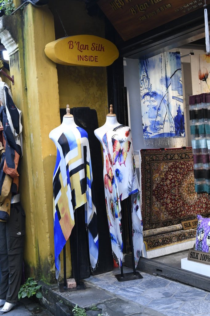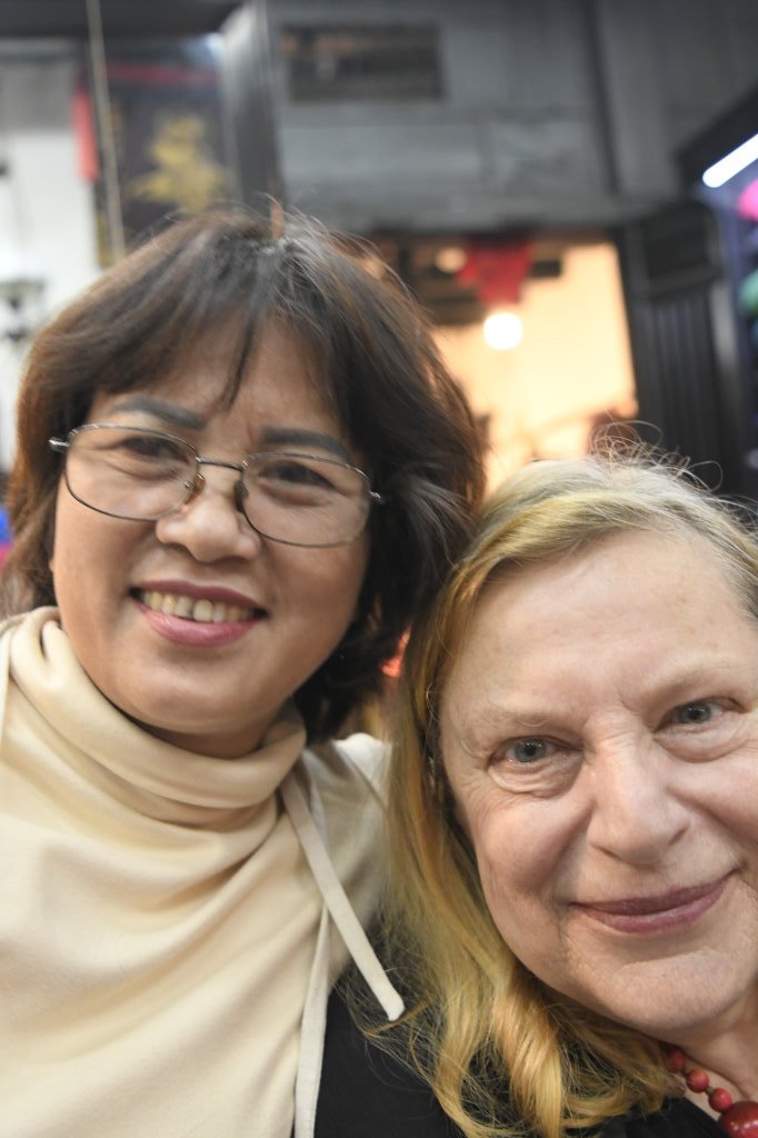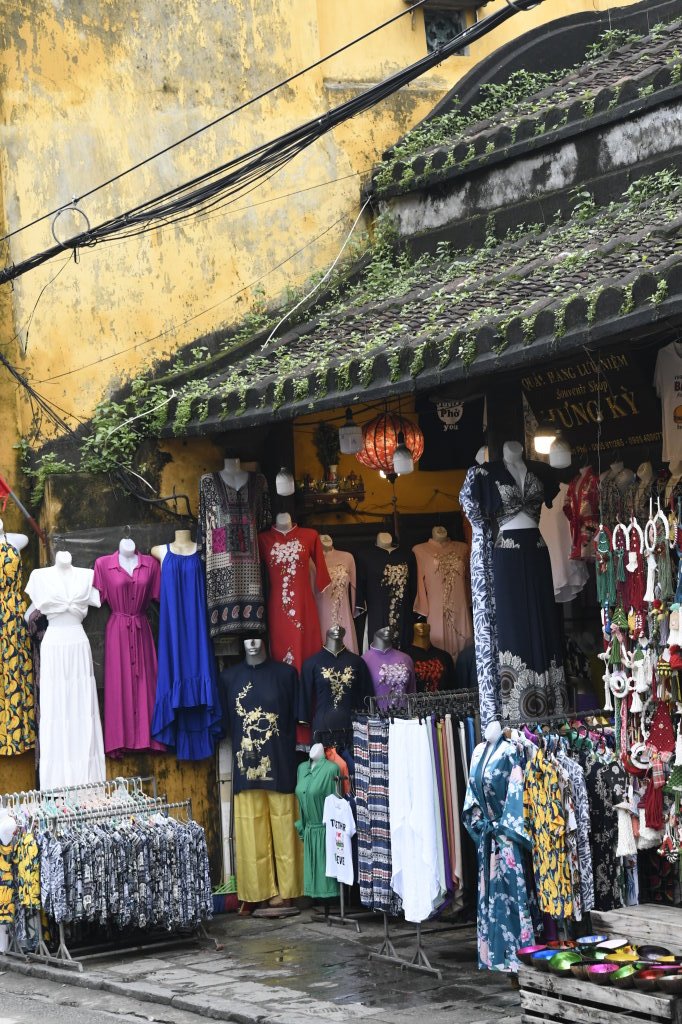Wir haben andere Ziele: Wenige hundert Meter hinter der Brücke hatten wir vor zwölf Jahren gute Erfahrungen bei einer Schneiderin gemacht. Die 53jährige Loc freut sich riesig, als wir ihr ein Bild von sich von damals zeigen und will gleich ein Neues zum Vergleich machen. Ganz ohne einen Einkauf geht es auch diesmal nicht. Nach längerem Hin-und Her, Maßnehmen und Auswahl der passenden Seide, ist der Auftrag zum Nähen von drei Seidenblusen und einem gefütterten Leinen-Blazer erteilt.