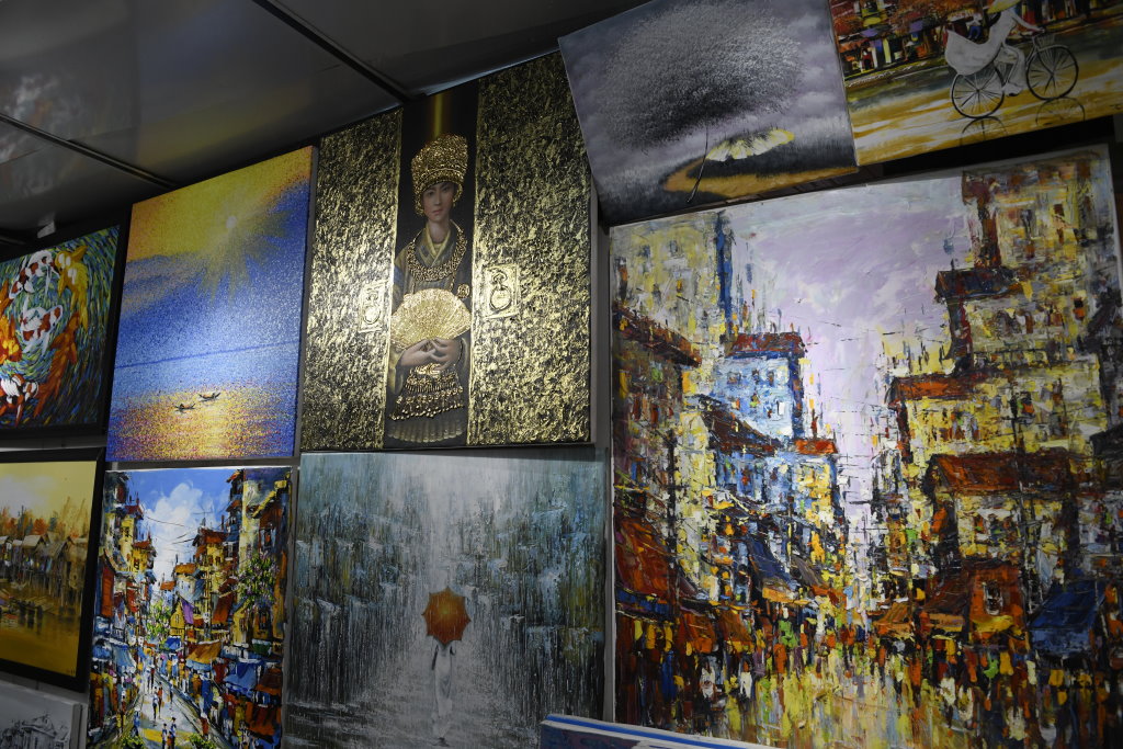 Spielerisch gehen auch die Künstler mit der klassischen europäischen Moderne um. Sie variieren gekonnt die Stile. Da wird schon mal ein glamouröses Frauenbild im Stil von Gustav Klimt mit Blattgold angereichert oder die Maltechniken von Impressionisten und Expressionisten adaptiert. Fragt man übrigens direkt nach den Künstlern, heißt es häufig, das sei der Bruder oder ein Familienmitglied des Galeristen.