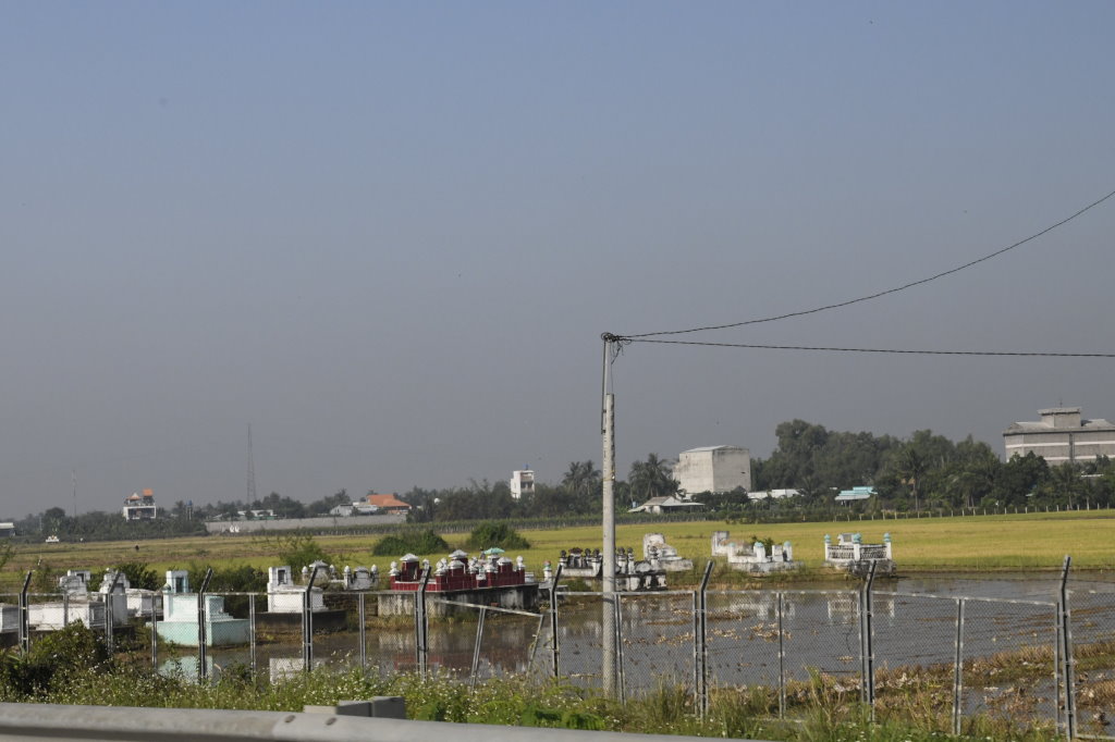 Wir sind ein wenig früher vor der vereinbarten Abholzeit in der Lobby und wollen uns noch schnell das übliche Frühstücks-Baguette holen. Überpünktlich wartet der Fahrer von Kims Travel schon vor dem Hotel. Khánh steht schon in der Lobby. Vor uns liegen rund 130 Kilometer bis Tra Vinh, dem ersten Etappenziel unserer dreitätigen Exkursion ins Delta. Für die Fahrt zur Vinh Trang Pagode auf halber Strecke braucht es im morgendlichen Verkehr dann aber doch noch rund anderthalb Stunden.
